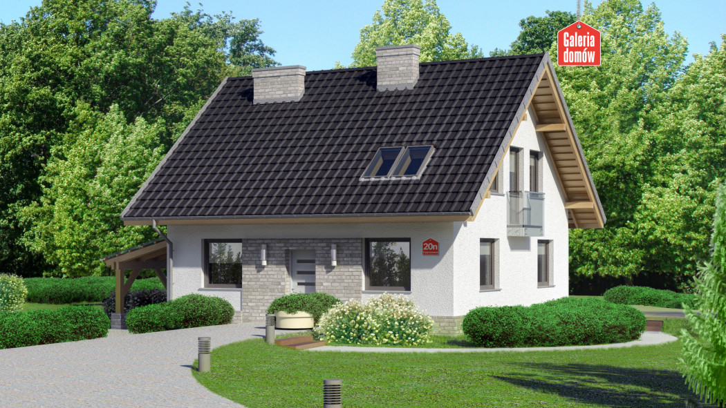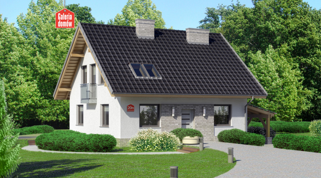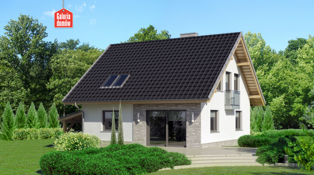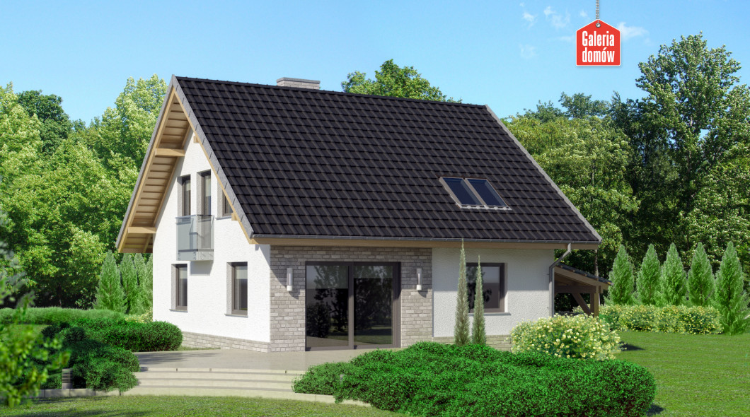 Tworząc kolejny projekt przyświecał nam prosty pomysł: dom o nowoczesnym wyglądzie, ale nawiązujący do sprawdzonych rozwiązań, który jednocześnie będzie ekonomiczny w eksploatacji i tani w budowie. Wychodząc z takich założeń stało się jasne, że dom musi posiadać zwartą bryłę. Prosty dwuspadowy dach, połaciowe okna zamiast lukarn i przejrzysty układ funkcjonalny to zalety tej kompozycji. Elementy nowoczesne to faktura i kolor elewacji, aluminiowa stolarka w odcieniach metalicznych, ceglany detal na podmurówce i czarna dachówka. W środku znajduje się, oprócz tradycyjnych pomieszczeń niezbędnych do codziennego funkcjonowania, aż 5 odpowiednich rozmiarów pokoi. Zamiast garażu pomyśleliśmy o wiacie, która w prosty sposób zabezpieczy auto przed niekorzystnymi warunkami atmosferycznymi.