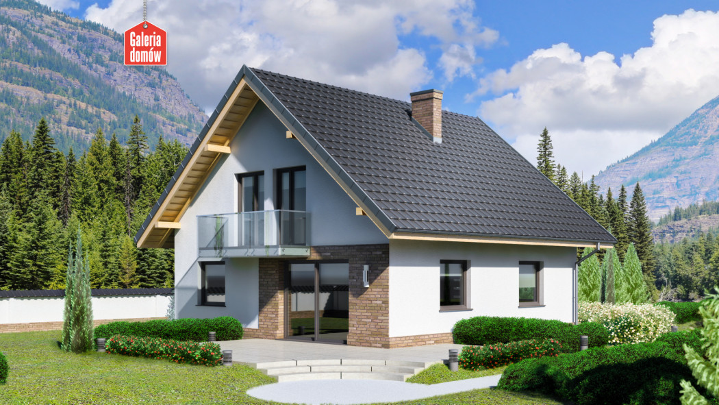Nowoczesny dom jednorodzinny, w modnej stylistyce, z poddaszem użytkowym, który w pełni zaspokoi potrzeby 4-5 osobowej rodziny. Parter funkcjonalnie rozplanowany, posiada dodatkową sypialnię, otwartą kuchnię i pokój dzienny. Uzupełnienie dla tej przestrzeni stanowi łazienka, pomieszczenie gospodarcze oraz spora kotłownia. Na poddaszu trzy wygodne sypialnie z dostępem do balkonów i duży pokój kąpielowy.