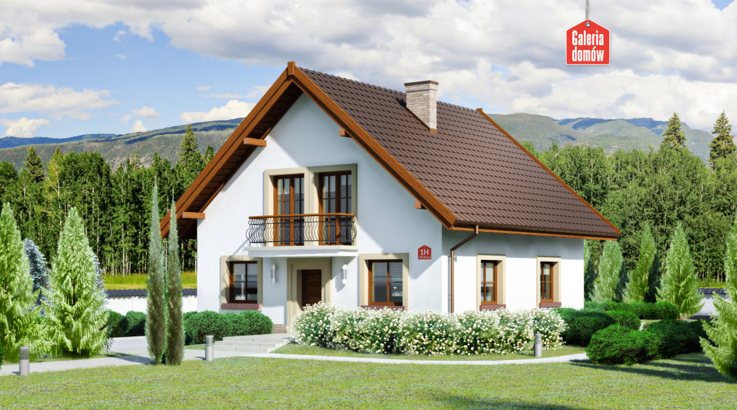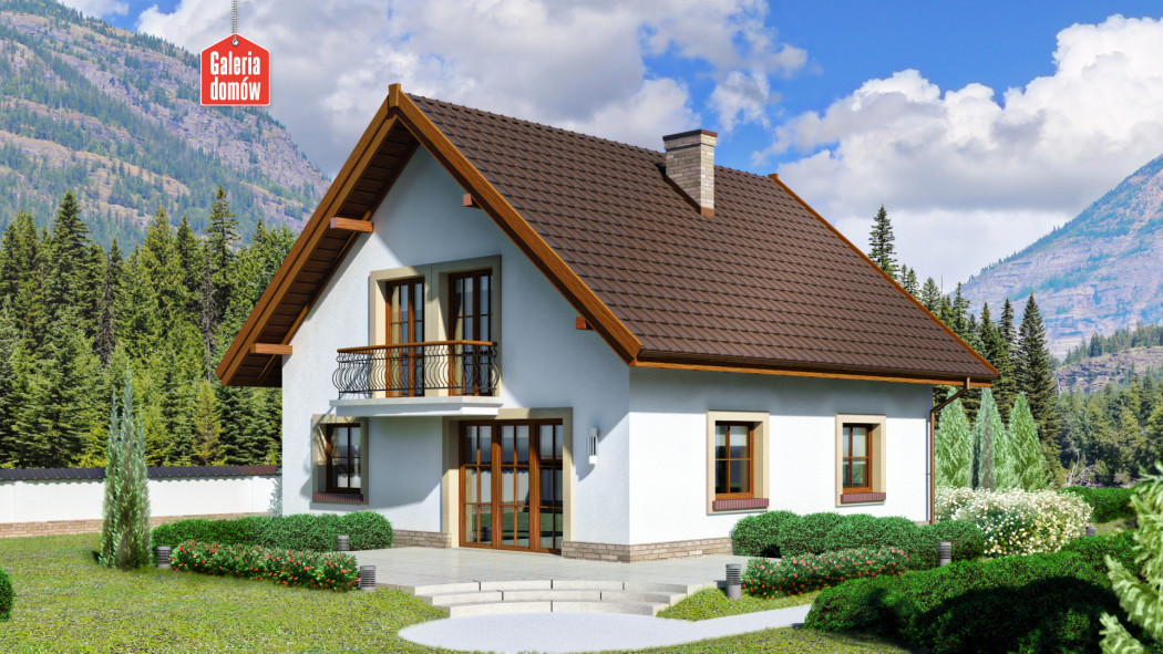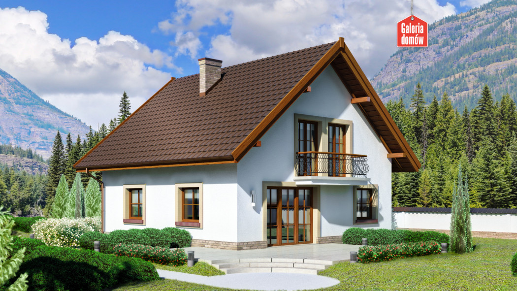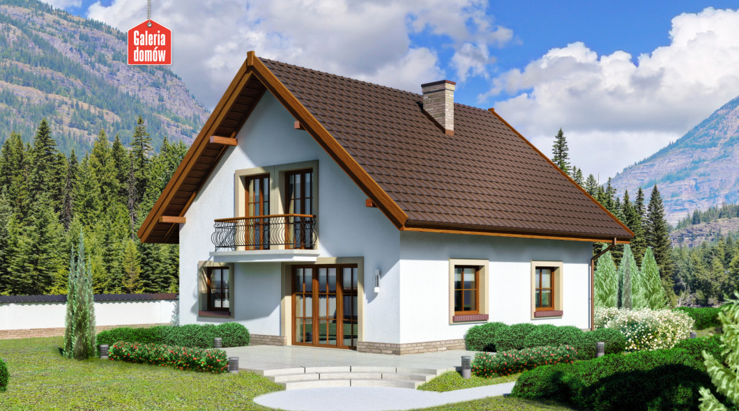 Klasyczny dom jednorodzinny, w tradycyjnej stylistyce, z poddaszem użytkowym, który w pełni zaspokoi potrzeby 4-5 osobowej rodziny. Parter funkcjonalnie rozplanowany, posiada dodatkową sypialnię, otwartą kuchnię i pokój dzienny. Uzupełnieniem tej przestrzeni jest łazienka, pomieszczenie gospodarcze oraz spora kotłownia. Na poddaszu trzy wygodne sypialnie z dostępem do balkonów i duży pokój kąpielowy. Całość poddasza jest bardziej przystępna, gdyż do 120 cm została podniesiona ścianka kolankowa. Ta często wykonywana zmiana adaptacyjna jest w tym projekcie w standardzie. Projekt można określić jako wysoce ekonomiczny ze względu na prostą konstrukcję, zwartą bryłę oraz nieskomplikowany, dwuspadowy dach.