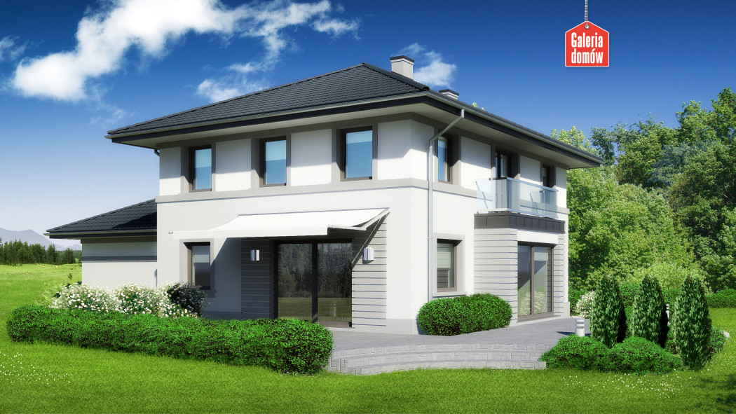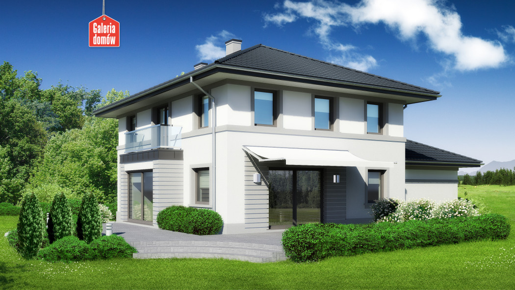 Dom przy Diamentowej to nowoczesny i funkcjonalny dom piętrowy o ciekawej formie architektonicznej i precyzyjnie ukształtowanej przestrzeni wewnętrznej. Bryła na bazie sześcianu przykryta jest kopertowym dachem o niskim kącie nachylenia. W projekcie zastosowano najnowsze rozwiązania podnoszące walory energetyczne budynku – wentylację mechaniczną z rekuperacją oraz instalacje solarną. Wnętrze wyraźnie podzielono na strefy – część wspólna i zaplecze gospodarcze - na parterze, a prywatna, z sypialniami, komfortowa łazienką i garderobą - na piętrze. Dużym atutem Diamentowej jest dwustanowiskowy garaż. Projekt spełnia aktualne normy energetyczne i zawiera wszystkie instalacje; wod-kan, elektryczne, co i gazową.