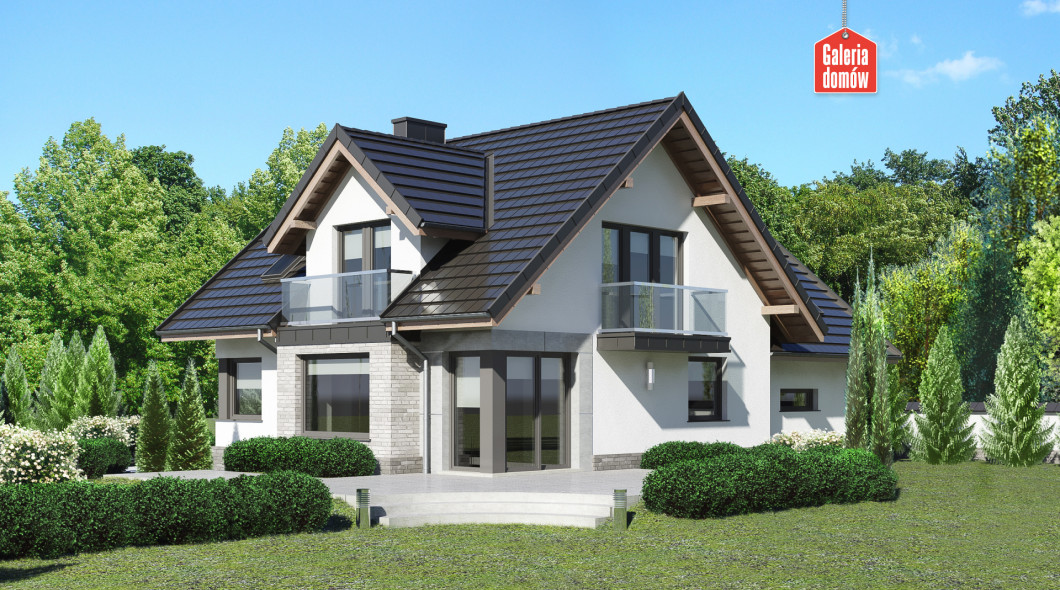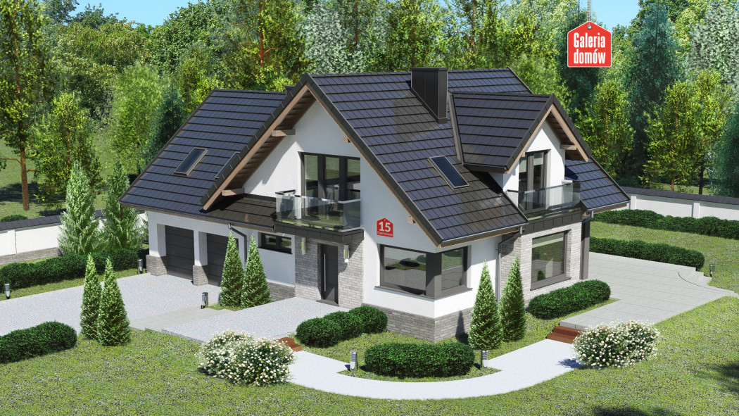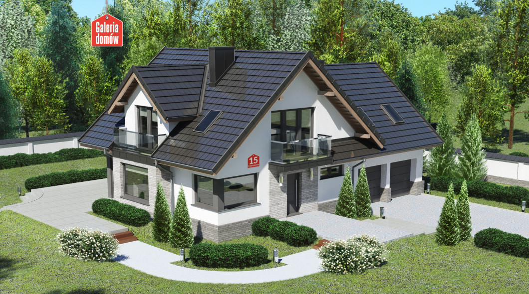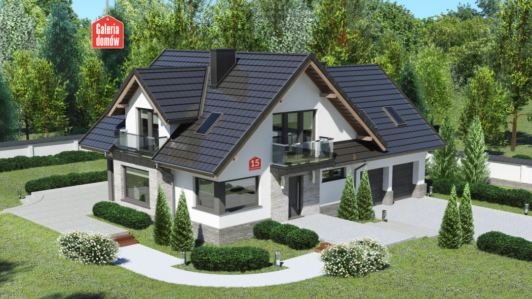 Dom przy Cyprysowej 15 K5 to gotowy projekt domu jednorodzinnego z użytkowym poddaszem, podwójnym garażem i dachem dwuspadowym. Na słoneczny parter składa się część dzienna - przestronny pokój dzienny połączony z jadalnią, ulokowaną w przeszklonym wykuszu oraz otwarta kuchnia. Pozostałe elementy tej ergonomicznej kompozycji to dodatkowy pokój, łazienka z oknem, wygodna pralnia i kotłownia umieszczona za garażem.