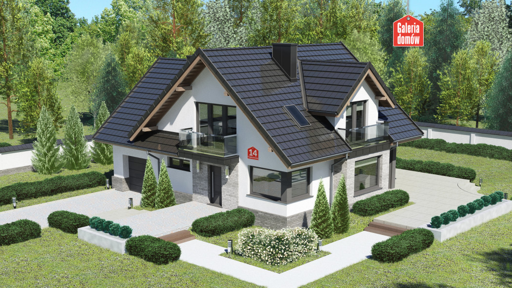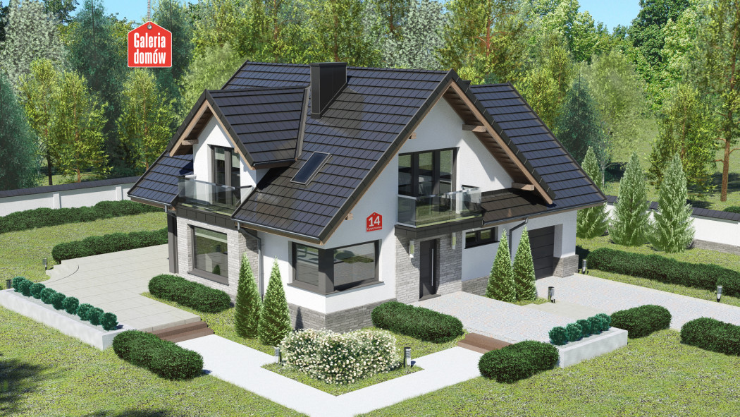 Dom przy Cyprysowej 14 K to gotowy projekt domu o powierzchni 145,72 m², z użytkowym poddaszem, jednostanowiskowym garażem i dachem, którego kalenica główna ustawiona została prostopadle do drogi. Część dzienną tworzą duży, przestronny pokój połączony z jadalnią ulokowaną w przeszklonym wykuszu. Całość przestrzeni uzupełnia otwarta kuchnia. Pozostałe składniki parteru to dodatkowy pokój, łazienka, pralnia i spora kotłownia umieszczona za garażem.
