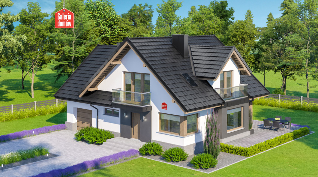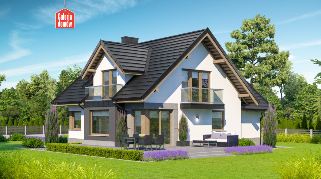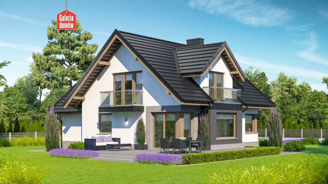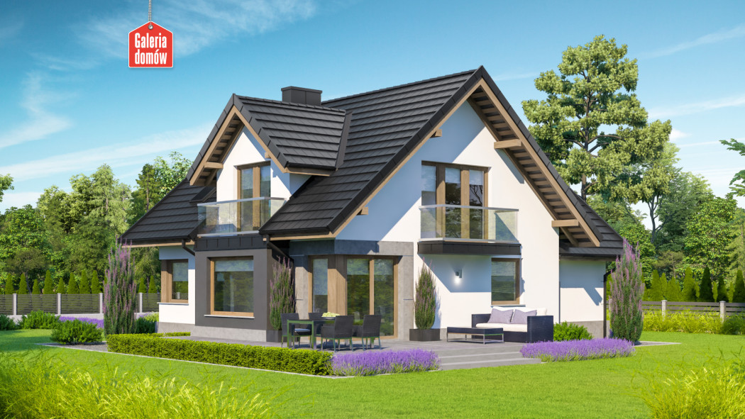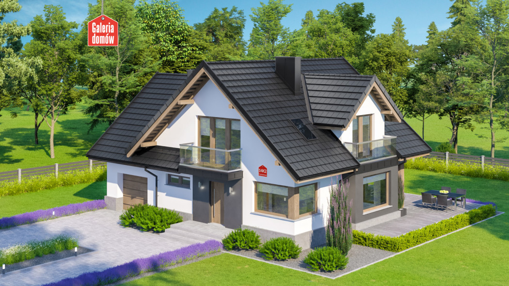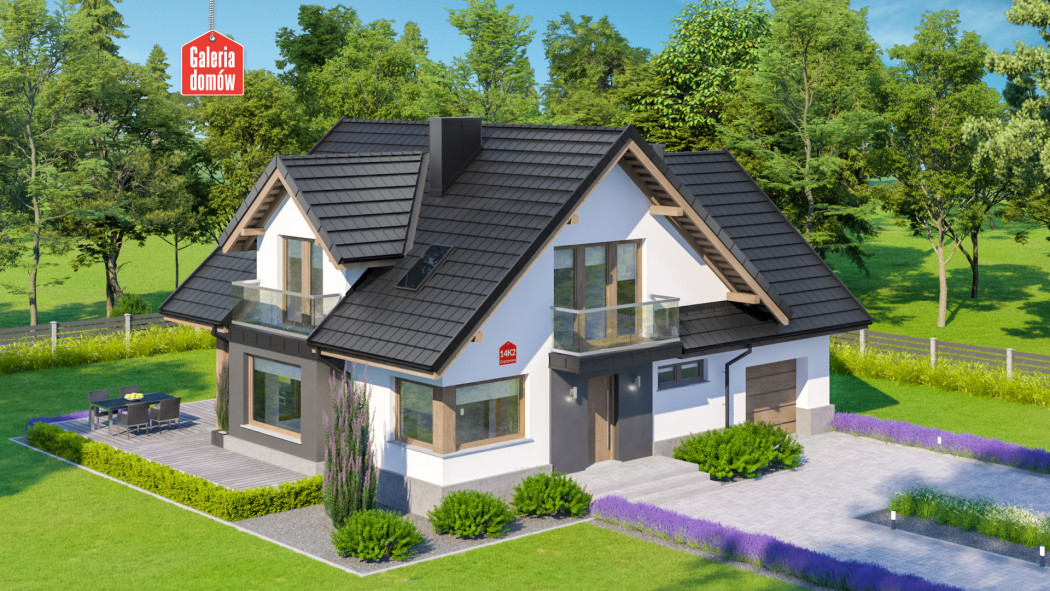 Dom przy Cyprysowej 14 K2 to gotowy projekt domu o powierzchni 125,87 m², z użytkowym poddaszem, jednostanowiskowym garażem i dachem, którego kalenica główna ustawiona została prostopadle do drogi. Część dzienną tworzą duży, przestronny salon połączony z jadalnią, ulokowaną w przeszklonym wykuszu. Całość słonecznej przestrzeni uzupełnia otwarta kuchnia. Pozostałe składniki parteru to dodatkowy pokój, łazienka, pralnia i spora kotłownia umieszczona za garażem.