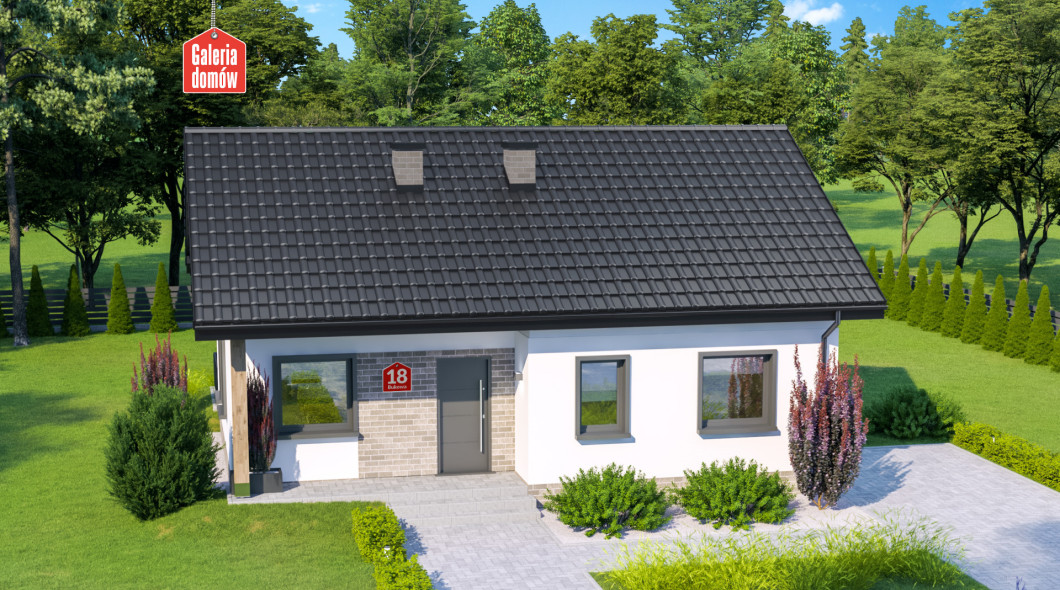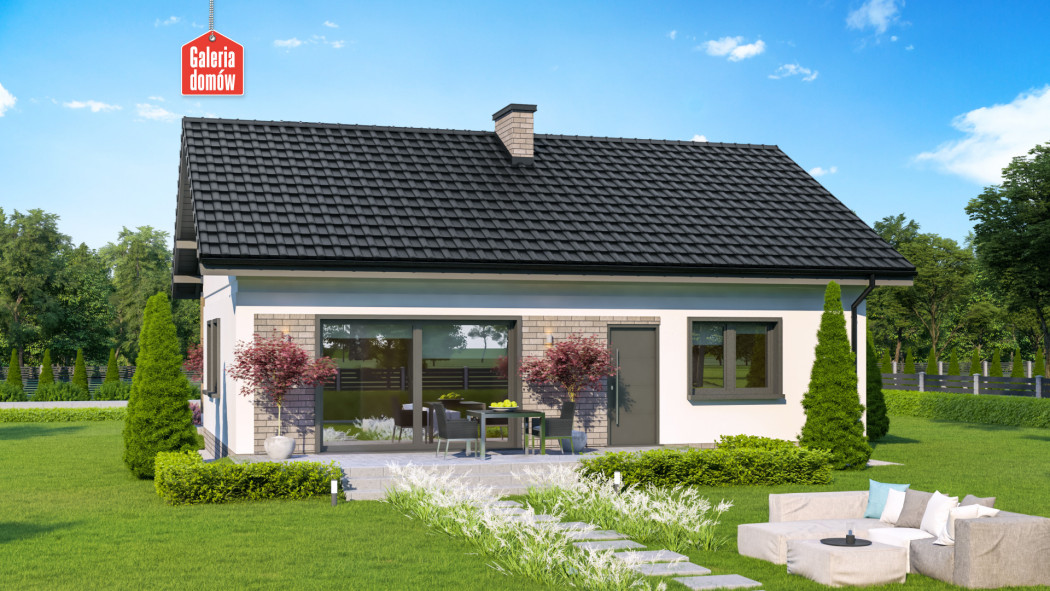 Energooszczędny dom parterowy o powierzchni użytkowej 76,02 m², wyposażony w system instalacji solarnej i wentylację mechaniczną z odzyskiem ciepła. Minimalizm w ilości ścian nośnych sprawia, iż dom jest tani i szybki w budowie. Otwarta strefa dzienna składa się ze słonecznego pokoju o powierzchni 21,14 m², z kominkiem i otwartej kuchni (9,12m²) połączonej z jadalnią. Zielona sfera ogrodu dostępna jest w całej okazałości dzięki drzwiom przesuwnym. Część wypoczynkowa domu to dwie sypialnie i kompletnie wyposażona łazienka. Kotłownia została zaprojektowana tak, by pomieściła pralnię i była wielofunkcyjnym miejscem, w którym można magazynować ogrodowe meble (drzwi na zewnątrz). Solidny strop pozwala na zagospodarowanie dużego strychu według indywidualnego uznania. Dom przy Bukowej 15 to interesujące rozwiązanie, które zainteresuje inwestorów chcących tanio i szybko wybudować elegancki, parterowy dom. Doskonała propozycja dla 4-5 osobowej rodziny.