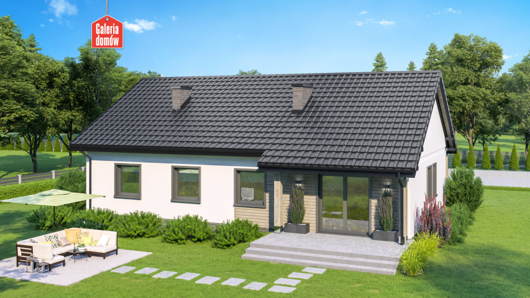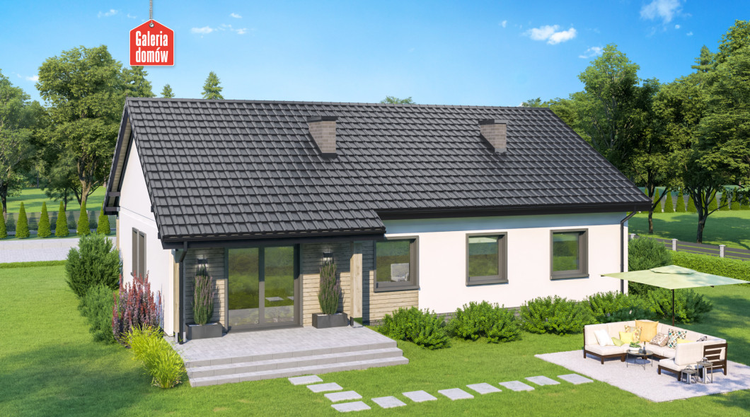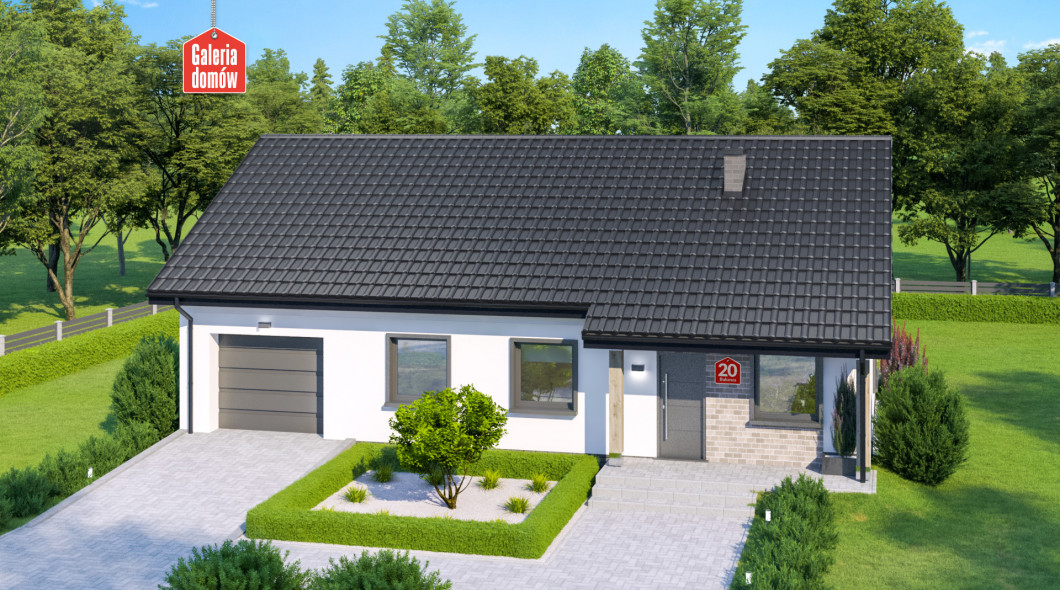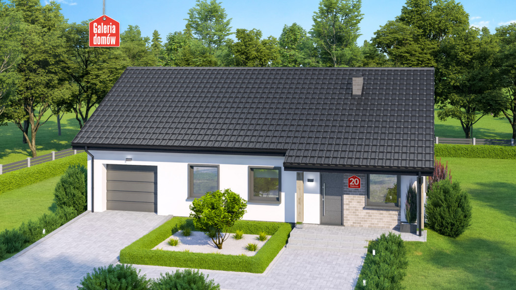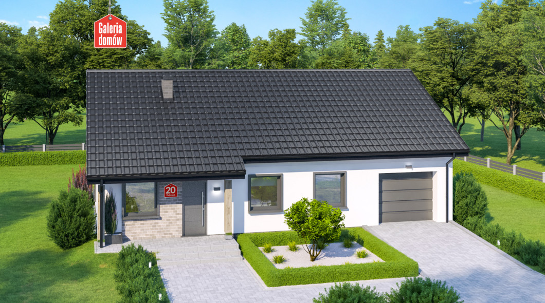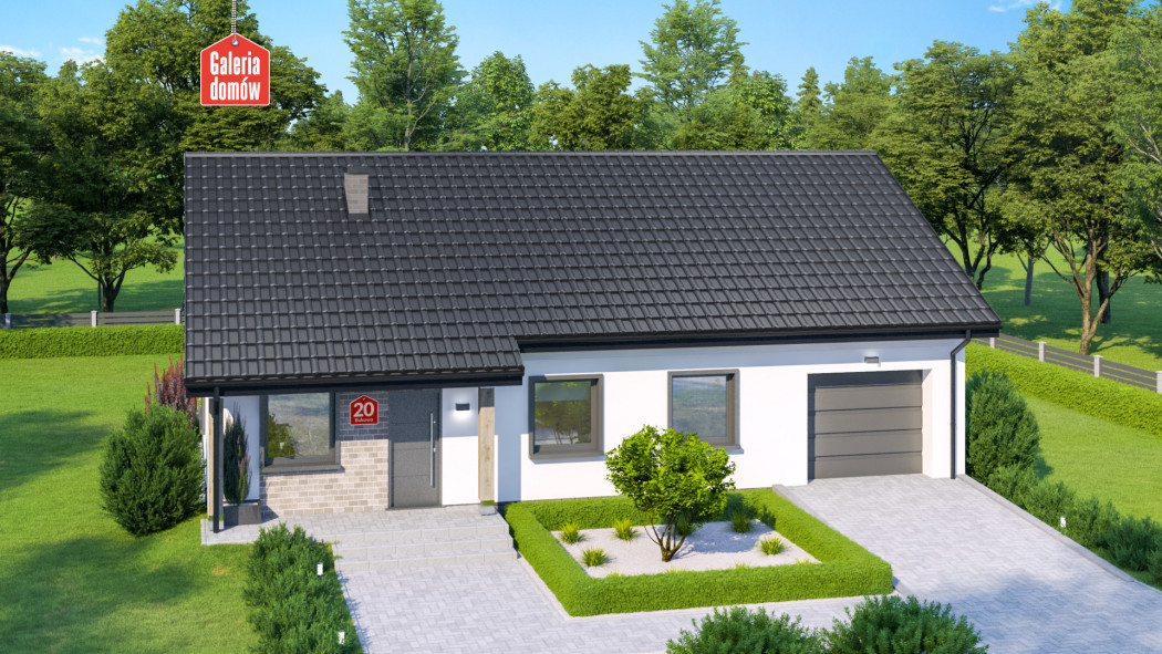 Gotowy projekt domu jednorodzinnego Dom przy Bukowej 19, to budynek parterowy, z jednostanowiskowym garażem. Zaprojektowany w technologii tradycyjnej, murowanej, z prostym dwuspadowym dachem. Powierzchnia użytkowa wynosi 90 m².