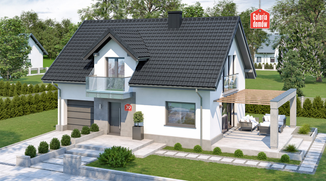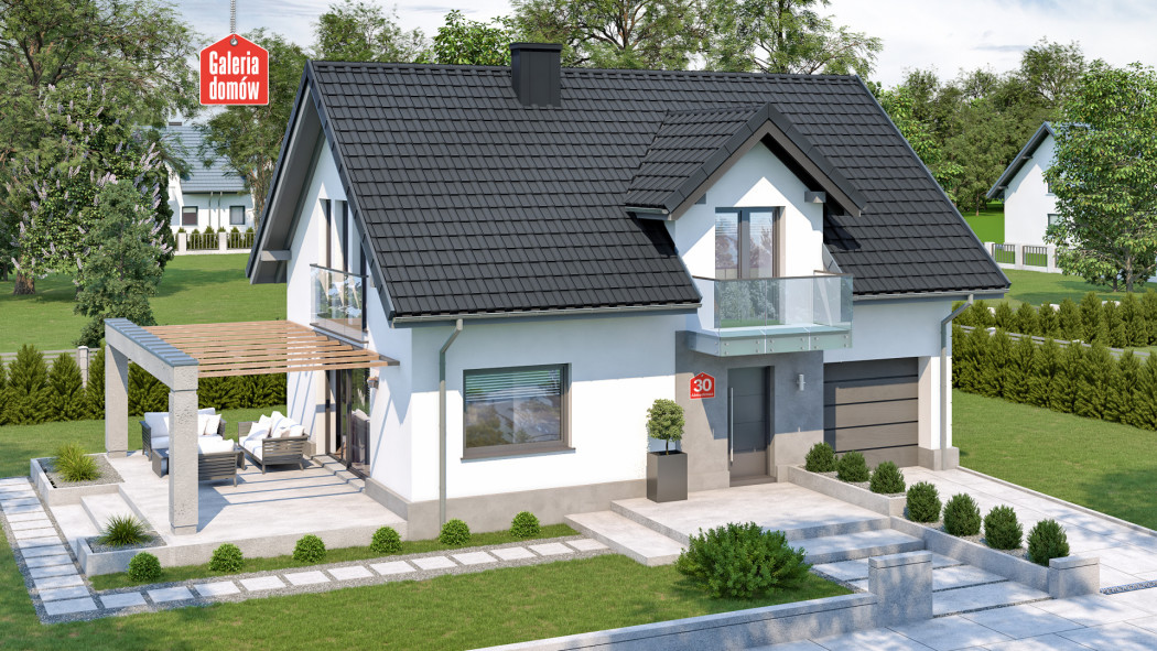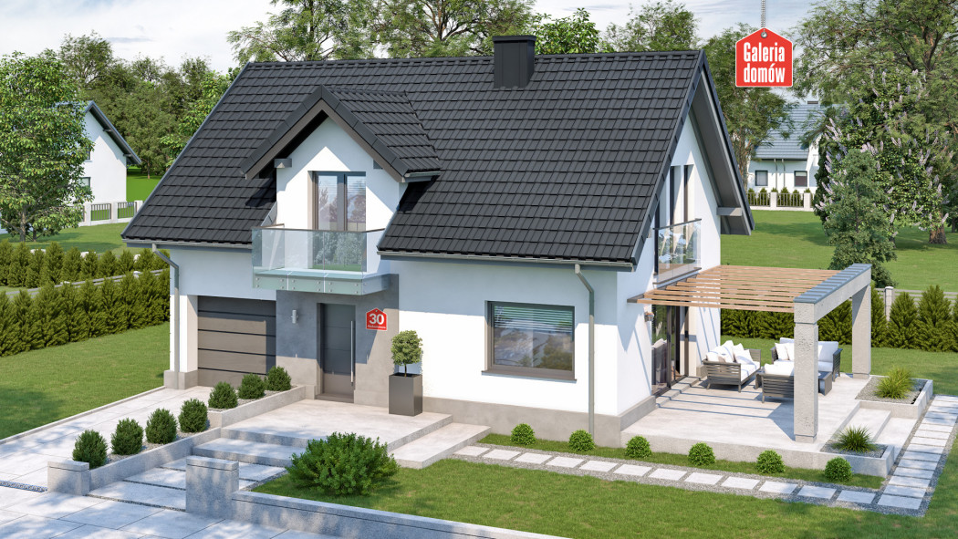 Dom przy Alabastrowej 30 to gotowy projekt energooszczędnego domu z jednostanowiskowym garażem w bryle budynku. Nowoczesna kolorystyka, powiększone przeszklenia i dodatki odpowiadające najmodniejszym, współczesnym trendom sprawiają, iż 21 N to propozycja dla tych, którzy chcą podążać z duchem czasu.