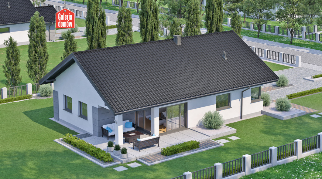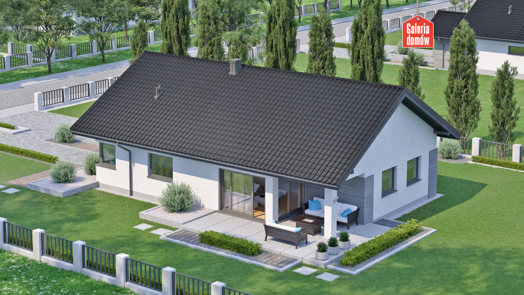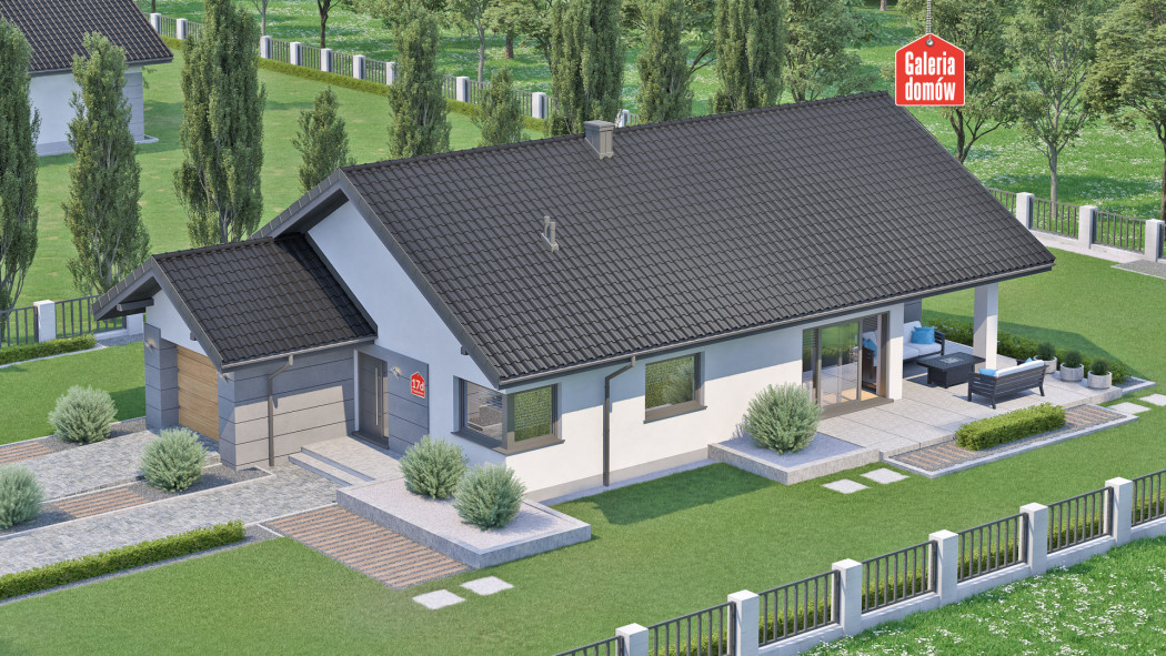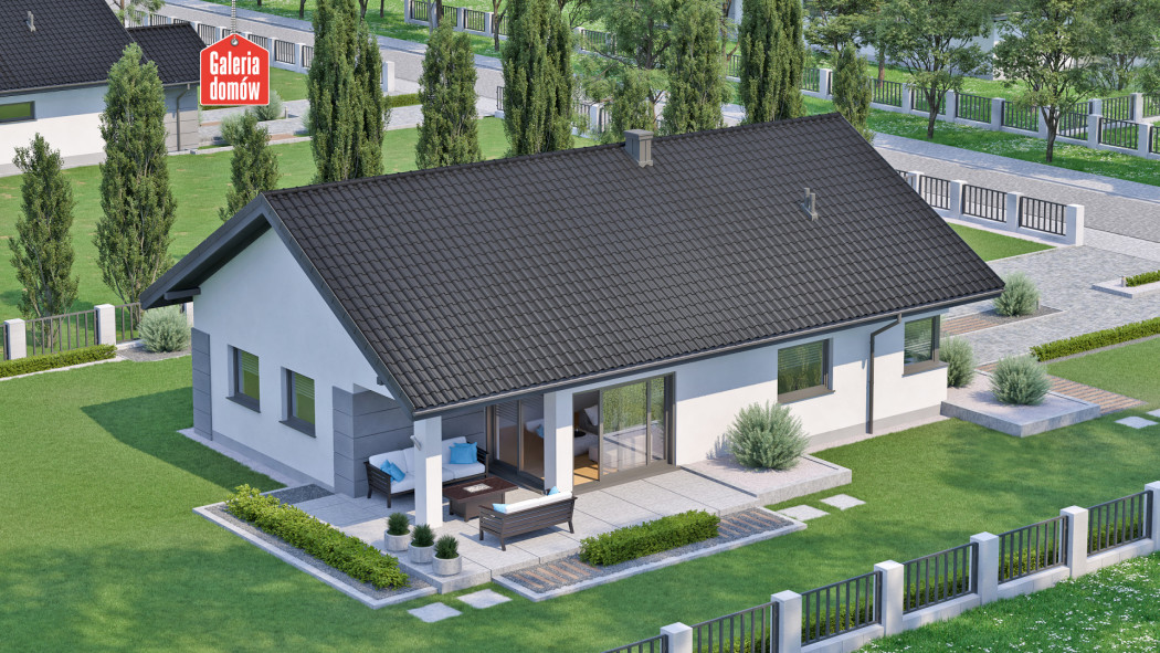Dom przy Pastelowej 17 D Bis to gotowy projekt domu parterowego z pojedynczym garażem i dachem dwuspadowym. Wyposażony w system instalacji solarnej i wentylację mechaniczną z rekuperacją. Parter składa się z otwartej strefy dziennej ze słonecznym pokojem i kominkiem. Ergonomicznej kuchni i duża jadalnia są otwarte na salon. Część dzienna łączy się z zieloną sferą ogrodu przez szerokie drzwi przesuwne. Strefa wypoczynkowa domu to trzy sypialnie i dwie łazienki. Układ funkcjonalny uzupełnia pojedynczy garaż i kotłownia. Propozycja na wąskie działki. Dom zaprojektowano w technologii tradycyjnej, murowanej, z drewnianą więźbą i ogrzewaniem gazowym. Posiada charakterystykę energetyczną wg WT 2021.