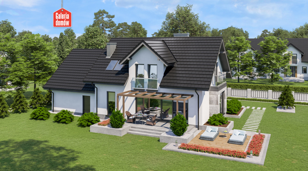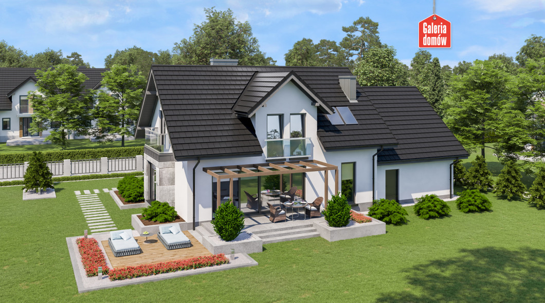Na poddaszu zaprojektowano trzy sypialnie, łazienkę i garderobę. Każdy pokój ma wyjście na balkon. Dodatkową przestrzeń do indywidualnego zagospodarowania stanowi duży strych. Budynek projektowany w technologii tradycyjnej, murowanej, z ogrzewaniem gazowym. Dodatkowo opcjonalnie można zastosować wentylację mechaniczną z rekuperacją oraz instalację solarną. Dom przy Modrzewiowej 17 to projekt dla dużej rodziny, która lubi przestrzeń, komfort i doceni nowoczesną stylistykę architektoniczną.