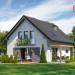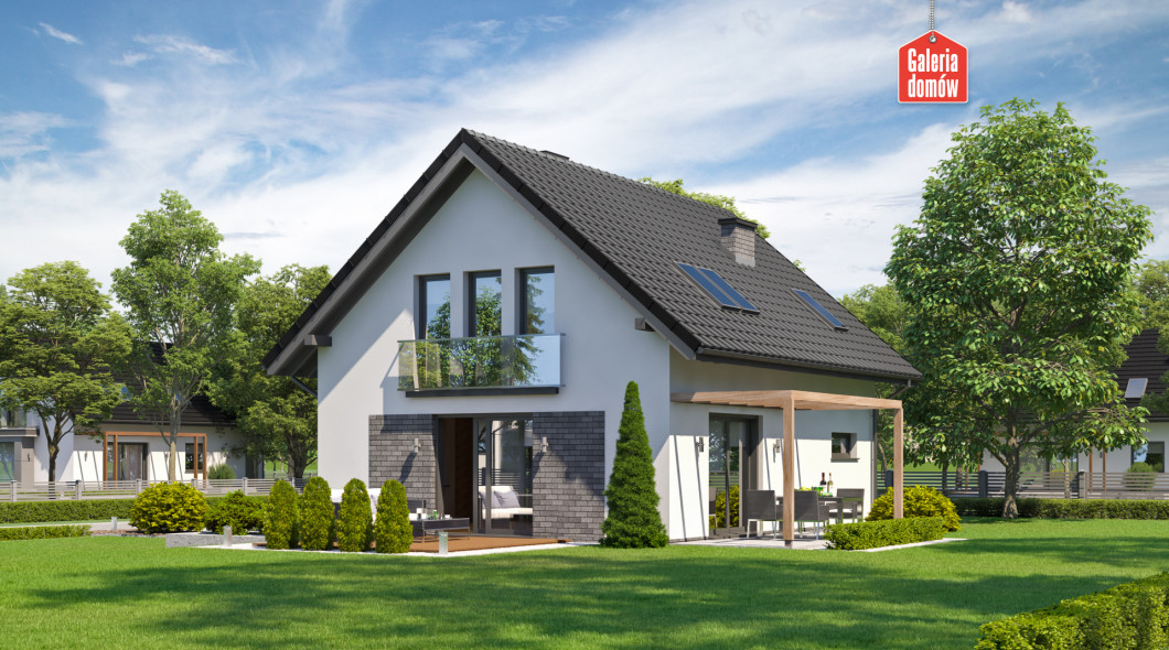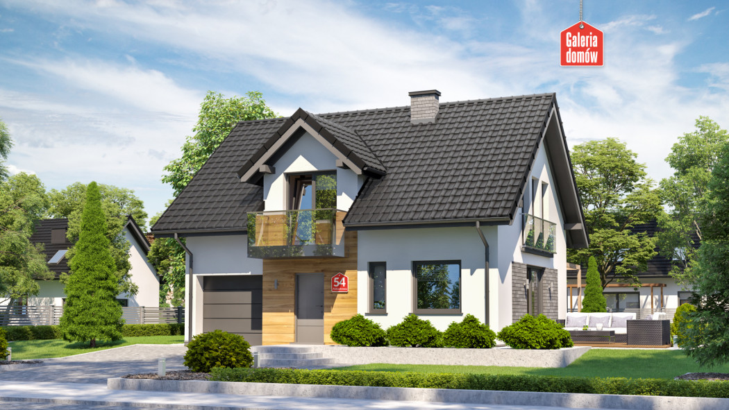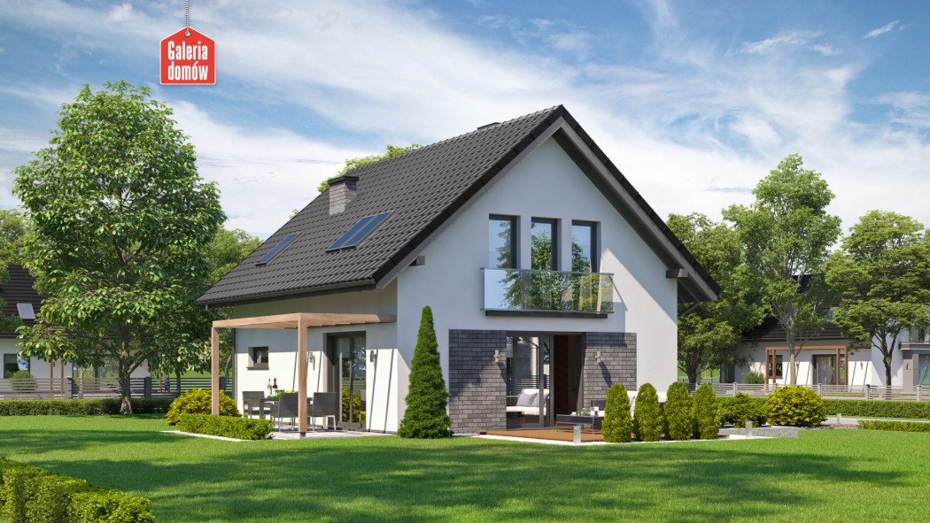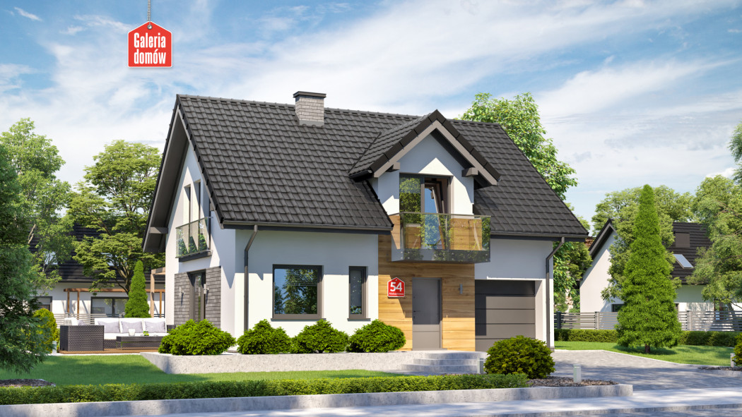 Alabastrowa 54 to nowoczesny dom o prostej bryle i ergonomicznym układzie funkcjonalnym. Kolorystyka elewacji, stylowe detale i wysoki standard wykończeń nadają mu wyrazisty charakter. Ciekawy zabieg architektoniczny stanowi ażurowa pergola rozciągnięta nad tarasem. Taki zabieg poprawia wygodę użytkowania tarasu i umożliwia jego częściowe zadaszenie, lub zacienienie. Duże przeszklenia przesuwnych drzwi tarasowych naturalnie rozświetlają wnętrze pokoju dziennego i sypialni. Estetyczną wartość budynku wzbogaca szklany balkonik od strony ogrodu oraz oryginalne oświetlenia fasady. Wnętrze domu jest przejrzyste i doskonale skomunikowane. Parter stanowi otwarty na kuchnię salon i łazienka. W bryle domu ulokowano garaż z jednym miejscem postojowym. Ciszę i spokój zapewnia poddasze z trzema przytulnymi sypialniami. Uzupełnieniem pokoi są garderoba i duża łazienka z osobną pralnią i suszarnią. To idealne rozwiązanie dla osób ceniących modny design oraz solidne, sprawdzone rozwiązania w nowoczesnej odsłonie.