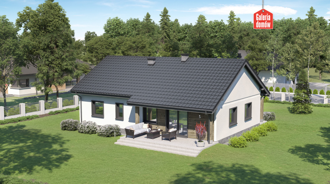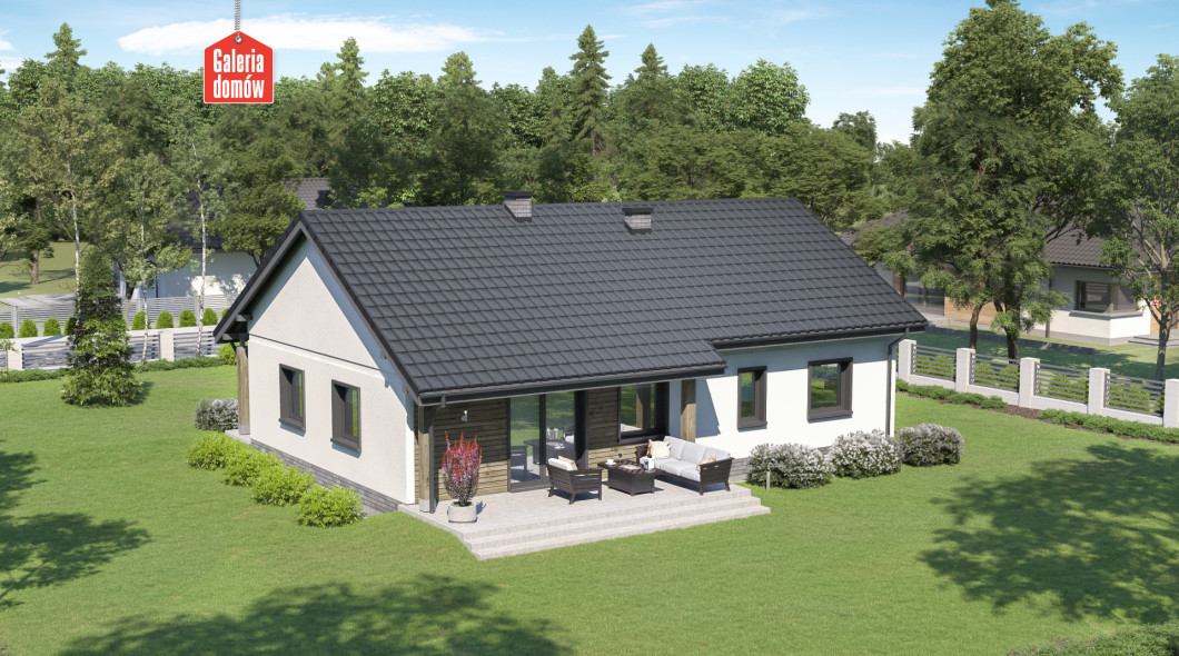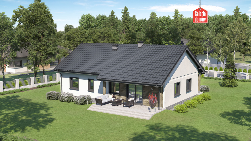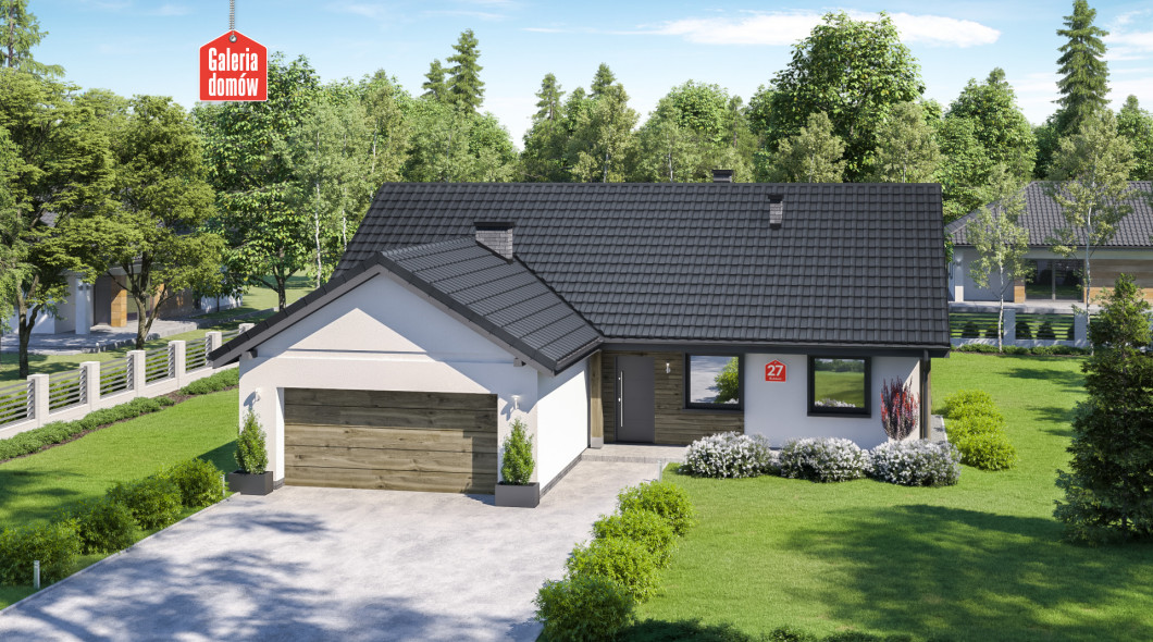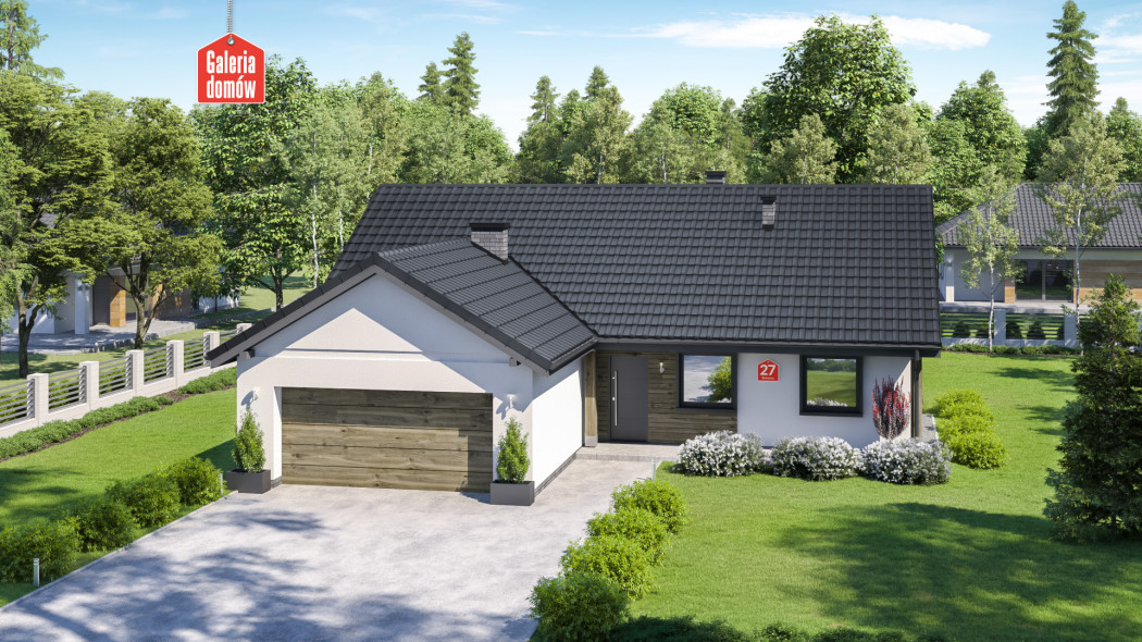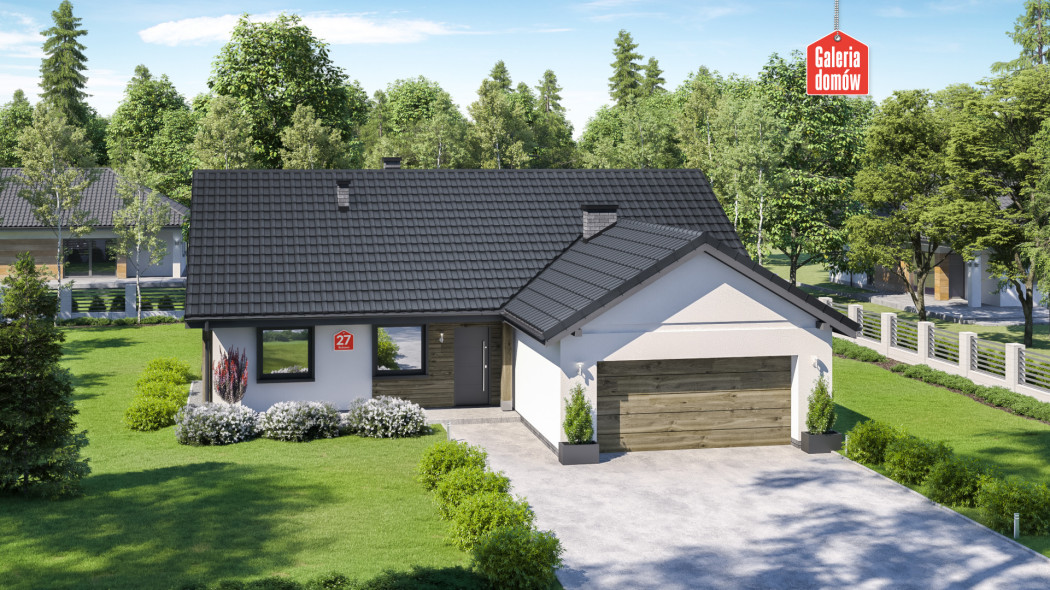 Dom przy Bukowej 27 jest projektem energooszczędnego domu parterowego z dwustanowiskowym garażem. Wykonany w technologii tradycyjnej, murowanej i dostosowany do warunków technicznych 2021. Układ funkcjonalny przewiduje otwartą, słoneczną część dzienną, na którą składa się salon i kuchnia. Centralnie ulokowany kominek to atut tej przyjaznej przestrzeni. Bukowa 27 posiada ponadto 3 sypialnie, wygodną łazienkę i dodatkową toaletę. Ważną funkcję pełni również najmniejszy pokój, pełniący funkcję gabinetu. Przez jego obecność uzyskujemy faktycznie 4 pokoje, poza otwartą strefą dzienną.