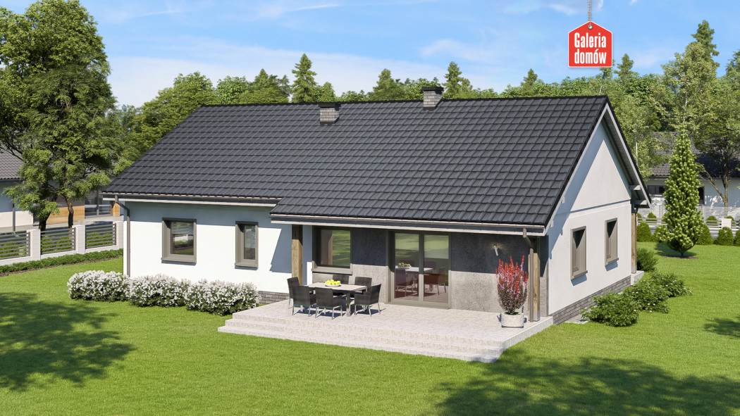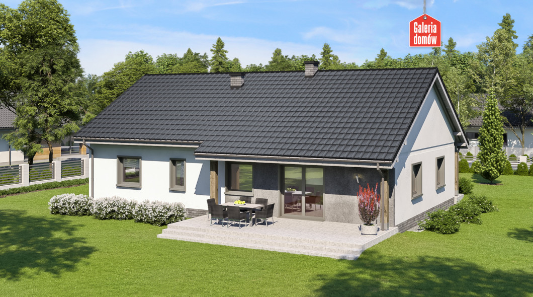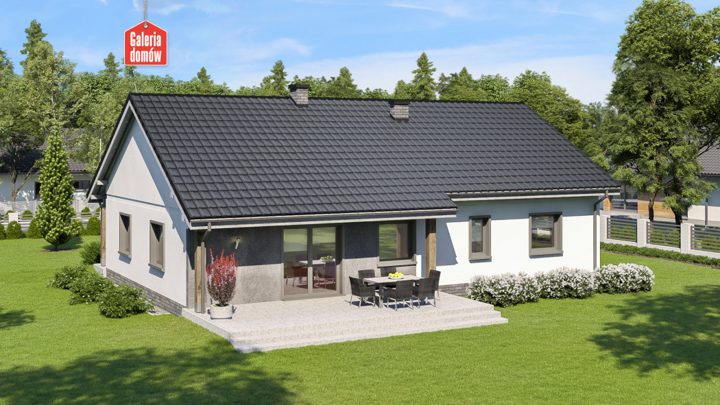 Wnętrze mieści 4 pokoje, otwartą kuchnię, salon, łazienkę, toaletę oraz kotłownię. Projekt wykonany w technologii murowanej z tradycyjną więźbą drewnianą oraz stropem monolitycznym. Posiada charakterystykę energetyczną opracowaną według warunków technicznych WT 2021. Dom energooszczędny, prosty w budowie i ekonomiczny w użytkowaniu.