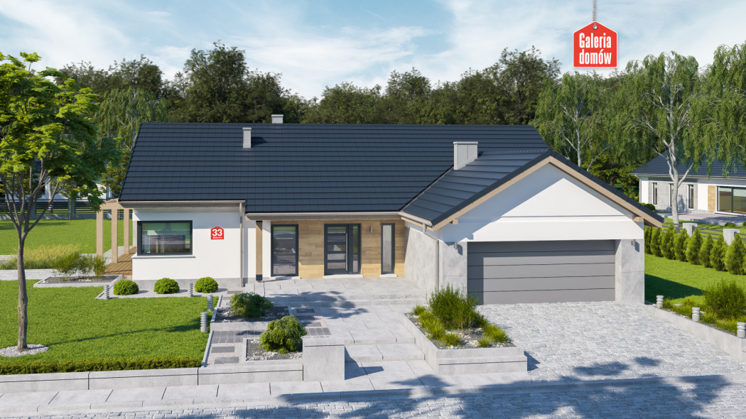 Dom przy Bukowej 33 to budynek parterowy z dachem dwuspadowym i podwójnym garażem w bryle. Powierzchnia użytkowa wynosi 135 m². Dom zaprojektowano w technologii murowanej z tradycyjną więźbą drewnianą. Projekt posiada charakterystykę energetyczną opracowaną wg WT 2021.