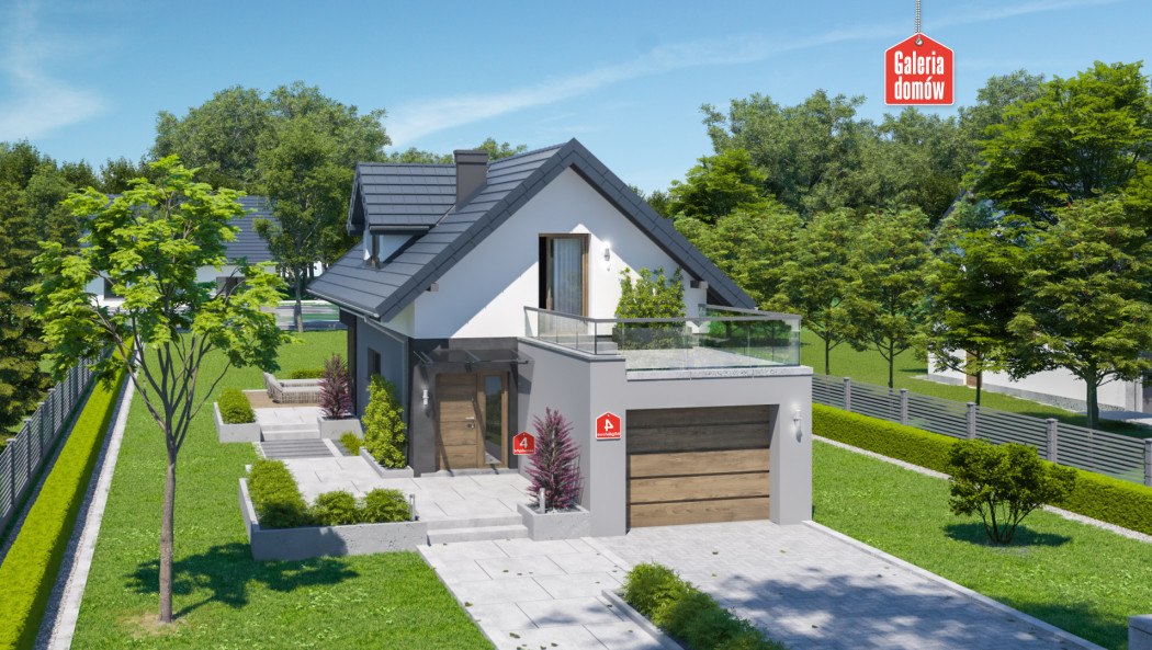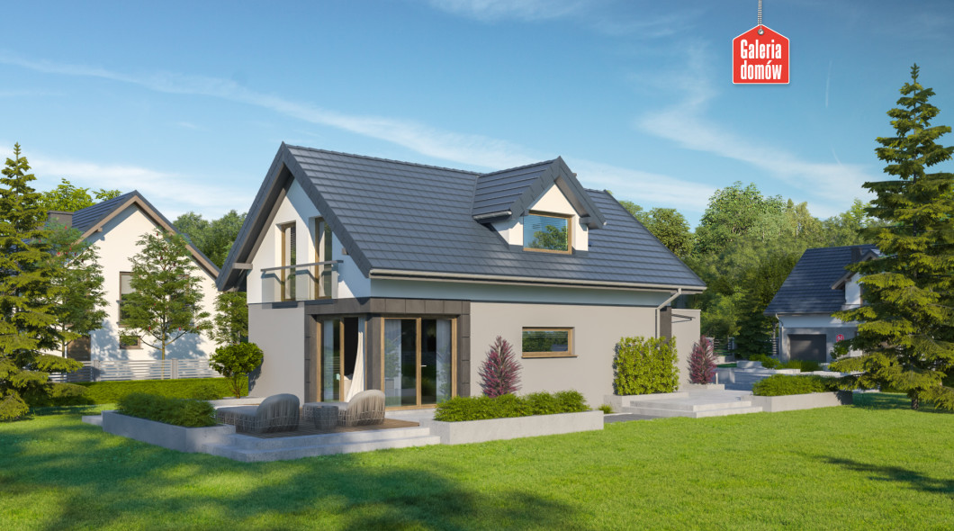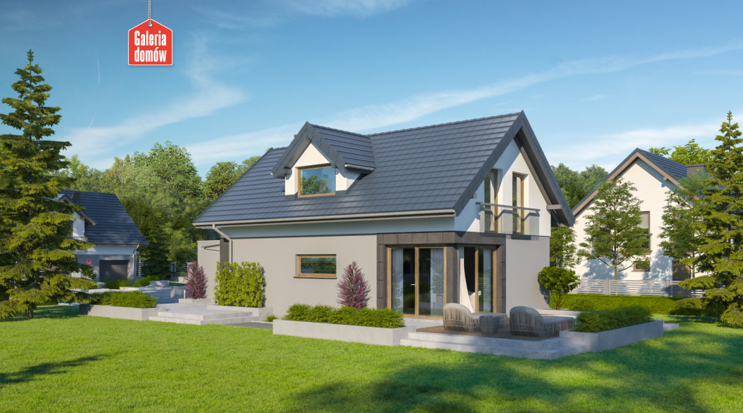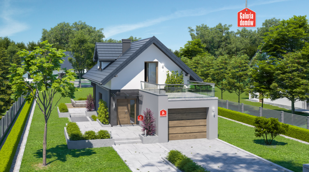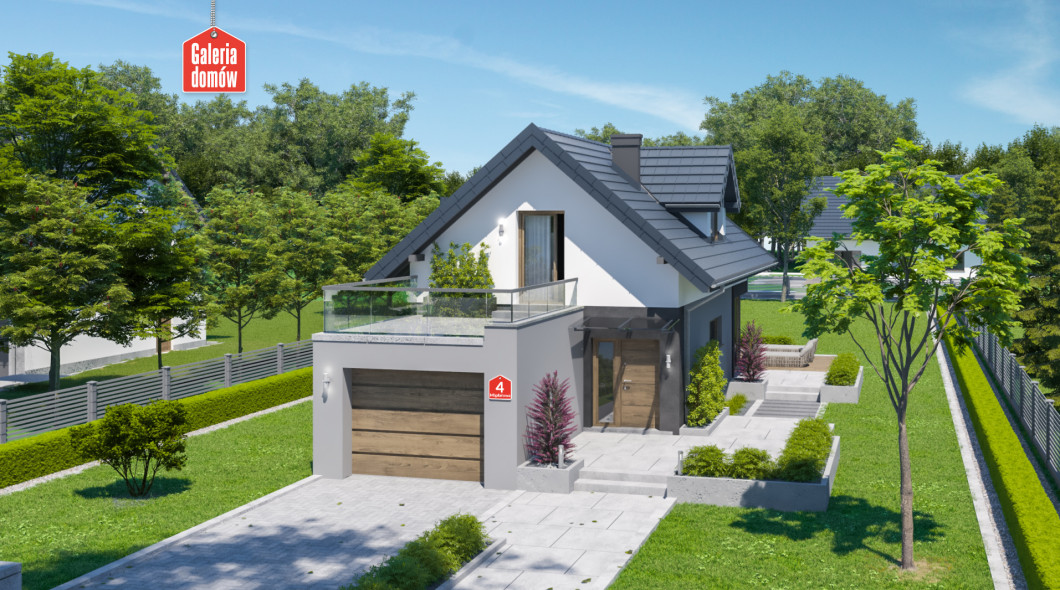 Dom przy Migdałowej 4 to budynek jednorodzinny z dachem dwuspadowym przygotowany z myślą o wąskich działkach. Prosta konstrukcja dachu oraz forma budynku sprawiają, iż jest to dom oszczędny w budowie i nie sprawia trudności w trakcie realizacji.