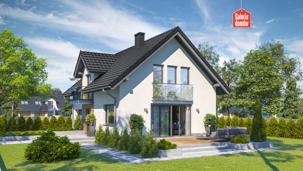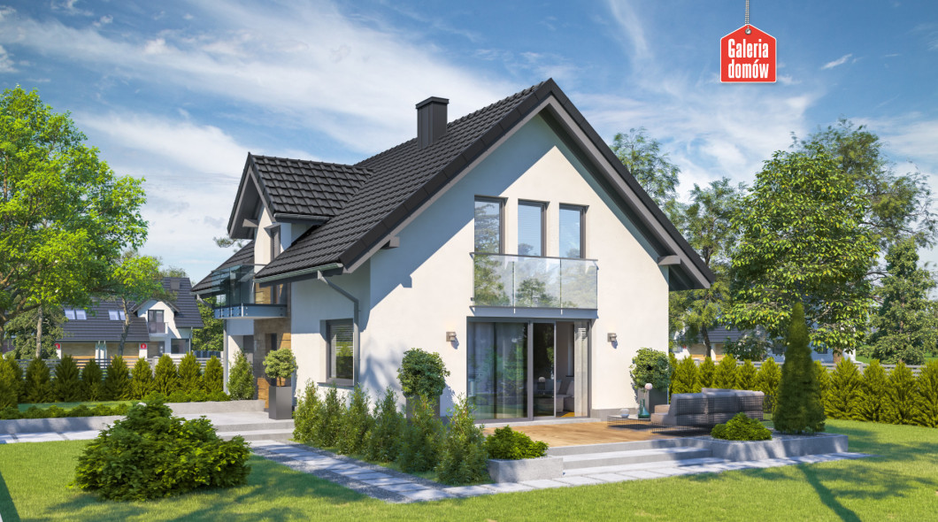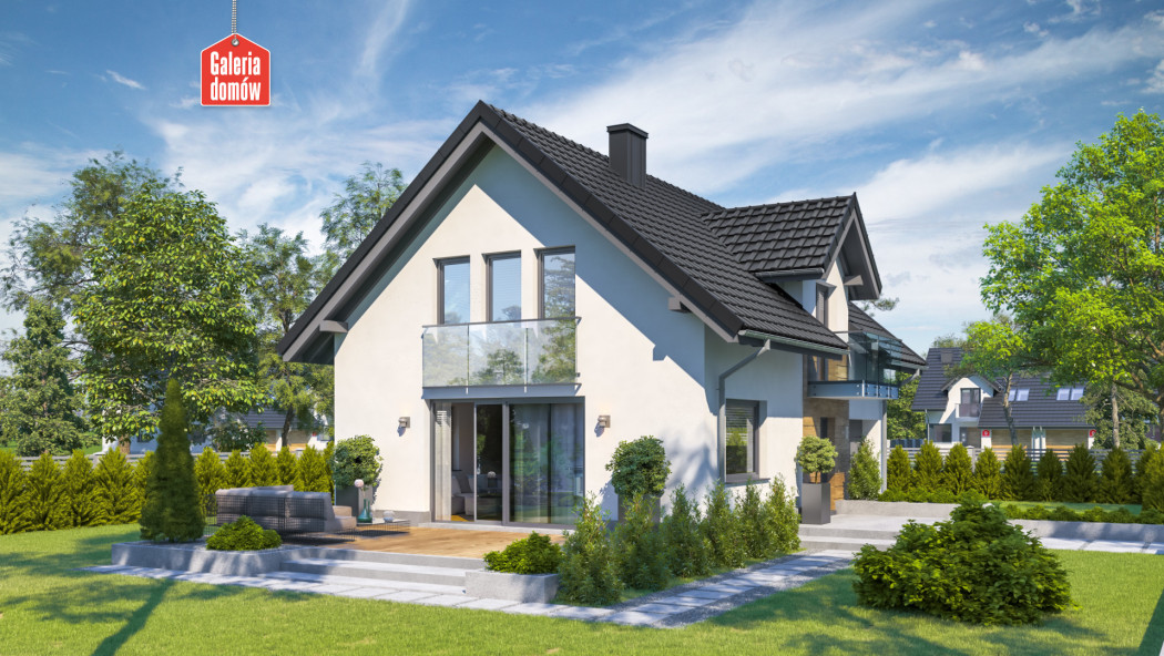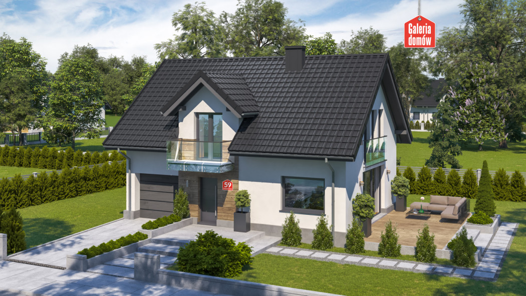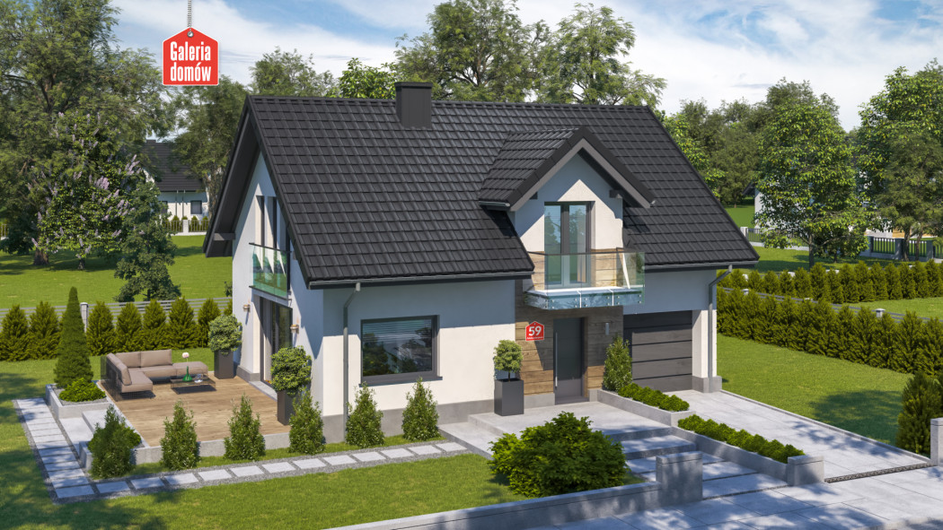 Nowoczesny budynek został zaprojektowany jako dom energooszczędny i opracowany wg standardów WT 2021. Wnętrze mieści otwartą strefę dzienną, na którą składają się; salon z jadalnią i kuchnia. W bryle budynku przewidziano pojedynczy garaż. Na parterze ponadto funkcjonuje łazienka oraz kotłownia. Poddasze wykorzystano na cześć nocną, którą tworzą 3 sypialnie oraz duża łazienka z pralnią. W sypialni małżeńskiej zaprojektowano garderobę. Dom przy Alabastrowej 59 posiada prostą konstrukcję, dlatego jest tani w budowie i ekonomiczny w użytkowaniu. Nowoczesne wykończenie elewacji oparto o szklane balkony, drewniane okładziny elewacyjne i czarno-białą kolorystykę. Doskonała propozycja dla 4-5 osobowej rodziny.