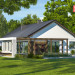 Koszt wzniesienia budynku wraz z pokryciem dachu i stolarką zewnętrzną (okna i drzwi). Bez instalacji, ocieplenia i robót wykończeniowych.