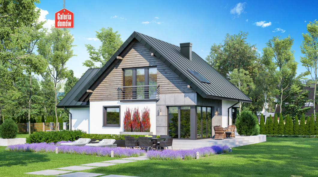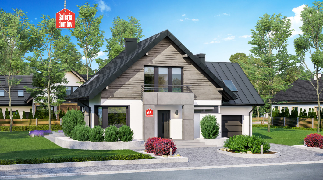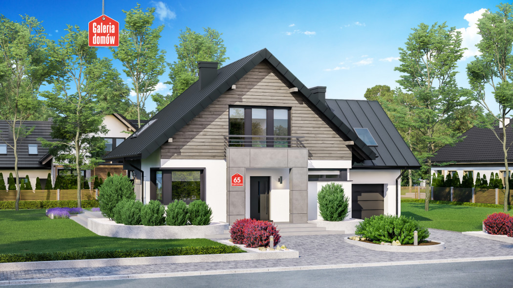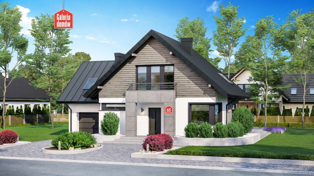 Nowoczesny dom został zaprojektowany w wersji energooszczędnej, dostosowanej do standardów WT 2021. Układ funkcjonalny to strefa dzienna, na którą składają się; salon z jadalnią i kuchnia wraz ze spiżarnią. W bryle budynku przewidziano pojedynczy garaż, za którym znajduje się kotłownia. Na parterze ponadto zaprojektowano dodatkowy pokój, łazienkę oraz pralnię. Poddasze wykorzystano na część nocną, którą tworzą 4 sypialnie oraz duża łazienka. Dom przy Cyprysowej 65 posiada prostą konstrukcję, dlatego jest stosunkowo tani w budowie i ekonomiczny w użytkowaniu. Nowoczesne wykończenie elewacji zakłada wykorzystanie drewna, betonu dekoracyjnego i stali. Cyprysowa 65 to doskonała propozycja dla 4-5 osobowej rodziny ceniącej zalety domu z poddaszem.