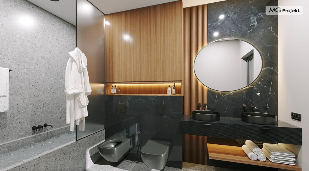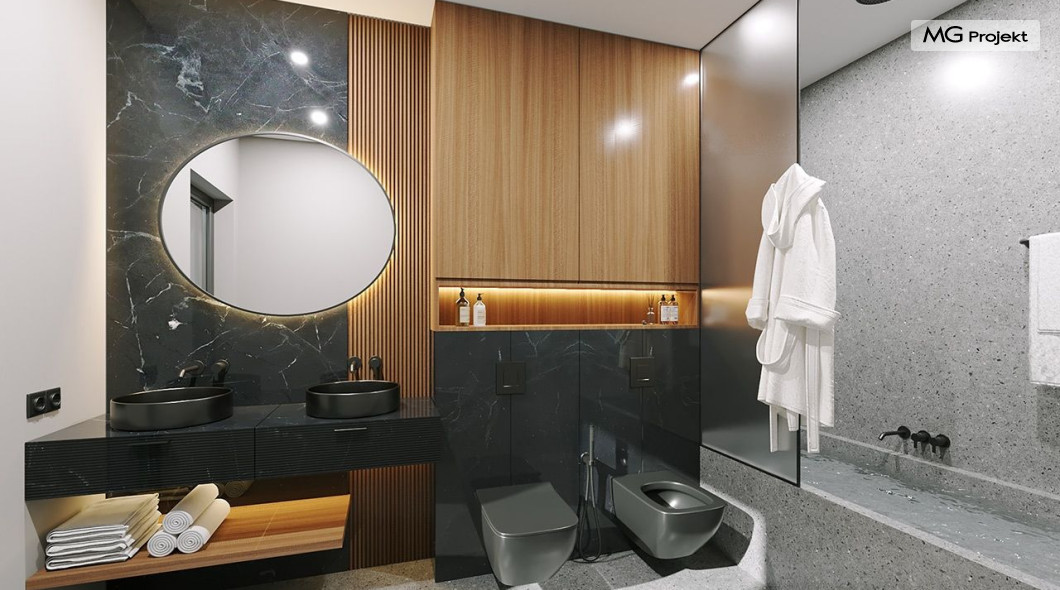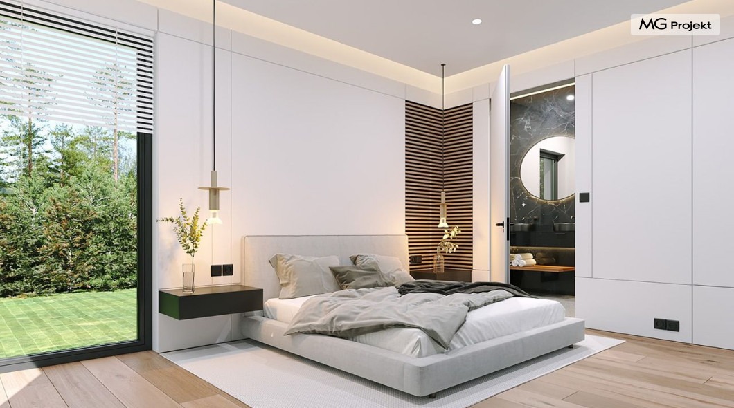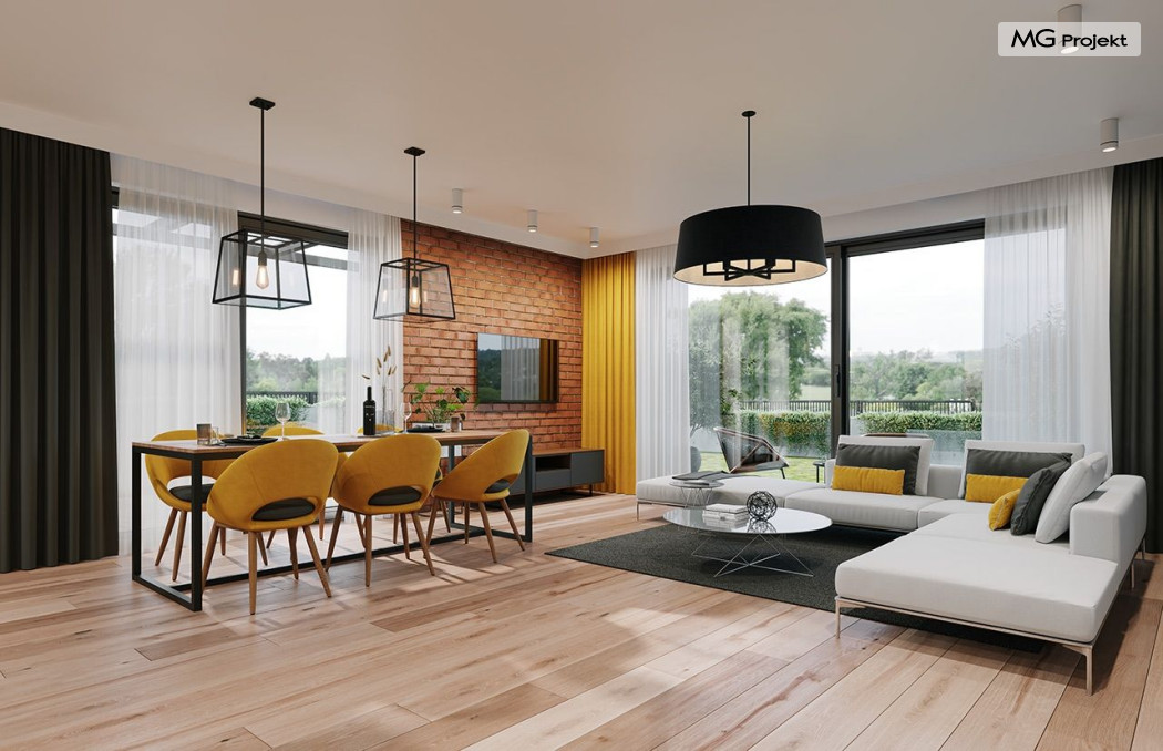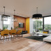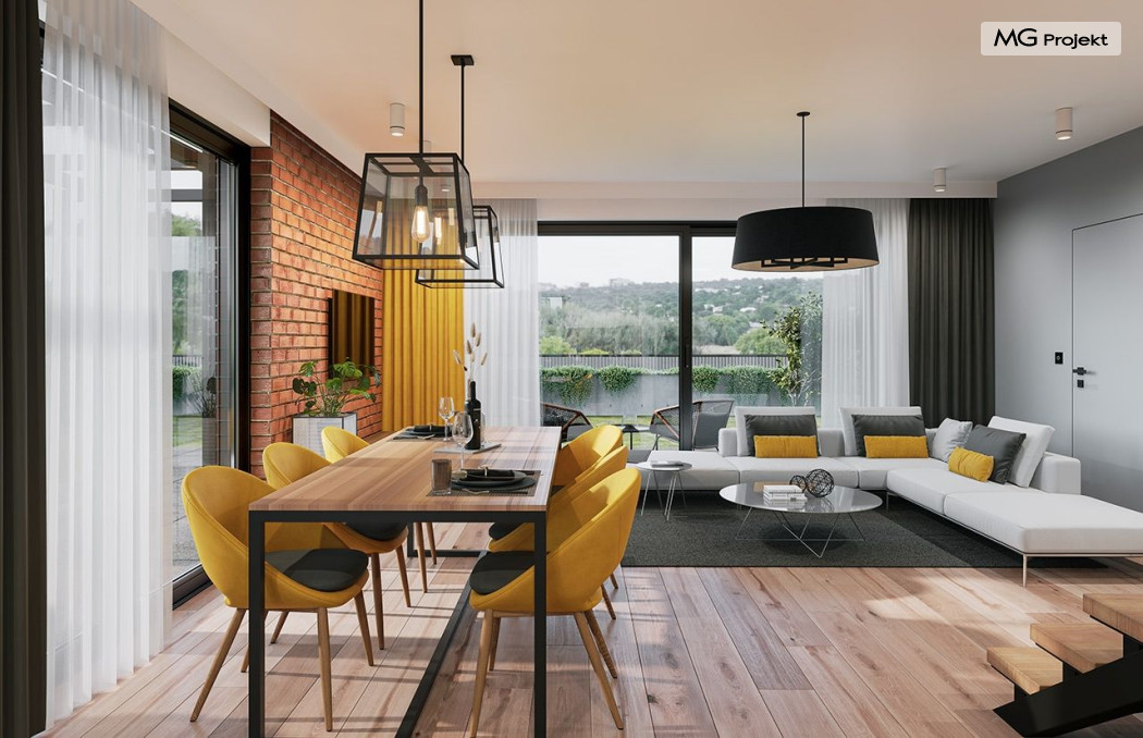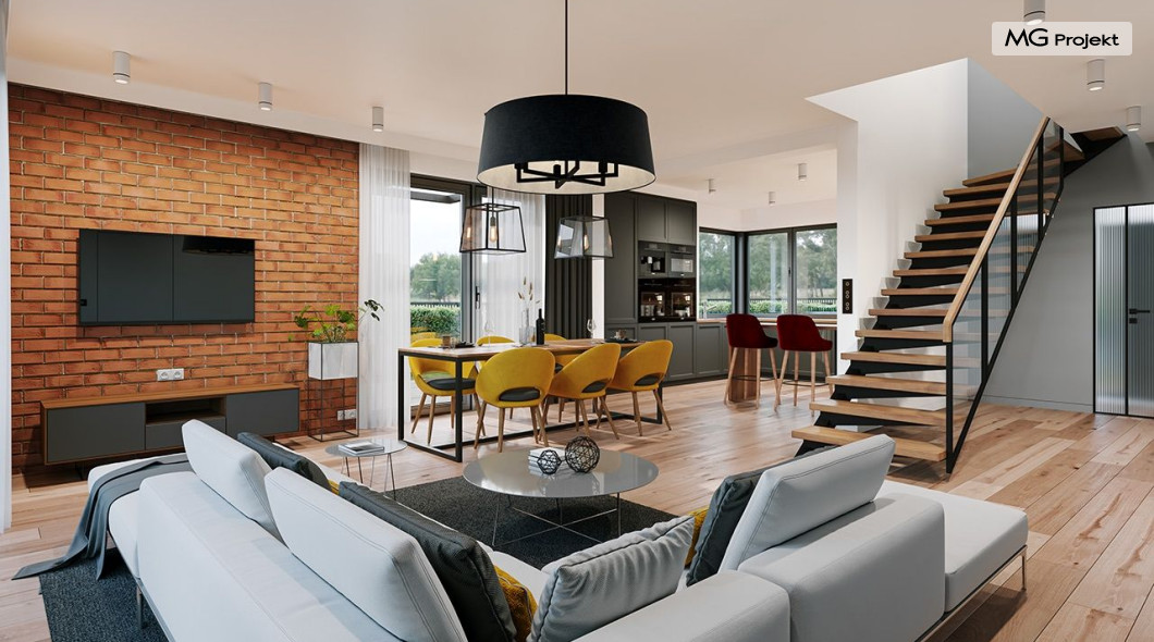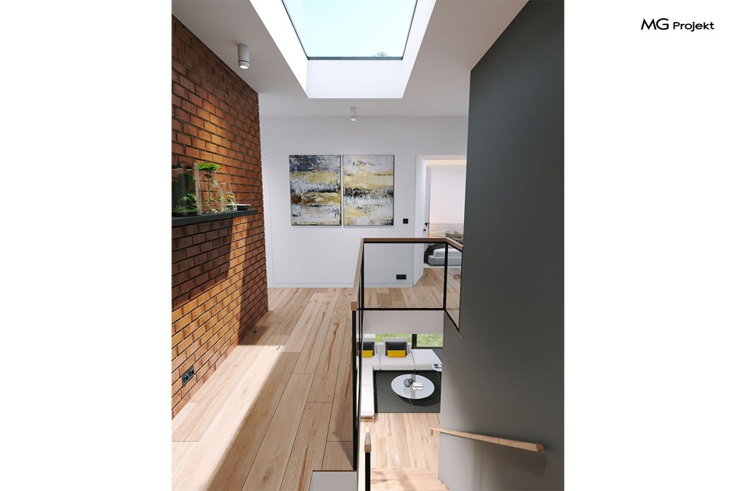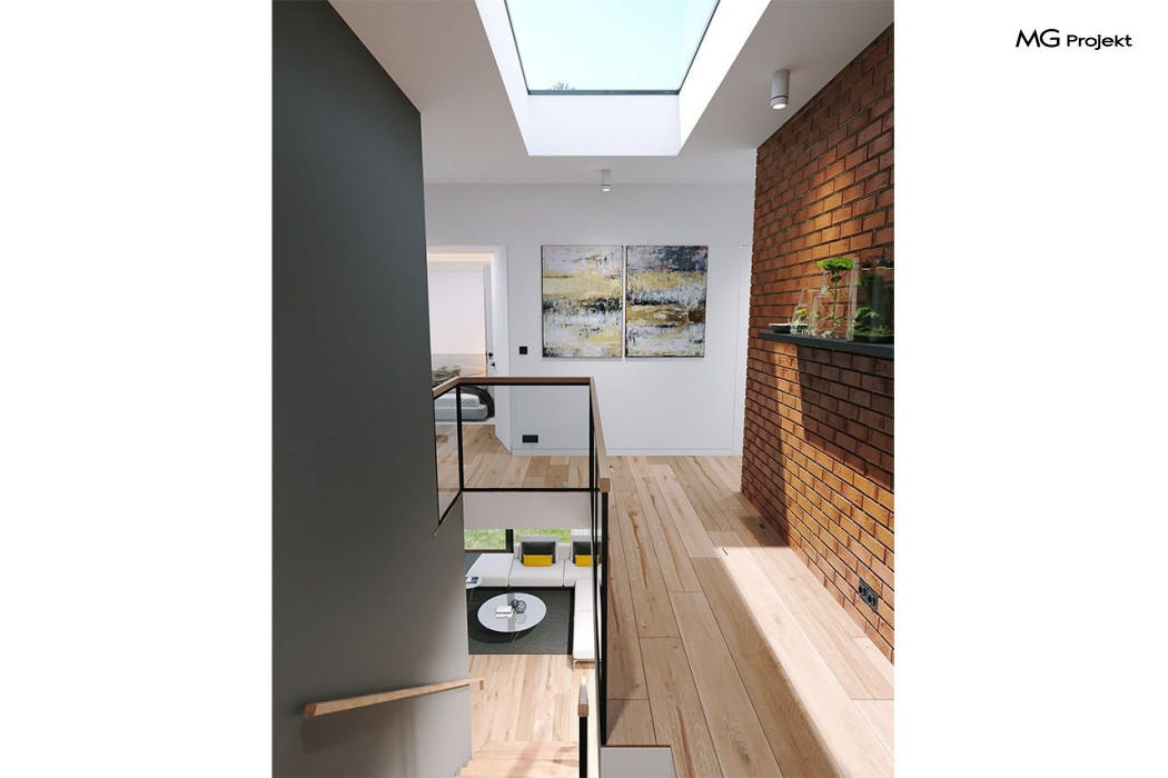 Projekt domu Qubik 3 jest to projekt budynku jednorodzinnego w zabudowie bliźniaczej. Budynek o nowoczesnej architekturze, z piętrową bryłą, przykryty dachem płaskim, zbudowany ma planie zbliżonym do kwadratu. Bryła budynku składa się z kilku przenikających się wzajemnie prostopadłościennych mniejszych brył. Dom połączony jest wbudowanymi garażami rozdzielającymi wizualnie dwie połówki bliźniaka. Wejścia do obu segmentów domu podkreślone są dominującymi wykuszami wystającymi przed ścianę elewacji frontowej i wykończonymi w kontrastowym kolorze. Podział elewacji domu na poziome pasy, zróżnicowane kolorystycznie i materiałowo, oraz zastosowanie dużych przeszkleń, dają domowi dynamiczny nowoczesny wygląd. Od strony ogrodu architektura domu jest spokojniejsza - tutaj główną rolę odgrywają ogród, taras i szerokie przeszklenie łączące salon z trawnikiem. Wnętrze każdej z połówek bliźniaka zaprojektowano dzieląc funkcje na cześć dzienną i techniczną na parterze, oraz pokoje sypialne na piętrze.Do domu wchodzimy przez przedsionek do holu z reprezentacyjnymi schodami i do salonu. Salon łączy się częściowo z dużą wygodną kuchnią. Jest tu również połączenie z dodatkowym pokojem na parterze – gabinetem. W salonie nie przewidziano kominka - uznając go za niepotrzebny, ale w każdej chwili taki kominek można bez kłopotu dodać. Piętro to cztery pokoje sypialne z dwiema łazienkami, w tym sypialnia master z własną łazienką i garderobą. Hol na piętrze został pięknie doświetlony ogromnym świetlikiem do dachów płaskich Velux. Architektura domu - zarówno jego szata zewnętrzna jak i wnętrze,zostały podporządkowane maksymalnej klarowności, funkcjonalności i prostocie. Qubik 3 to dom dla Inwestorów lubiących minimalizm i prostotę, w połączeniu z dyskretną elegancją. Dom jest prosty w budowie, ma prostą konstrukcję. W budynku zastosowano bardzo dobre izolacje i nowoczesne instalacje, aby zminimalizować późniejsze koszty eksploatacji budynku. Qubik 3 zmieści się na niewielkiej parceli, w miejscu gdzie urzędnicy dopuszczają budowę domu z płaskim dachem. Projekt jest świetną propozycją dla inwestorów na wyróżnienie się ze swoim bliźniakiem z tła innych typowych domów. Zapraszamy !