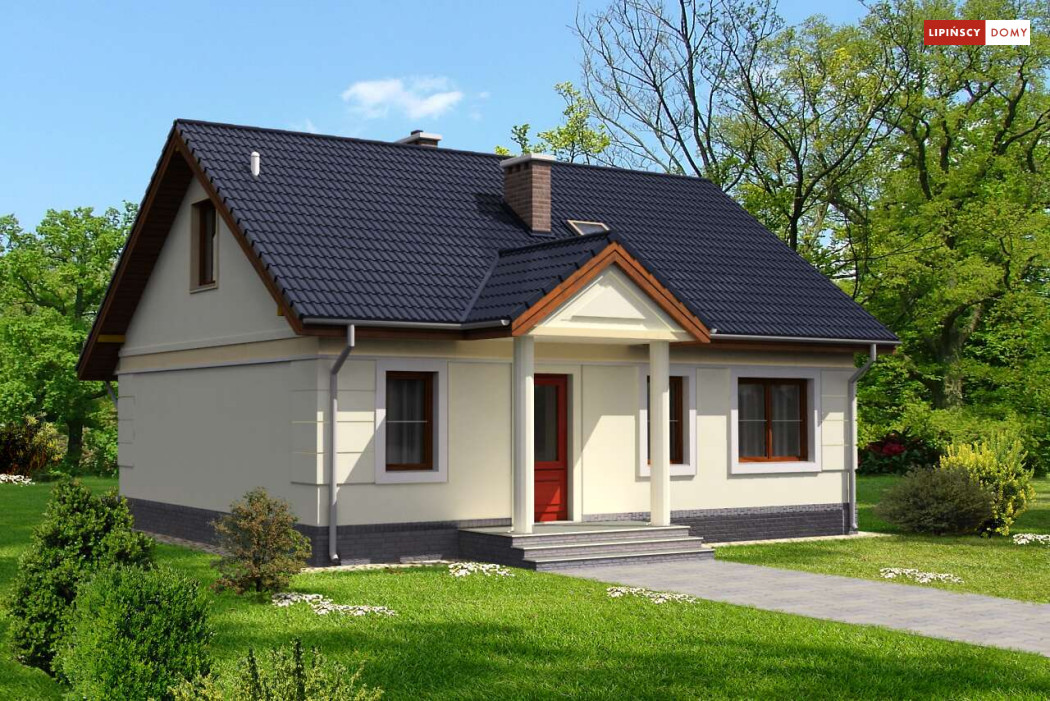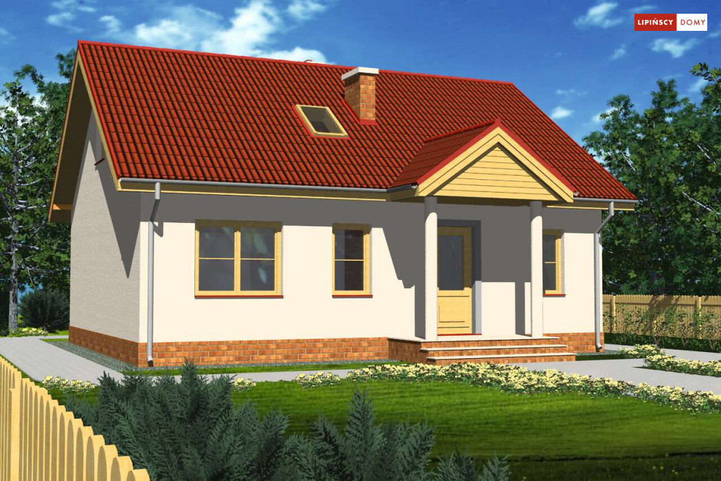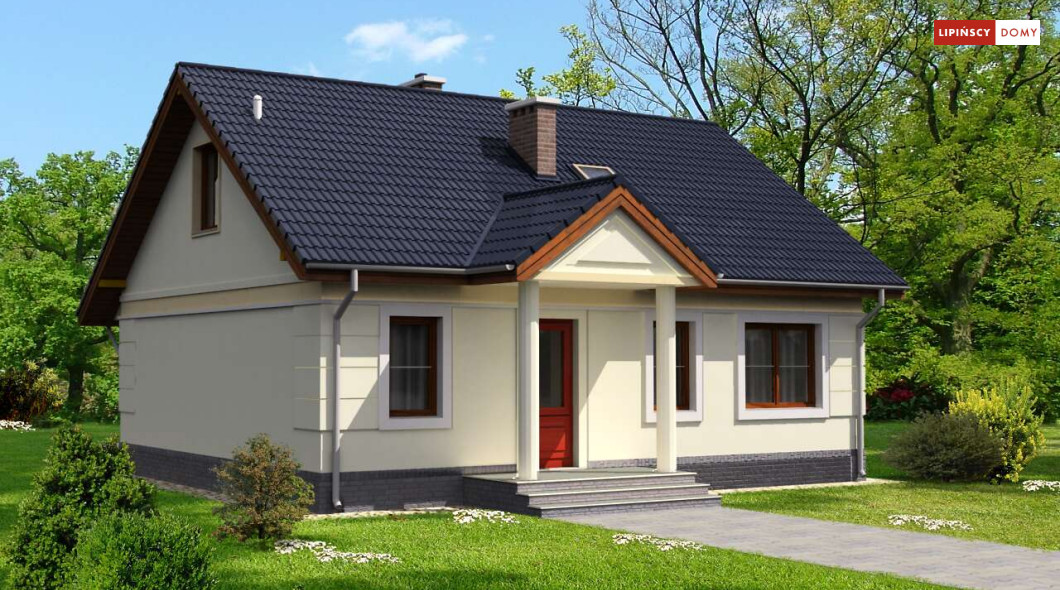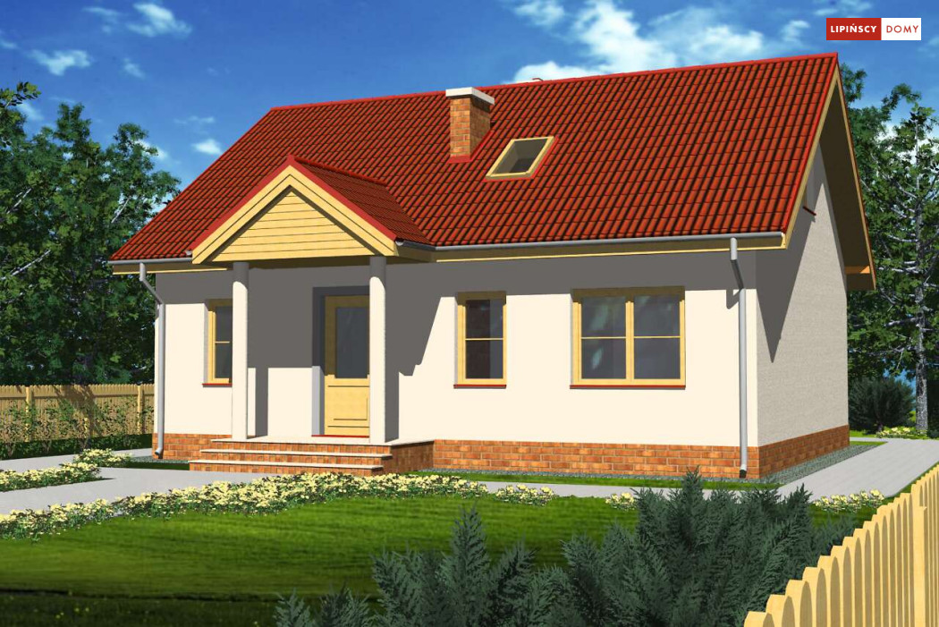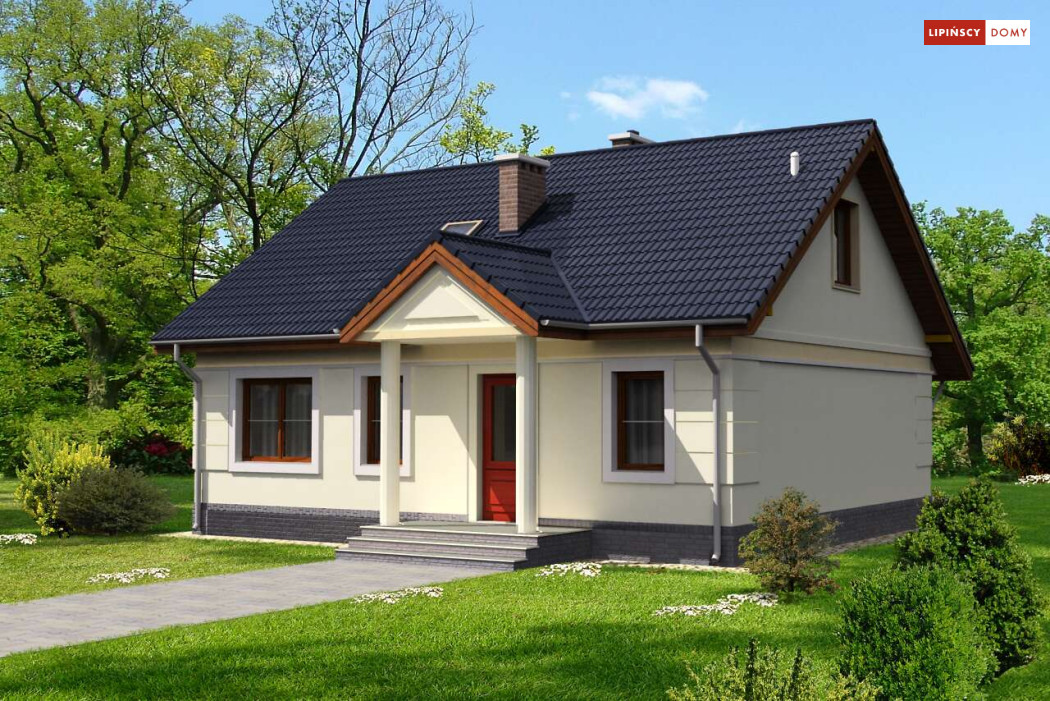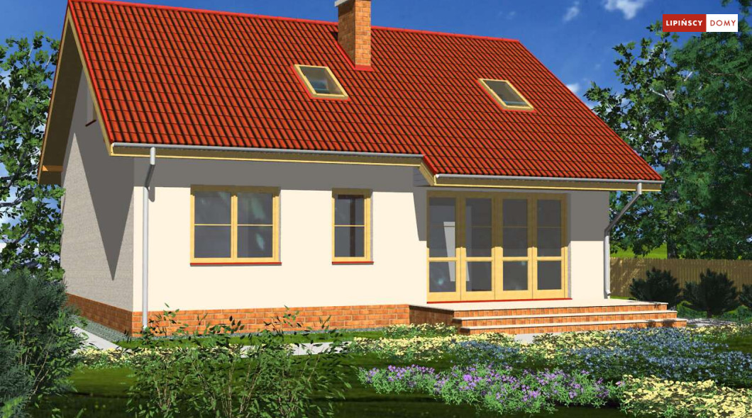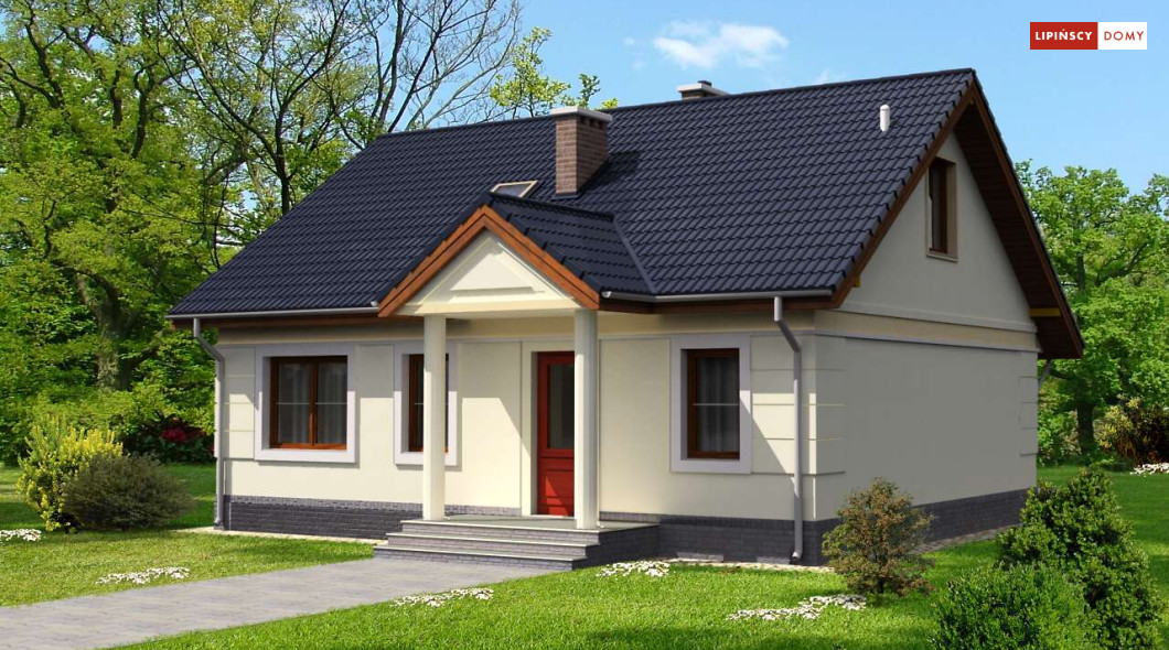 Jest to mały, parterowy dom. Założony został na planie prostokąta i przekryty dwuspadowym dachem, którego akcentami są: daszek wejściowy w elewacji frontowej i obniżenie okapu po stronie ogrodu, będące częściowym zadaszeniem tarasu. Rysunek elewacji jest prosty, ale wyważony w swych proporcjach. Drzwi wejściowe podkreślone zostały profilowanym obramieniem. W budynku przewidziano strop żelbetowy. Istnieje możliwość ewentualnego wykorzystania powierzchni poddasza. Dla jej oświetlenia zaproponowano okna w ścianach szczytowych i ewentualne połaciowe. Dostępne są wersje projektu z garażem.