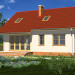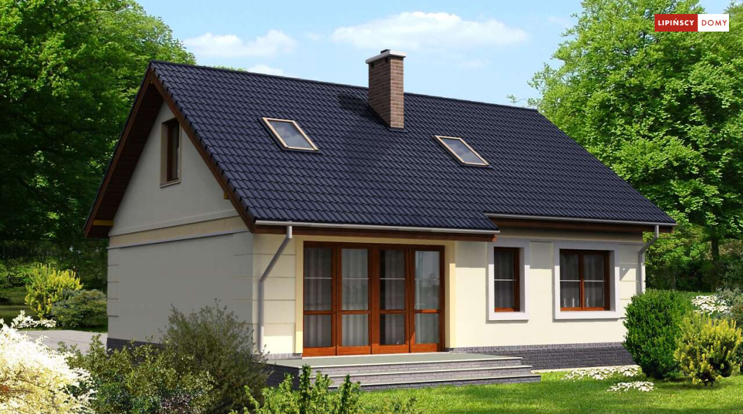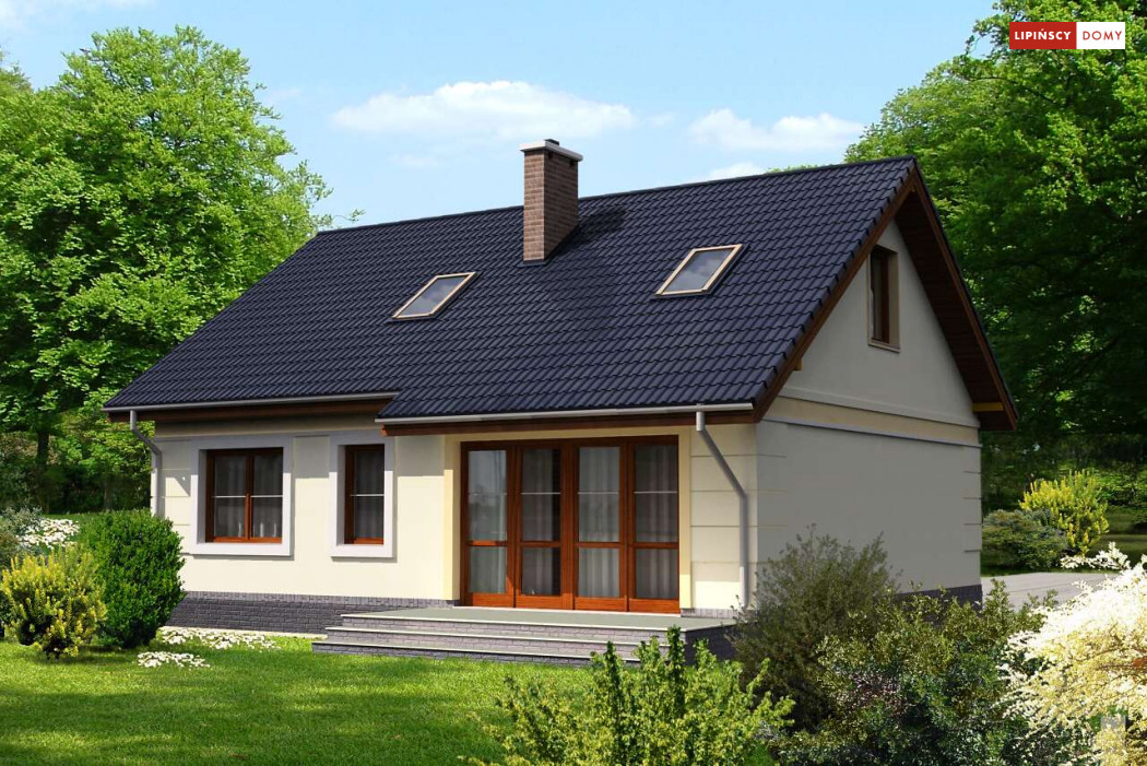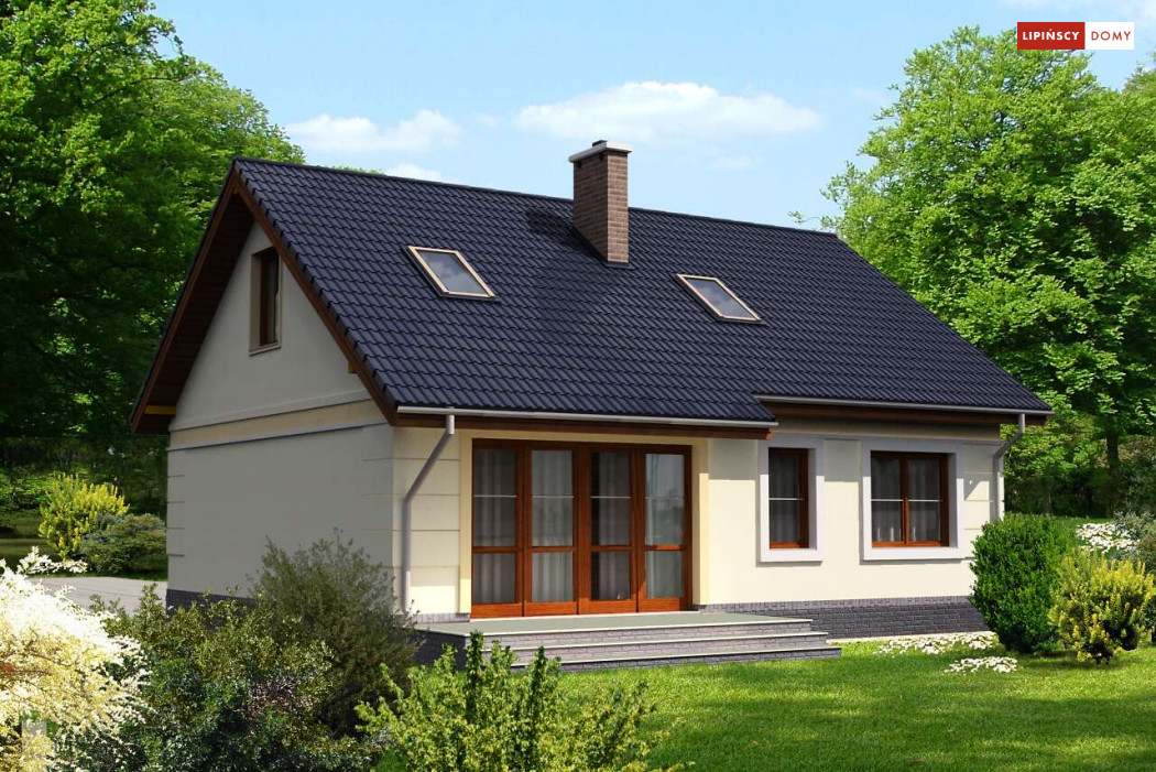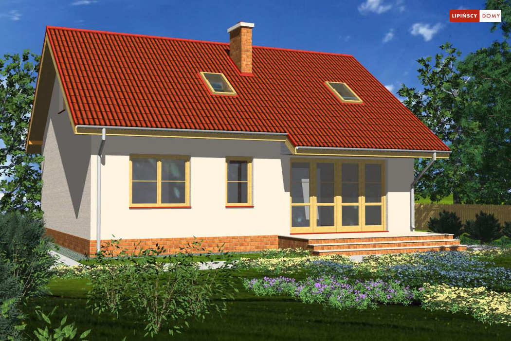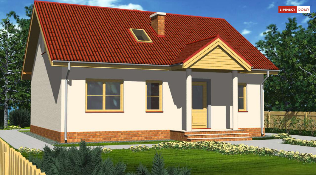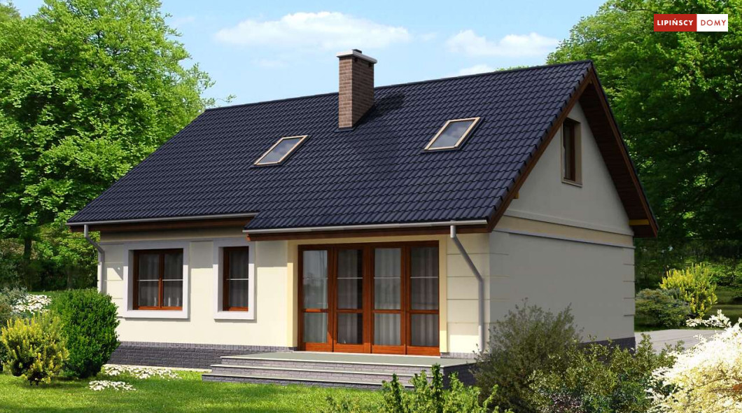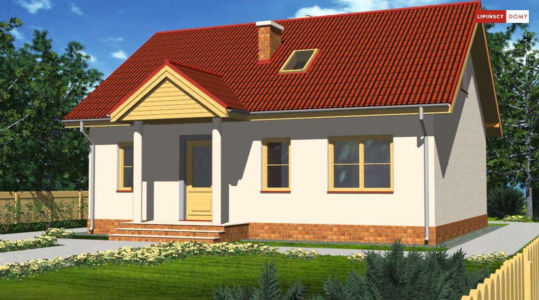 Jest to mały, parterowy dom. Założony został na planie prostokąta i przekryty dwuspadowym dachem, którego akcentami są: daszek wejściowy w elewacji frontowej i obniżenie okapu po stronie ogrodu, będące częściowym zadaszeniem tarasu. Rysunek elewacji jest prosty, ale wyważony w swych proporcjach. Drzwi wejściowe podkreślone zostały profilowanym obramieniem. W budynku przewidziano strop żelbetowy. Istnieje możliwość ewentualnego wykorzystania powierzchni poddasza. Dla jej oświetlenia zaproponowano okna w ścianach szczytowych i ewentualne połaciowe. Dostępne są wersje projektu z garażem.