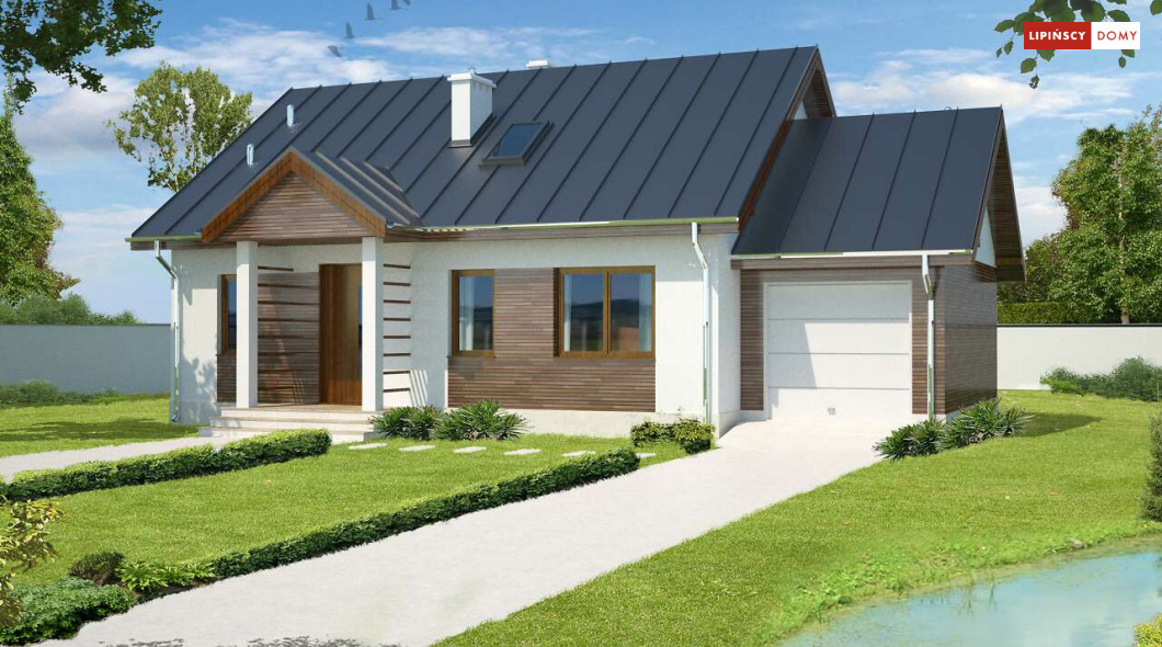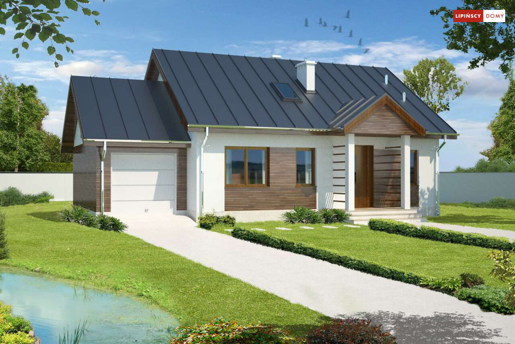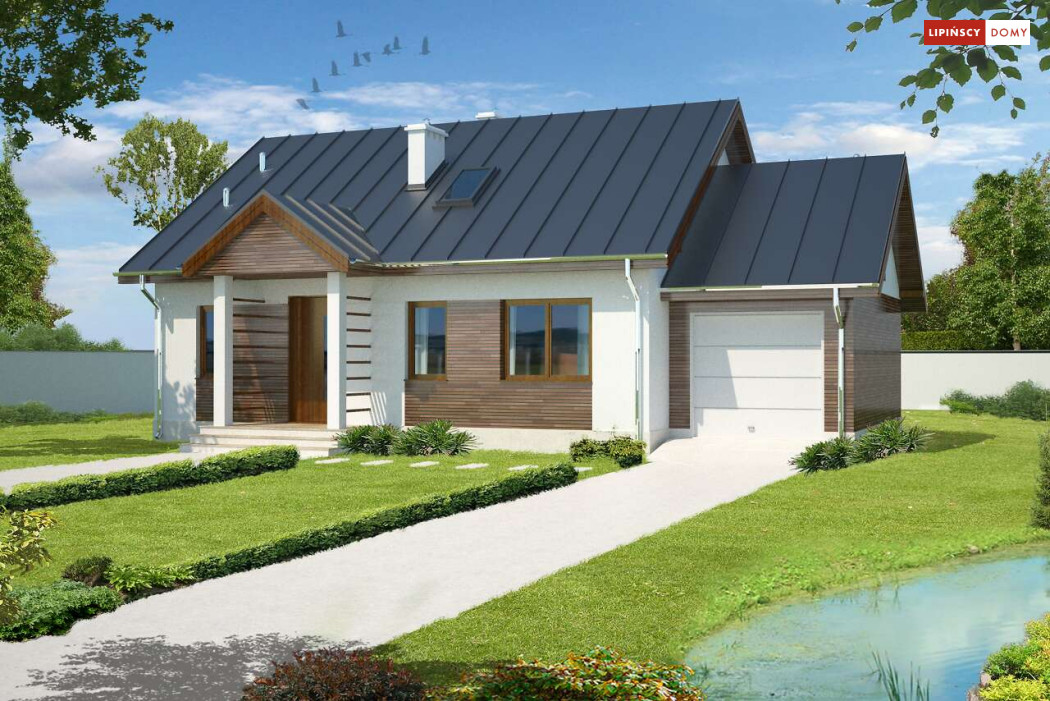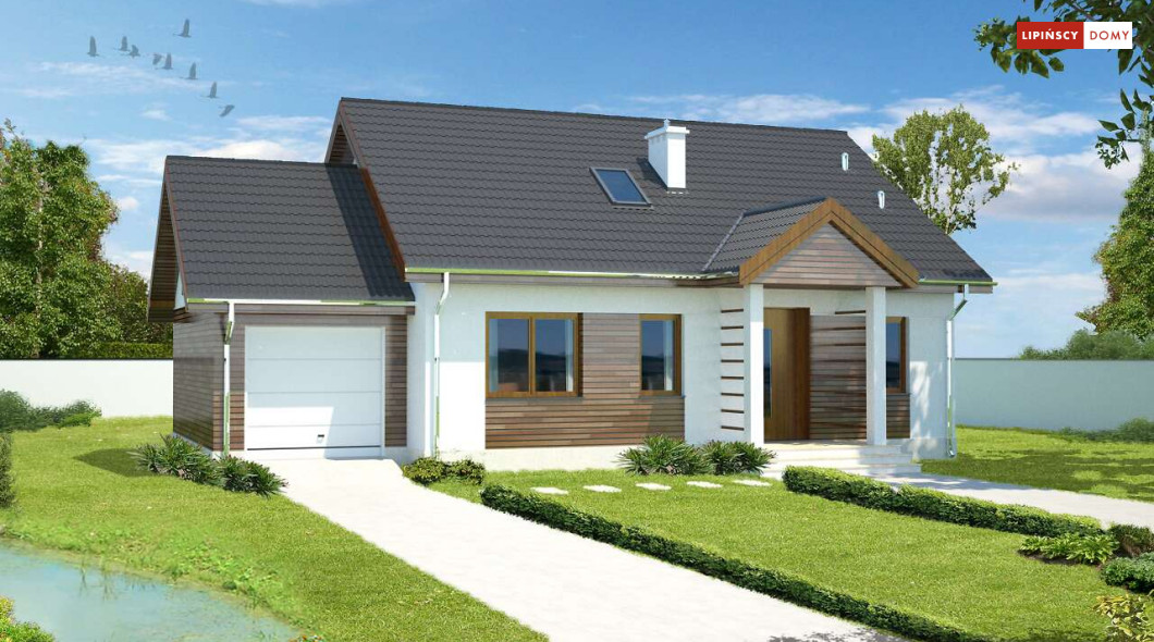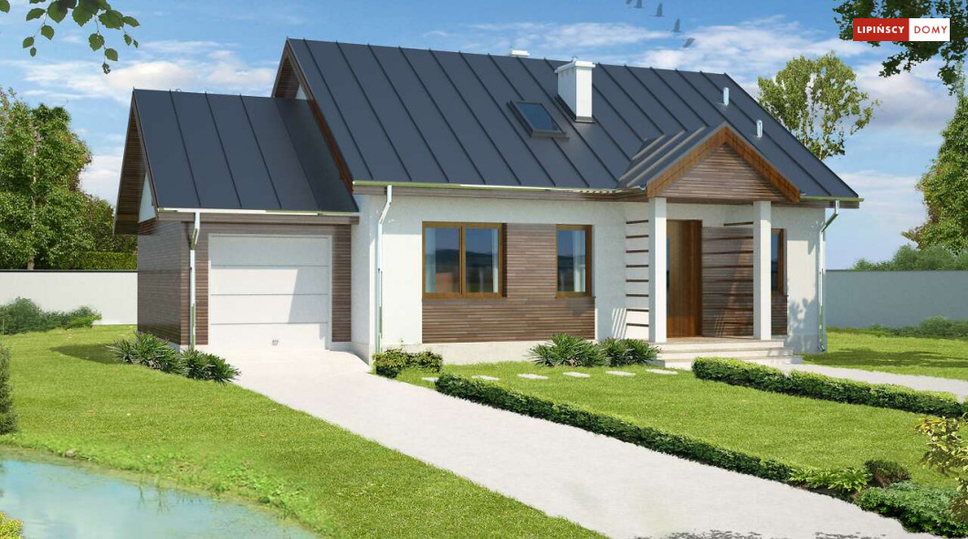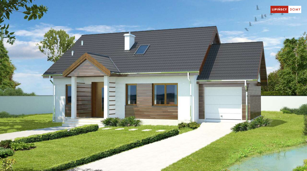 Niewielki, wygodny dom parterowy z garażem, który dzięki prostej konstrukcji i dwuspadowemu dachowi jest niedrogi w budowie. W domu widać wyraźny podział na część dzienną – salom z miejscem na stół. wc i kuchnię oraz na część prywatną – dwie sypialnie i wygodną łazienkę z wanną i prysznicem. Dom posiada ogrzewanie gazowe, kocioł został zlokalizowany w pomieszczeniu gospodarczym, które może być także pralnią.