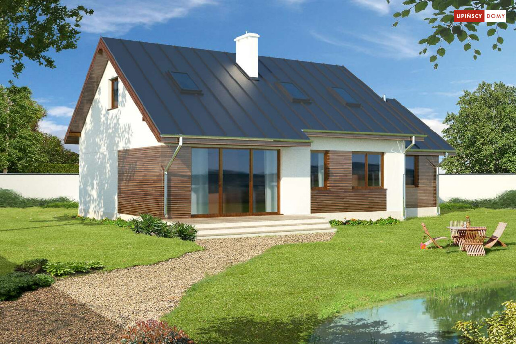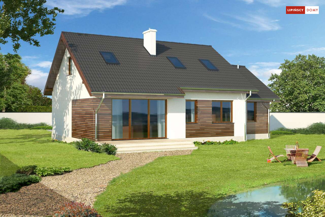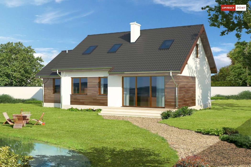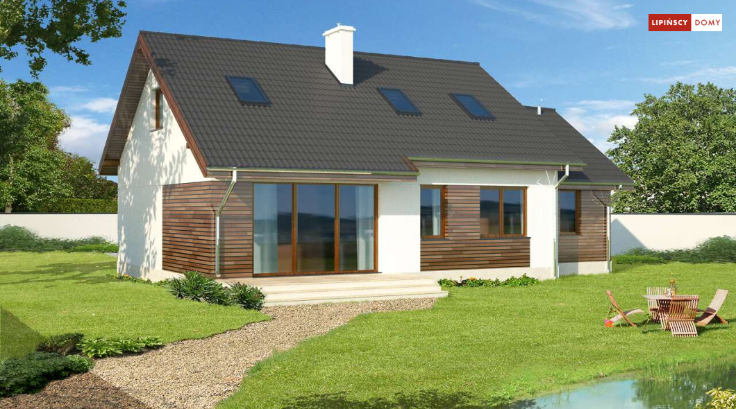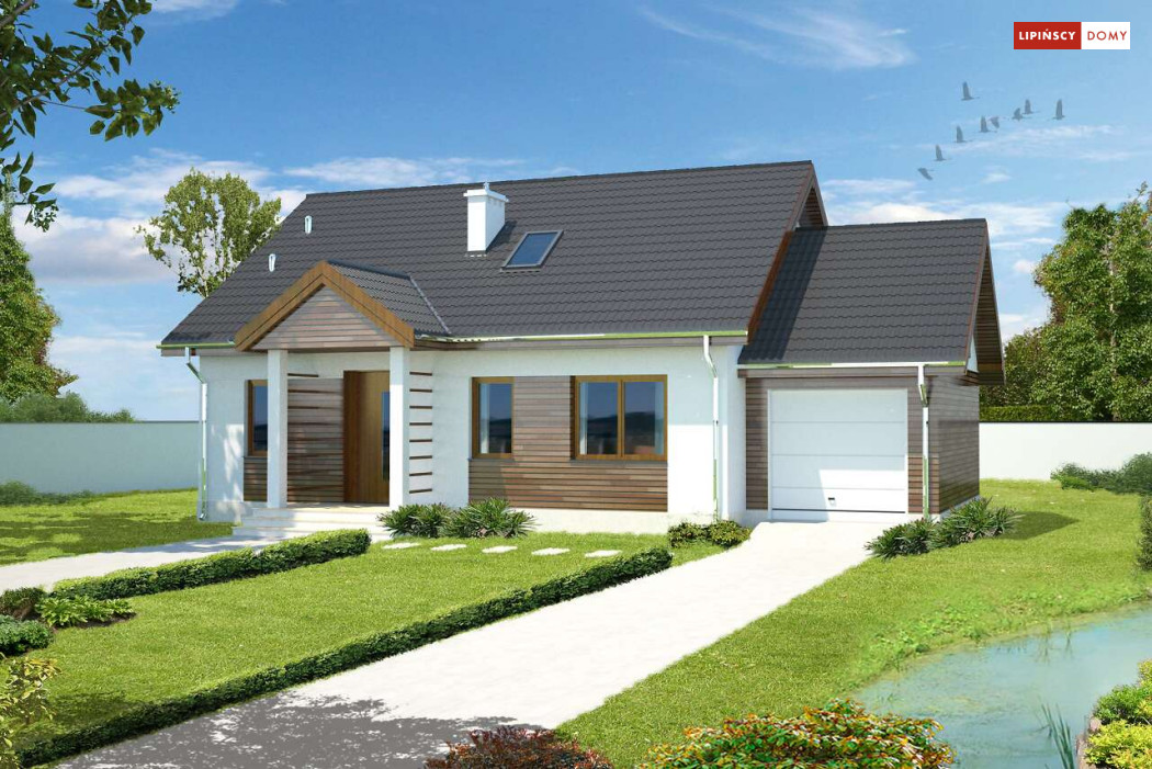 Niewielki, wygodny dom parterowy z garażem, który dzięki prostej konstrukcji i dwuspadowemu dachowi jest niedrogi w budowie. W domu widać wyraźny podział na część dzienną – salom z miejscem na stół. wc i kuchnię oraz na część prywatną – dwie sypialnie i wygodną łazienkę z wanną i prysznicem. Dom posiada ogrzewanie gazowe, kocioł został zlokalizowany w pomieszczeniu gospodarczym, które może być także pralnią.