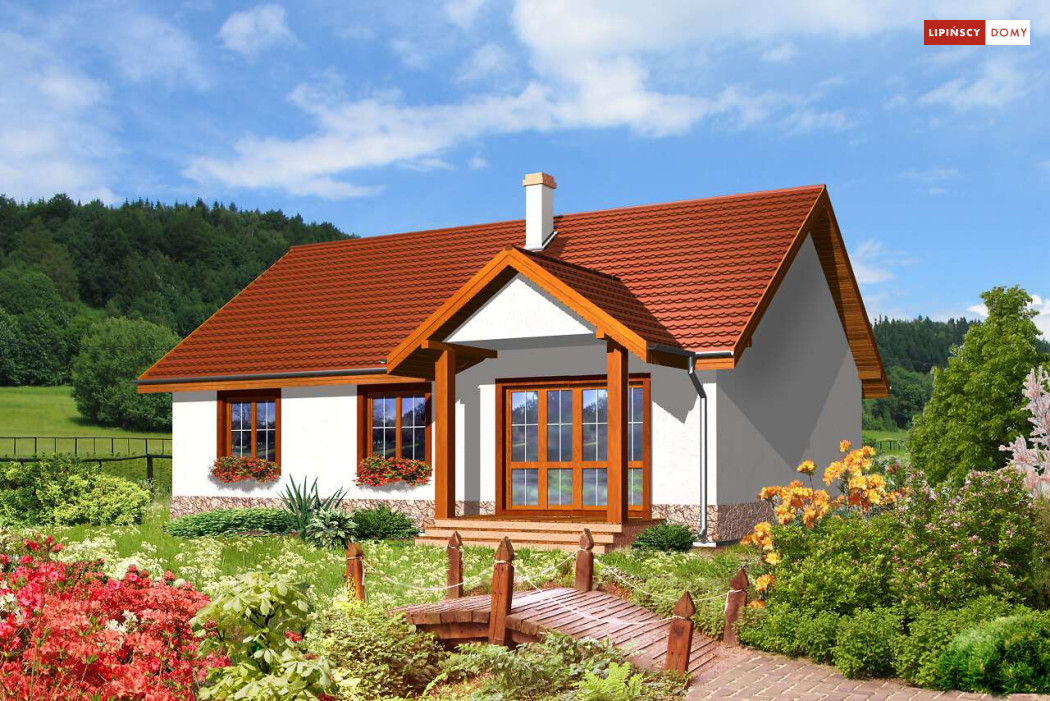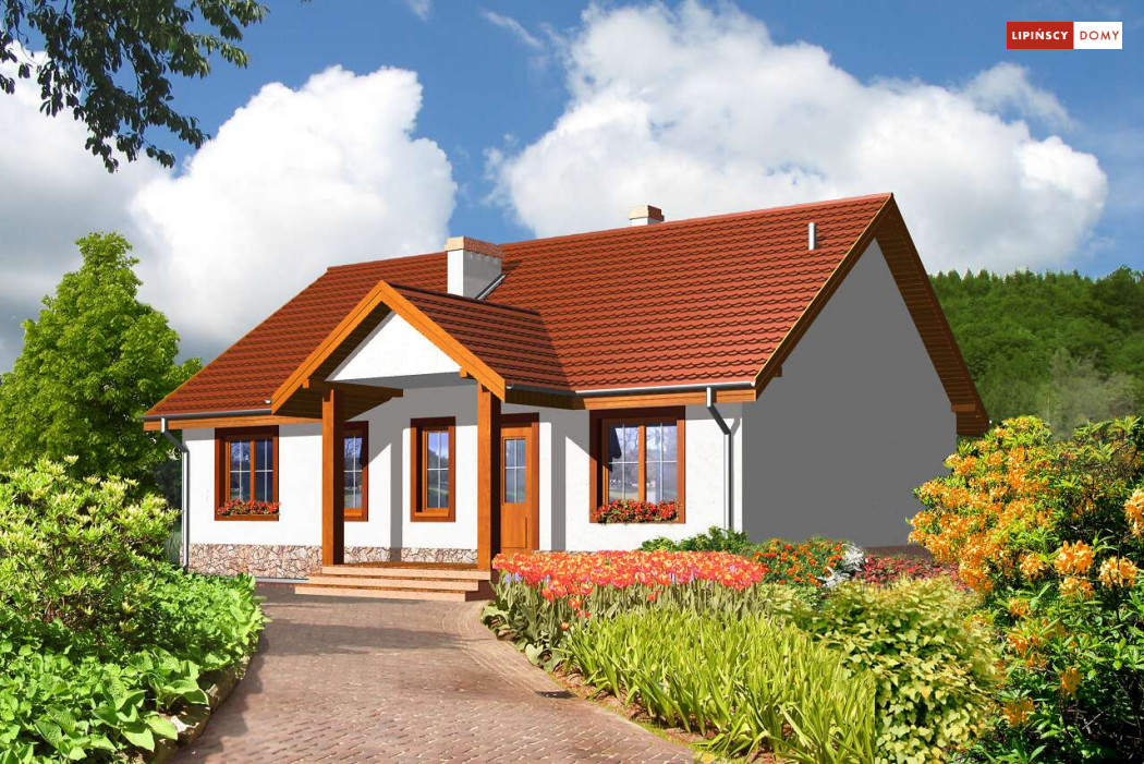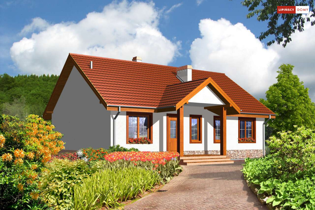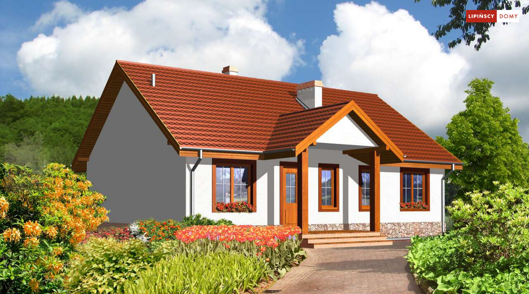 Projekt domu Toledo to tradycyjny budynek z dwuspadowym dachem okapowym oraz zadaszeniami nad wejściem i tarasem wspartymi na kolumnach. Tradycyjny charakter domu podkreśla również podział okien wzbogaconych o szprosy, co dodatkowo uwydatnia jego ponadczasowy styl. Po wejściu do domu otwiera się strefa dzienna z kominkiem, która poprzez podwójne przeszklone drzwi prowadzi na zadaszony taras i zaprasza do ogrodu. Mieszkańcy mają do dyspozycji wydzieloną strefę prywatną, w której znajdują się trzy sypialnie - dwie mniejsze i jedna większa - oraz funkcjonalna łazienka. Tuż przy wejściu zlokalizowane jest pomieszczenie gospodarcze z kotłem gazowym i pralką. W strefie komunikacji znalazło się miejsce na dwie duże szafy ubraniowe, jedno przy wejściu a drugie w wiatrołapie, także mieszkańcy nie będą narzekać na brak przestrzeni do przechowywania. Projekt Toledo nie posiada garażu, ale ma go wersja Toledo II.