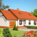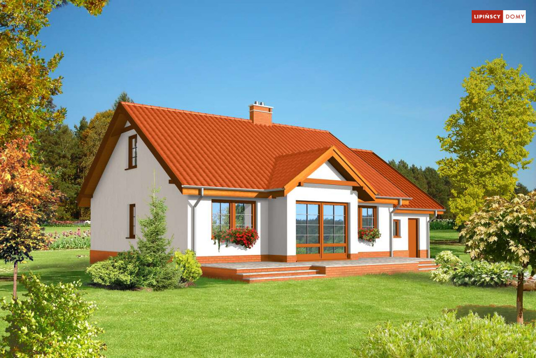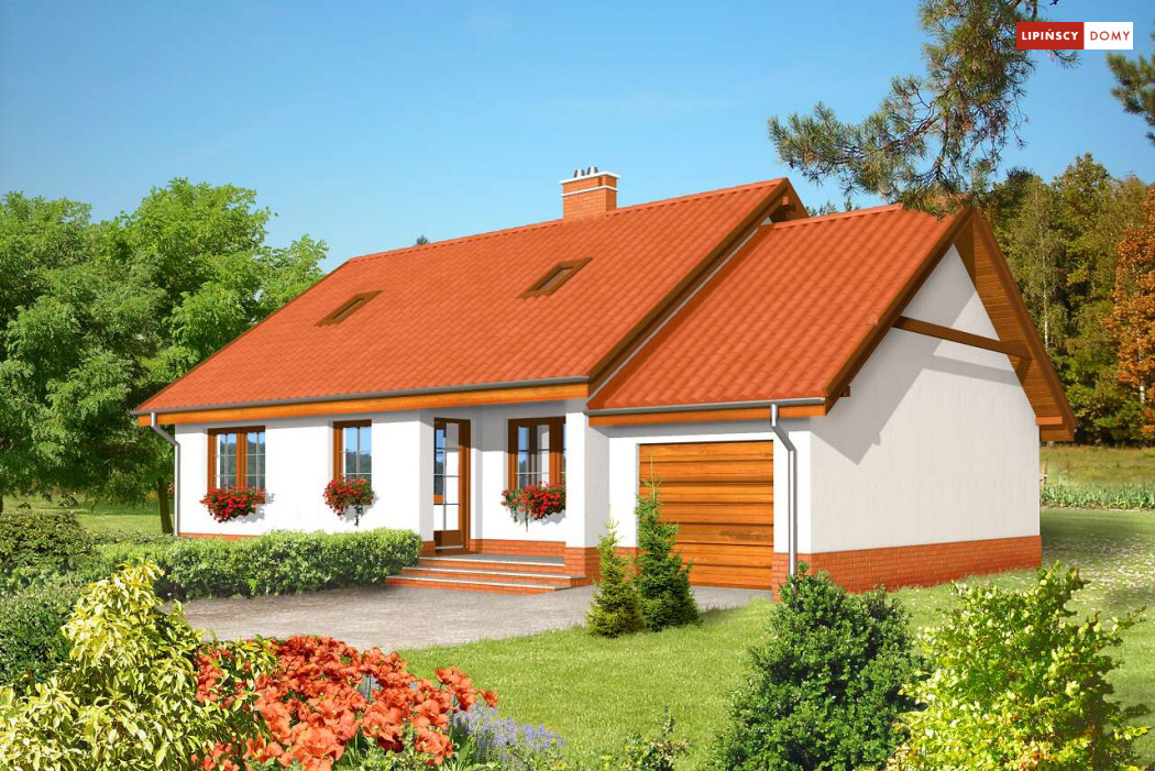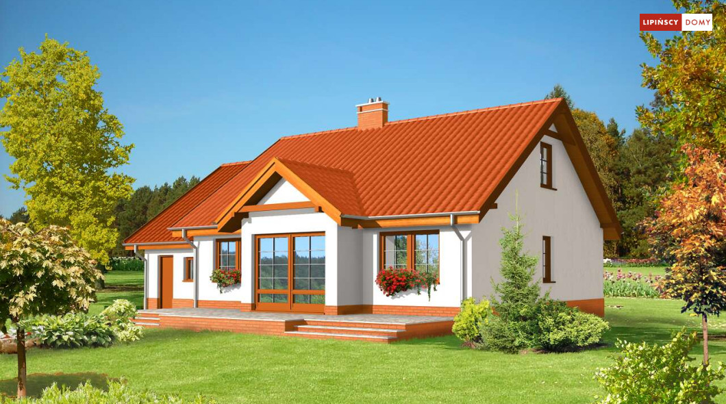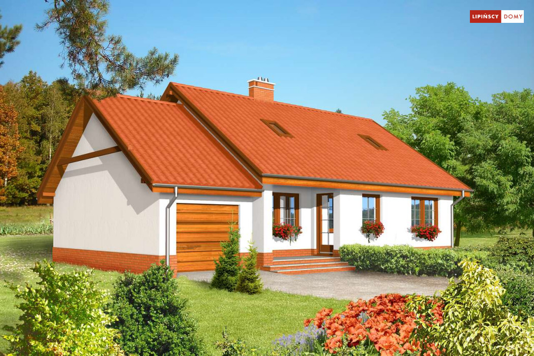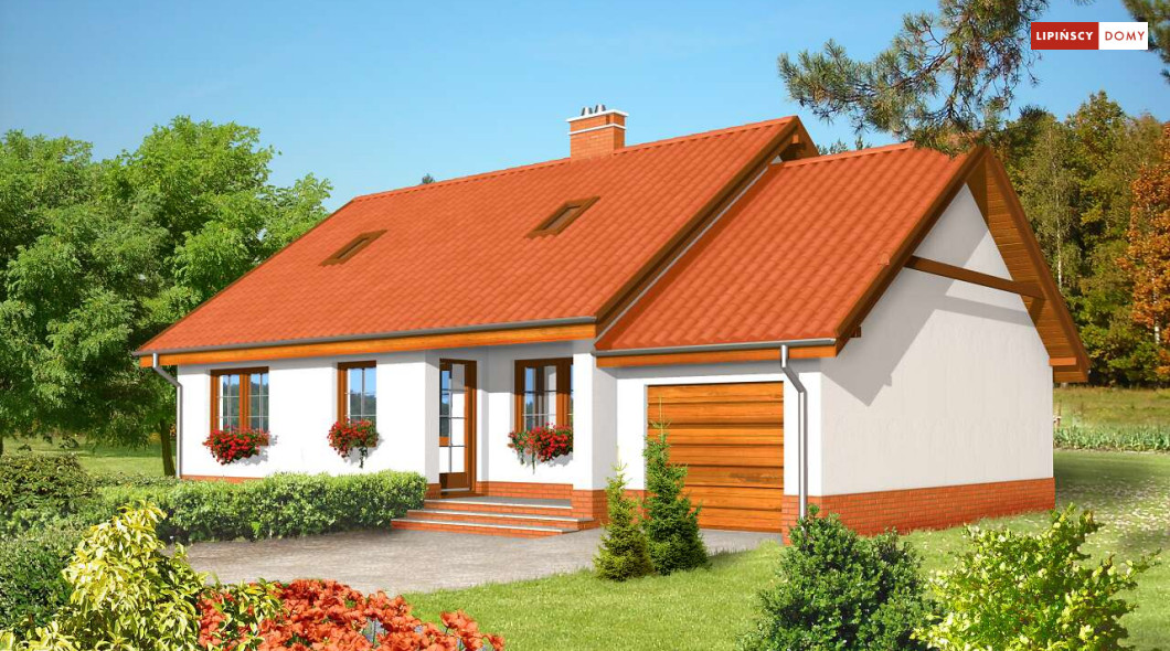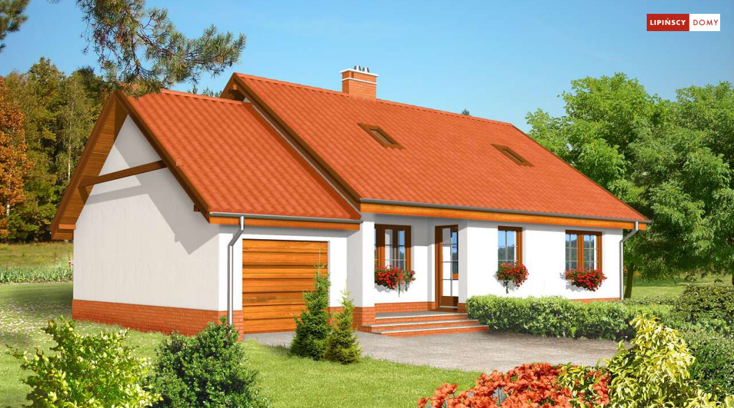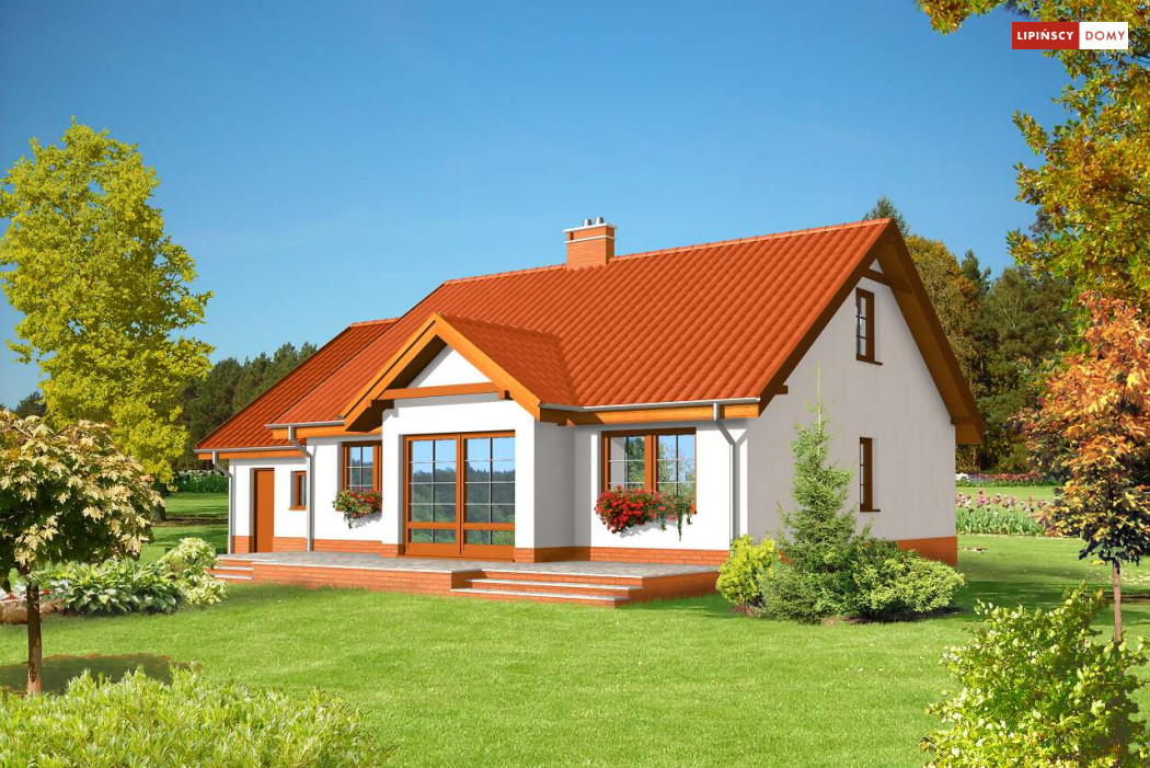 Mały domek może być zaskakująco przestronny. Doskonałym przykładem jest projekt domu Frankfurt IV, w którym dla przyszłych mieszkańców zaprojektowaliśmy dwie wygodne sypialnie, umiejscowione wraz z łazienką nieco na uboczu, a także wyjątkowo duży salon z kominkiem. W tak przestronnym salonie znajdzie się miejsce zarówno dla wygodnych sof przy kominku, jak i jadalni. Z salonu można przejść poprzez duże drzwi balkonowe do ogrodu. Istnieje także możliwość ewentualnego wykorzystania poddasza. Kotłownia została całkowicie wydzielona z części mieszkalnej, ma za to wyjście do ogrodu, a stryszek nad garażem można wykorzystać, jako praktyczny schowek. Ze względu na prostą bryłę jest to dom tani w budowie.