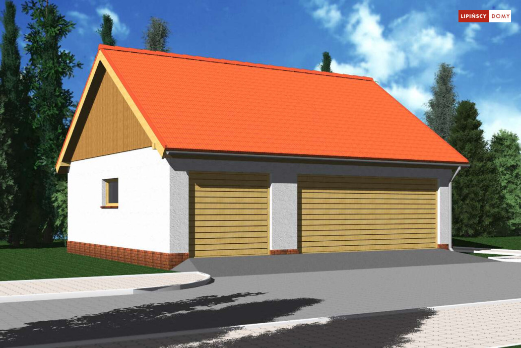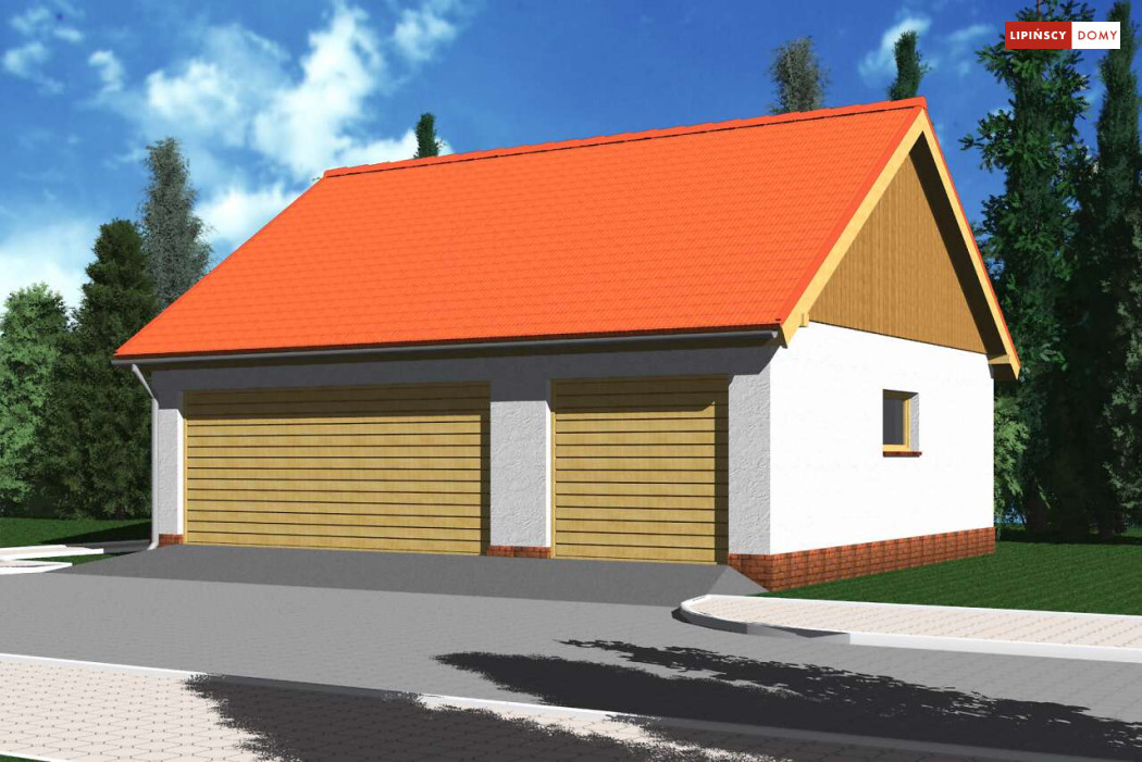 Garaż wolnostojący, trójstanowiskowy z pomieszczeniem gospodarczym.