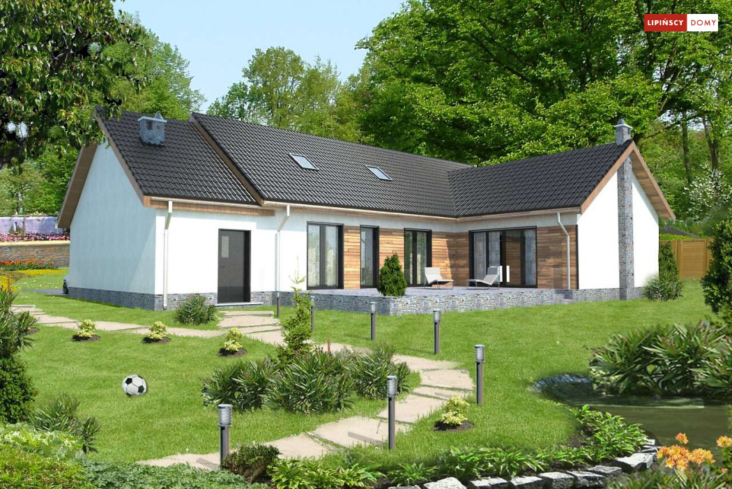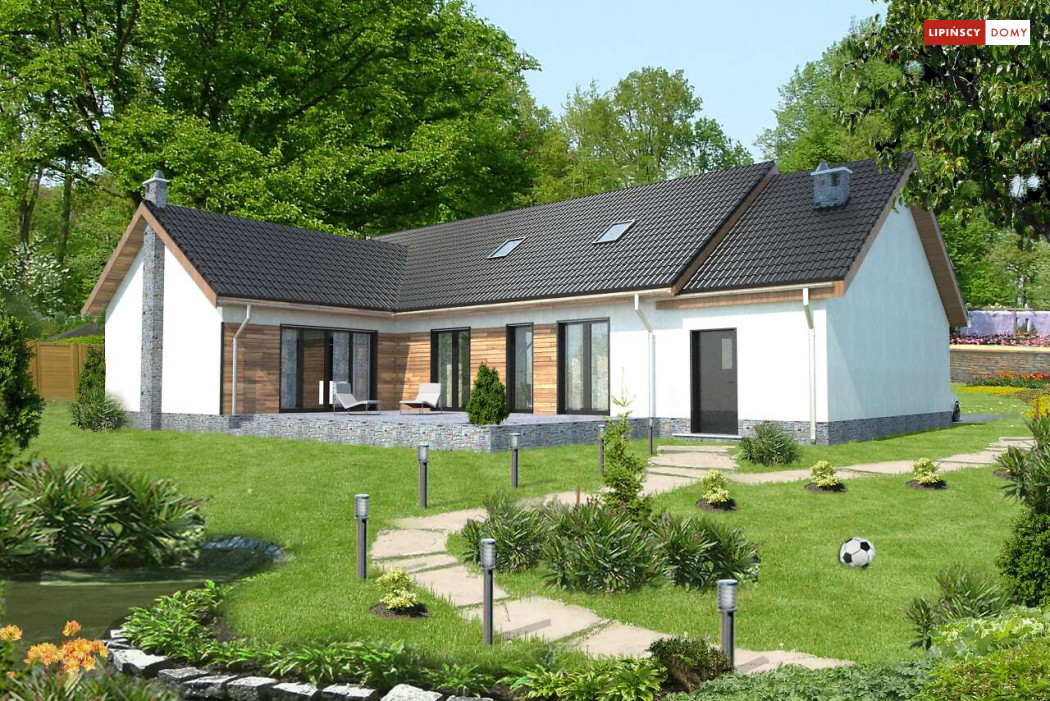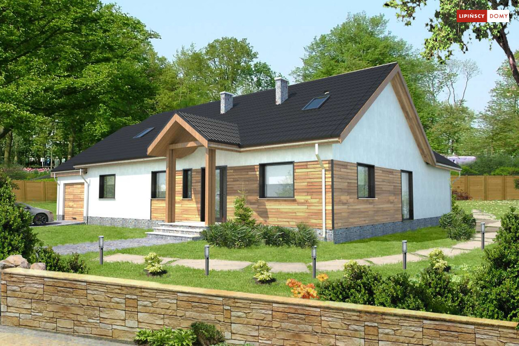 Projekt ten, dzięki logicznemu i funkcjonalnemu rozplanowaniu przestrzeni, jest doskonałą propozycją, jeśli szukamy prostego w realizacji, ale niebanalnego domu parterowego dla czteroosobowej rodziny. Duża część wspólna, do której należy przepiękny salon z wyjściem na duży taras, jadalnią oraz otwartą kuchnią, pozwala domownikom na wspólne spędzanie czasu. Część prywatna, którą obejmują trzy sypialnie oraz łazienka i pralnia pozwala zachować każdemu z mieszkańców niezbędną prywatność. Za garażem wydzielono kotłownię z możliwością zastosowania pieca na paliwo stałe, z osobnym wejściem od strony ogrodu.