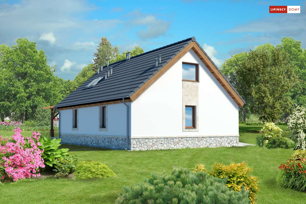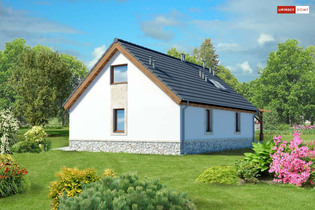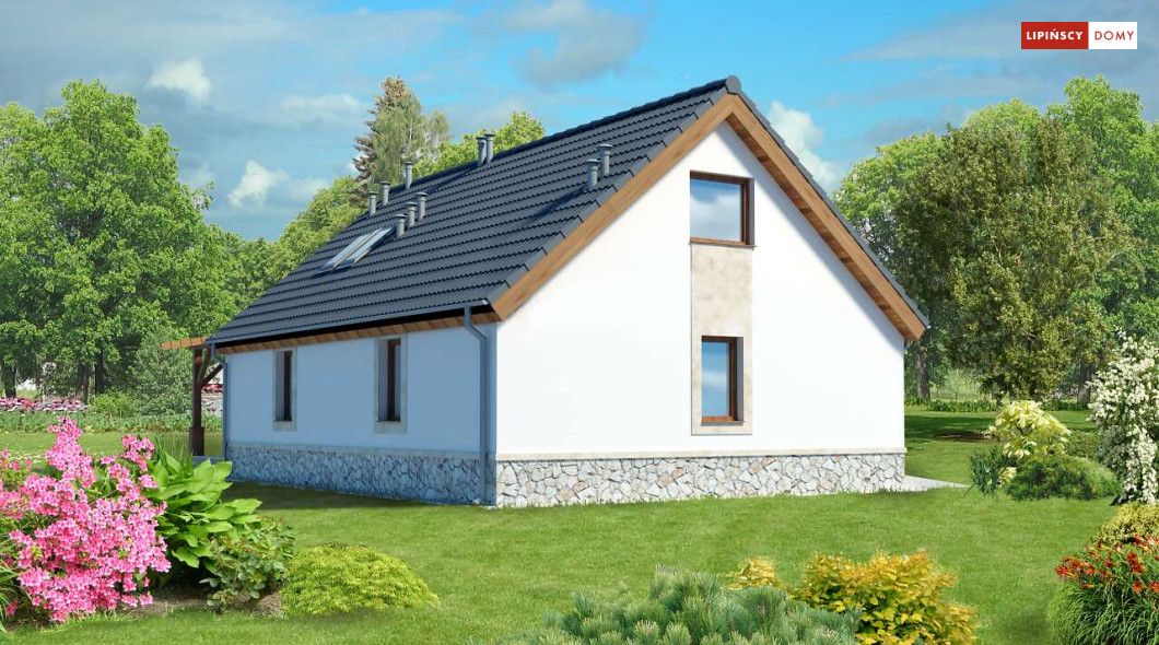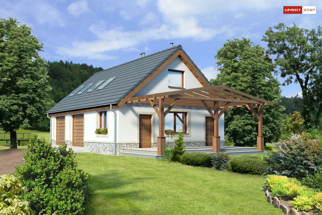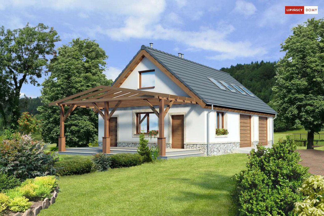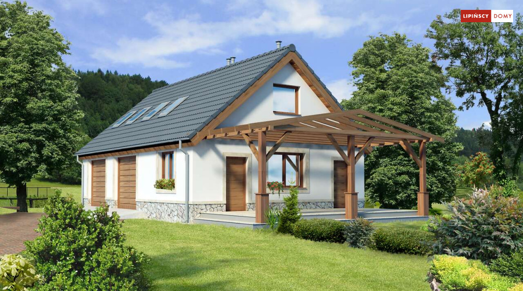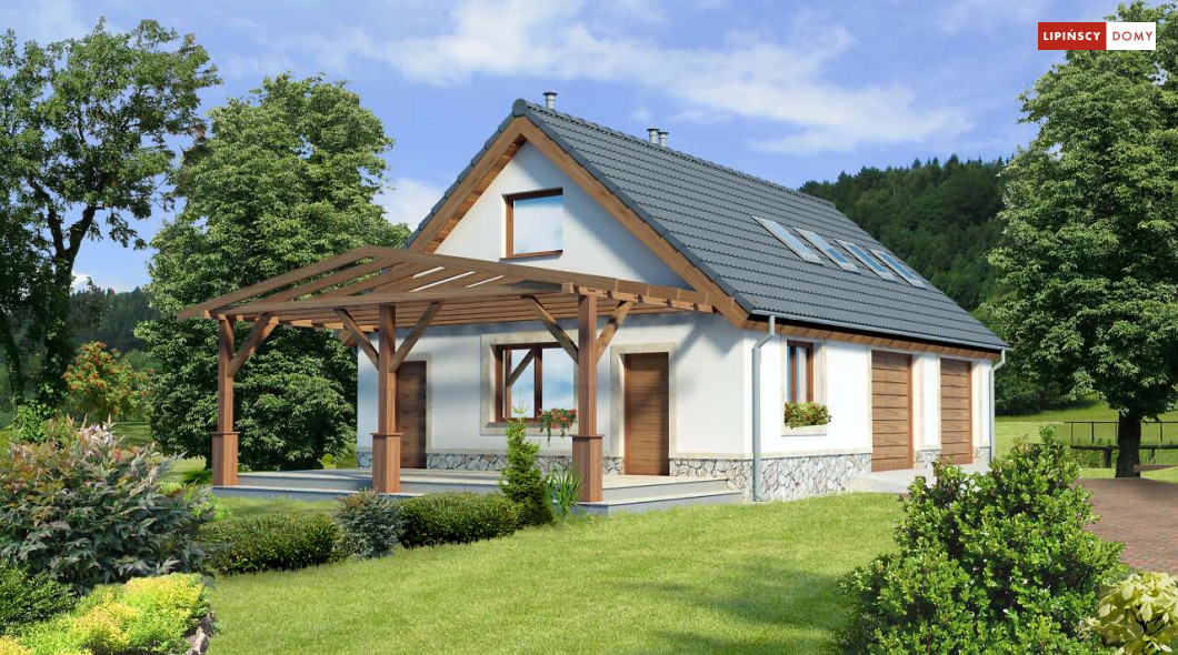 Garaż wolnostojący, dwustanowiskowy z częścią mieszkalną, pomieszczeniem gospodarczym i wiatą oraz zagospodarowanym poddaszem.<br>