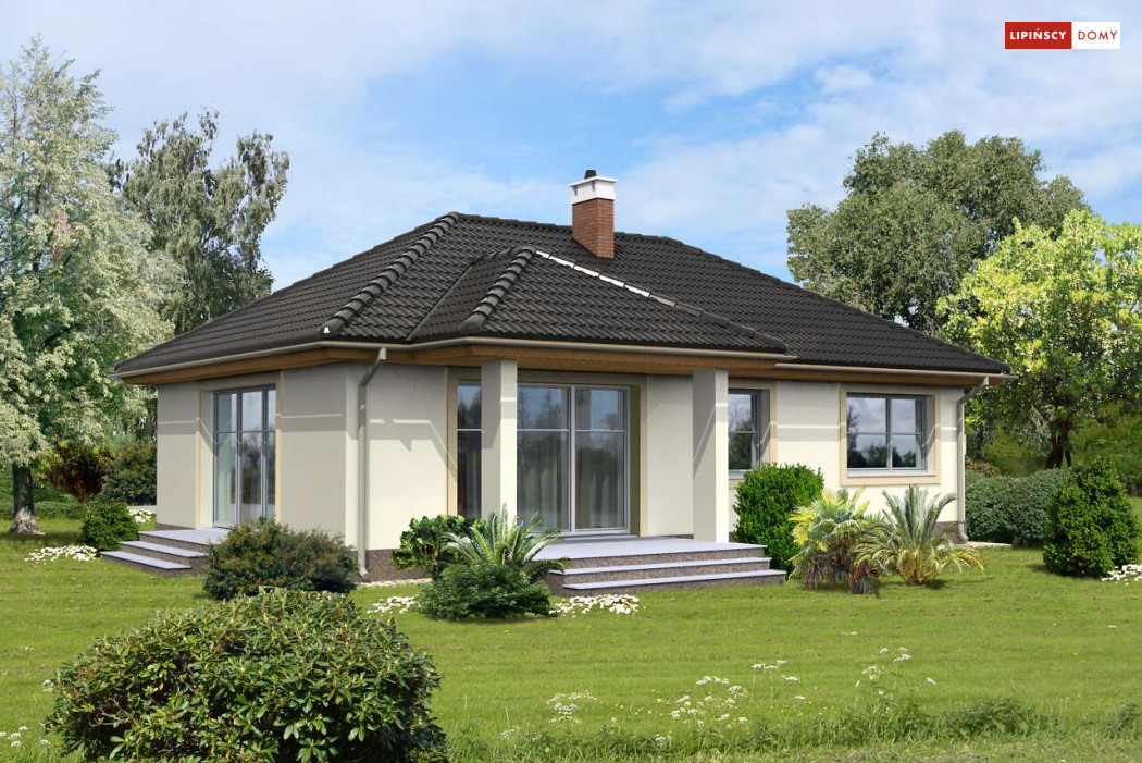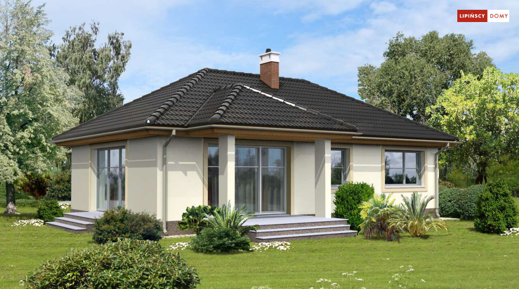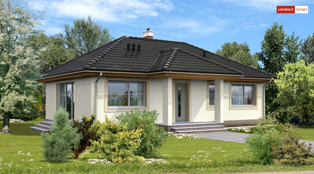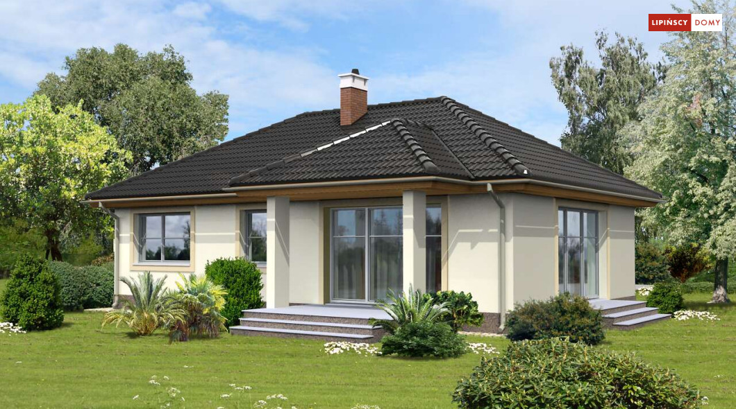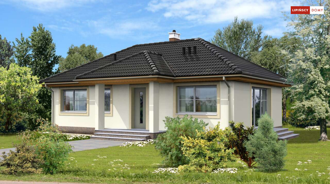 Mały dom parterowy, w którym wygodnie zamieszka niewielka rodzina. Otwarcie kuchni na salon dodało wnętrzu przestrzenności. Oprócz tych pomieszczeń, na parterze znalazło się także miejsce na dwie wygodne sypialnie, dużą łazienkę, pomieszczenie gospodarcze oraz pomieszczenie c.o. Dzięki dużym oknom w salonie, dom jest dobrze doświetlony. Z salonu można wyjść na taras, gdzie w pogodne dni miło jest wypić poranną kawę, mając ogród na wyciągnięcie ręki.