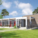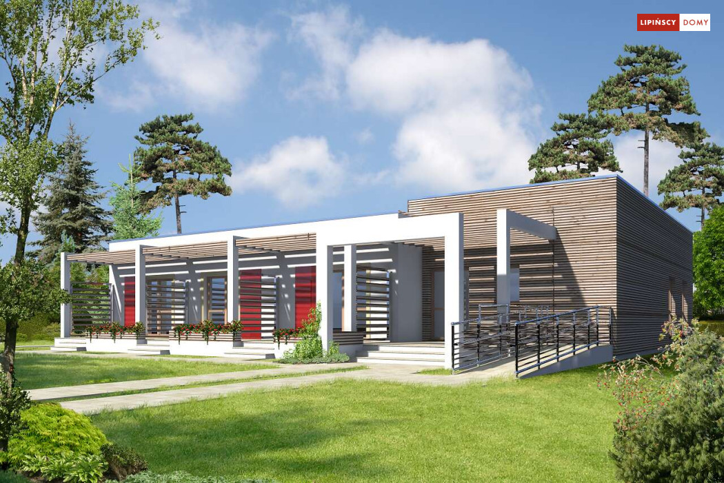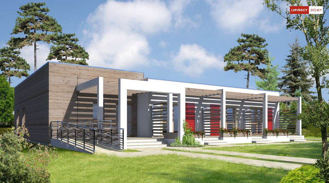 Budynek mieszkalny jednorodzinny z pokojami na wynajem, możliwy do wykorzystania jako obiekt agroturystyczny na terenach do tego przeznaczonych. Prosty w konstrukcji, a jednocześnie nie pozbawiony uroku projekt parterowego energooszczędnego budynku. Nowoczesna bryła ocieplona została drewnianymi elementami i ciekawymi podcieniami. Wnętrze kryje sześć pokoi, każdy z łazienką. Z pokoju mieszkańcy mogą wyjść na zewnątrz przez oszklone drzwi tarasowe. Goście mogą skorzystać z ogólnodostępnej jadalni, przy której przewidziano półotwartą, wygodną kuchnię, gdzie można samodzielnie przygotować posiłki. Są tu także dwie toalety, pomieszczenie gospodarcze z kotłem grzewczym oraz pokój, który może pełnić funkcje administracyjne.