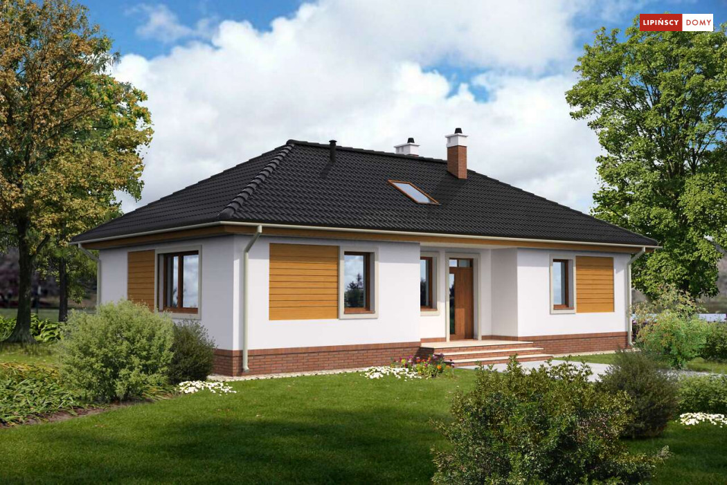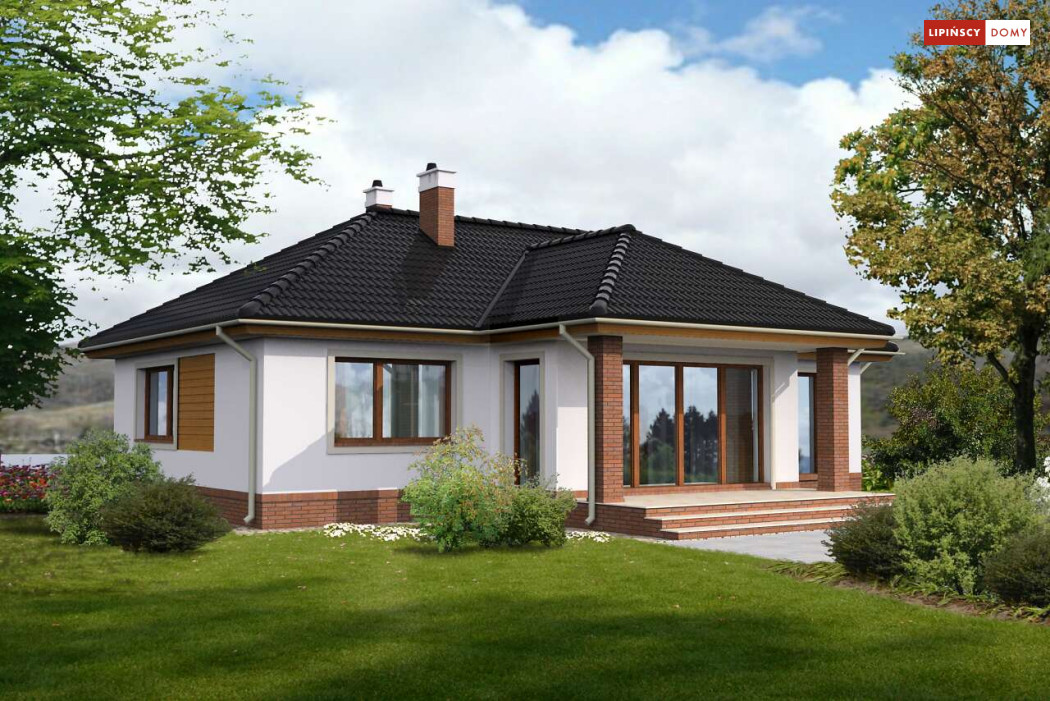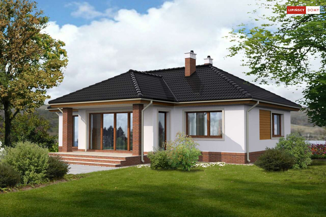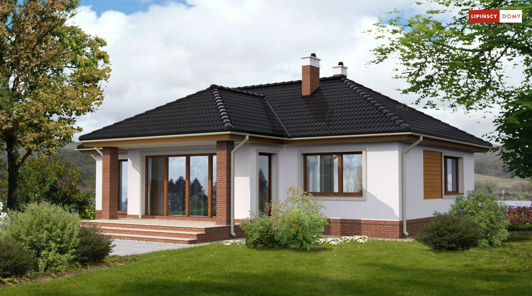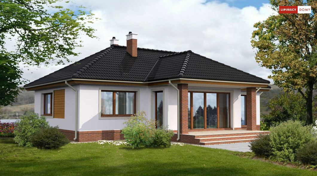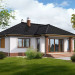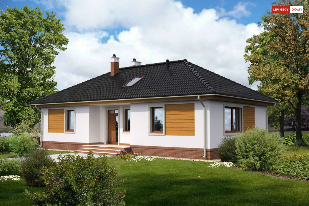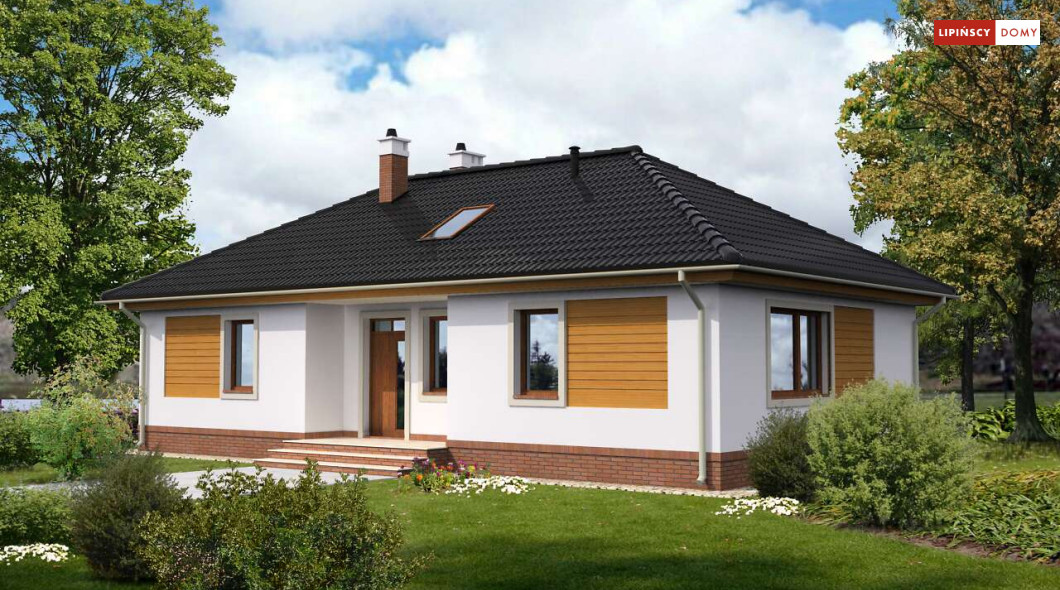 Ładny dom parterowy, wygodny dla niewielkiej rodziny. Funkcjonalnie rozplanowane wnętrze kryje wygodną, zamkniętą kuchnię, salon z kominkiem, trzy sypialnie, łazienkę i pomieszczenie gospodarcze, w którym zlokalizowano kocioł gazowy. W wiatrołapie przewidziano miejsce na wygodne szafy, które pomieszczą nie tylko wierzchnie okrycia. Może ono służyć także z powodzeniem jako pralnia. Duże przeszklone drzwi prowadzą z salonu na częściowo zadaszony taras. Prostą, elegancką bryłę zdobią drewniane elementy elewacji.