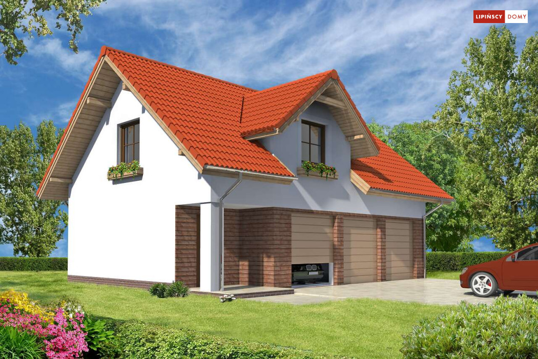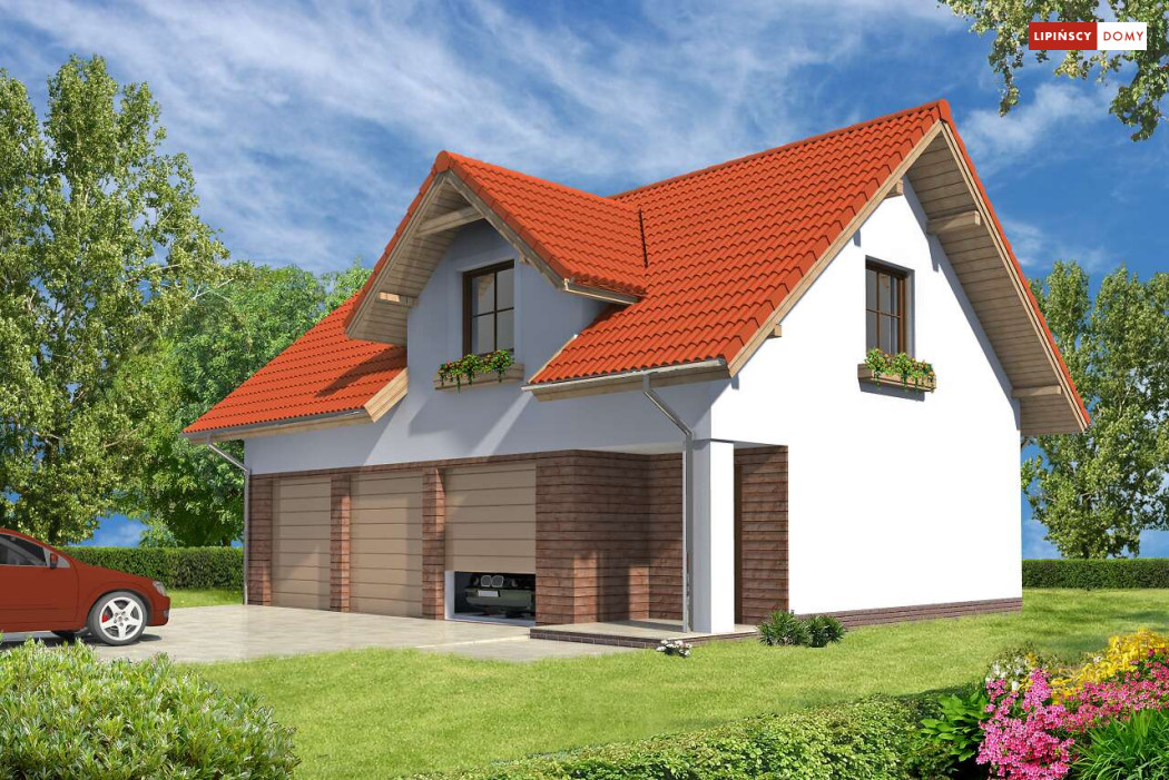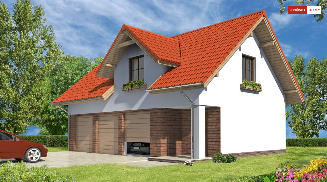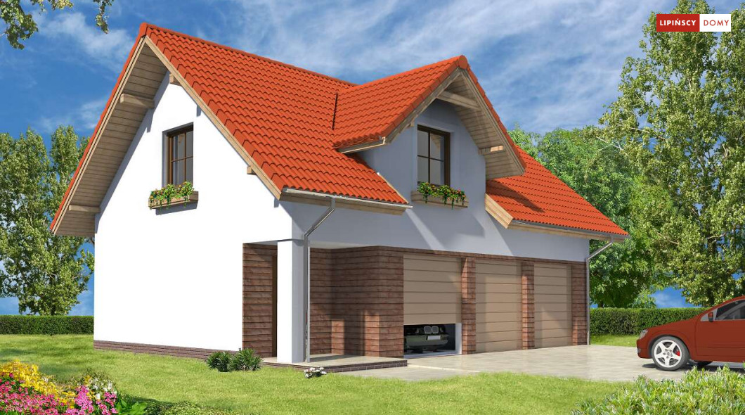 Ciekawa propozycja budynku garażowego na trzy stanowiska, z wydzieloną częścią mieszkalną na poddaszu. W strefie tej znajduje się salon z garderobą i aneksem kuchennym, sypialnia z garderobą, łazienka i pomieszczenie gospodarcze. Przestrzeń tę, w razie potrzeby można zaadaptować jako pomieszczenia usługowe lub biurowe.