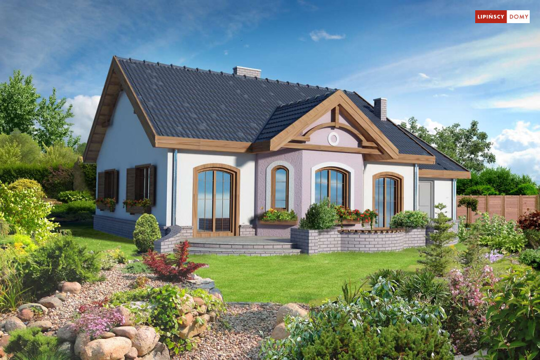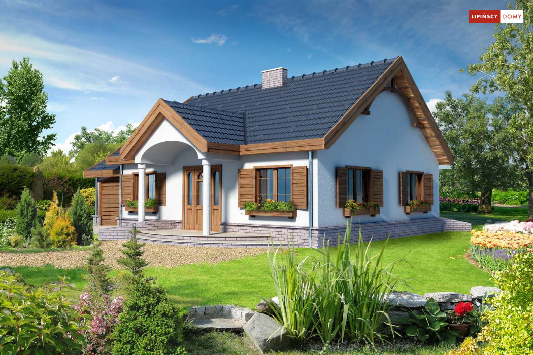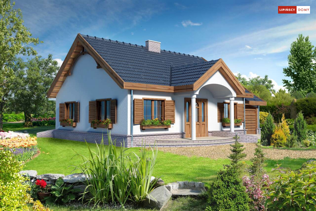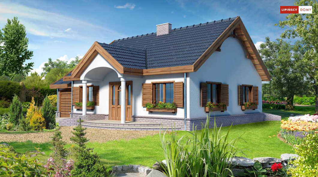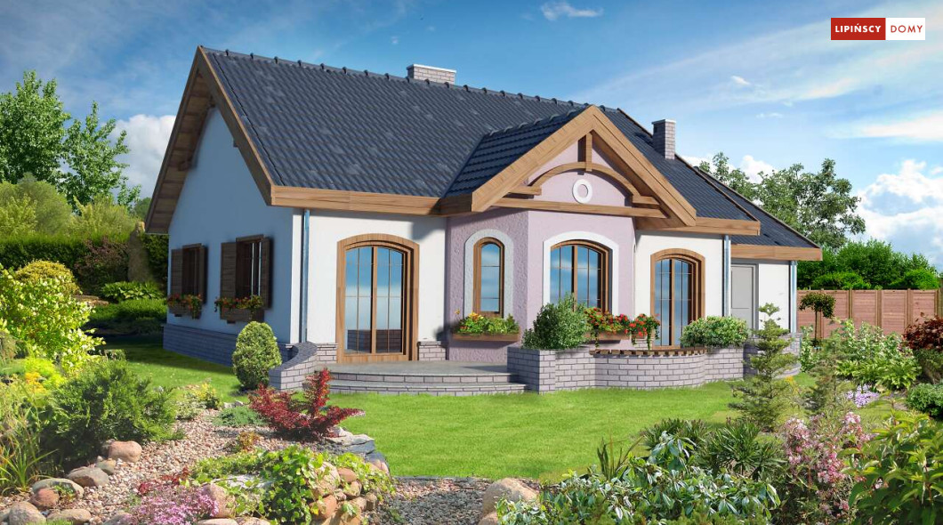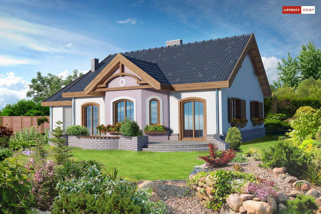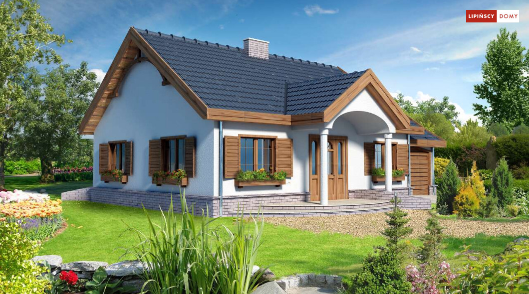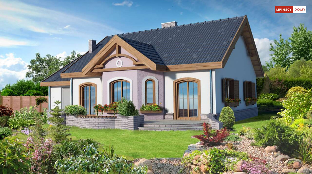 Jedna z wersji pięknego domu Sofia (LMB41), w której przeniesiono garaż od strony sypialni. Wszystkie pomieszczenia są rozplanowane w sposób funkcjonalny i logiczny, z myślą o wygodzie mieszkańców. Mają oni zatem do dyspozycji salon z miejscem na stół, dużą kuchnię, łazienkę i dwie sypialnie. Zaplanowano także jednostanowiskowy garaż, za którym umieszczono kotłownię. Bryła Sofii V zwraca uwagę piękną elewacją, z dekoracyjnym wykuszem od strony ogrodu, łukowatymi oknami i ciekawie zaprojektowanym wejściem.