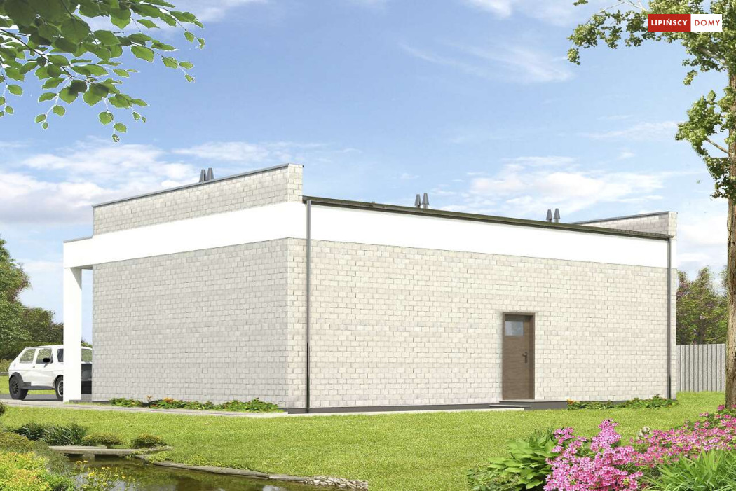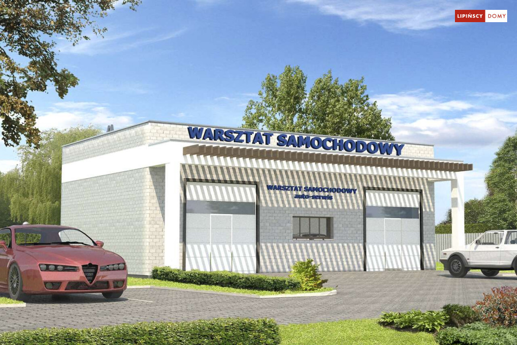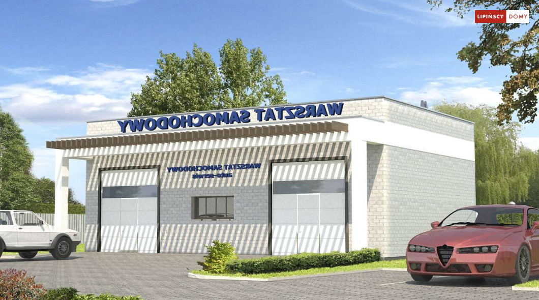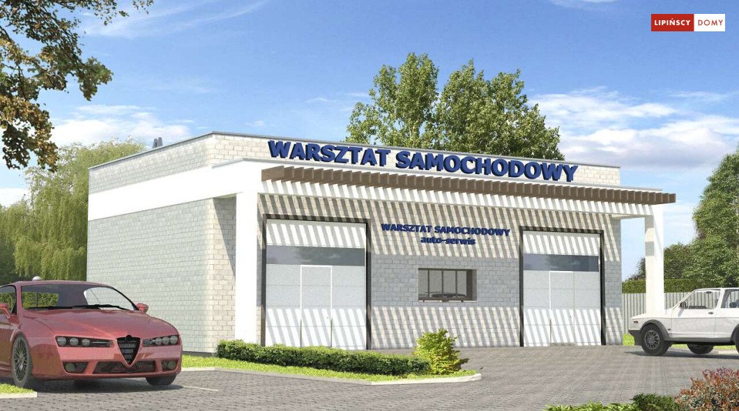 Budynek gospodarczy z przeznaczeniem na usługi. Można w nim zlokalizować np. warsztat samochodowy, gdzie oprócz stanowisk na dwa auta, przewidziano także zaplecze biurowe i socjalne. Prosta bryła budynku i funkcjonalne zagospodarowanie przestrzeni gwarantują niewysokie koszty budowy.<br>