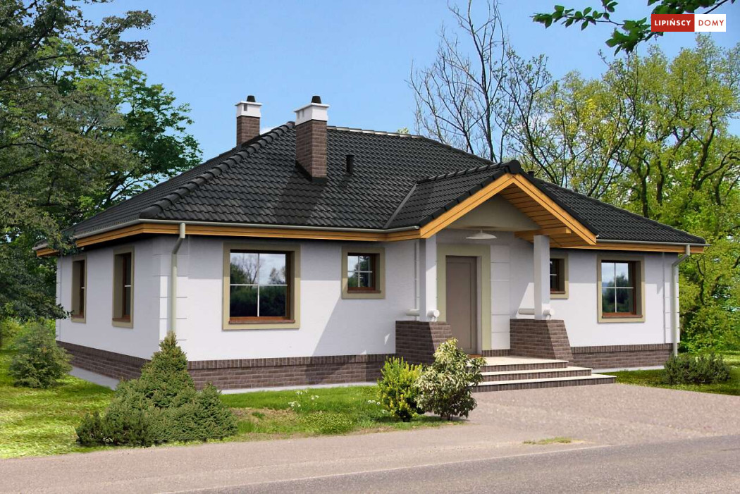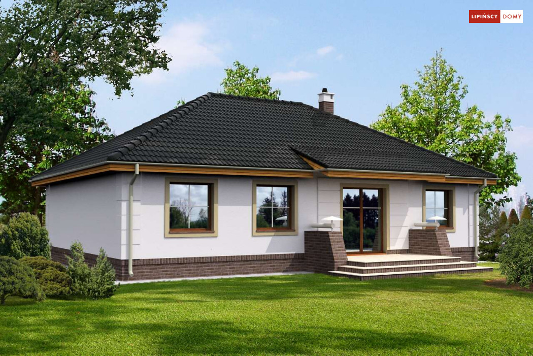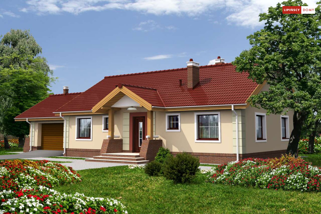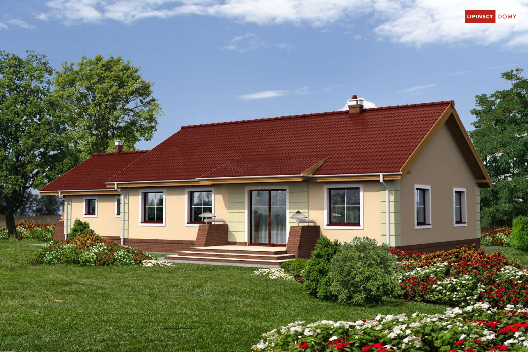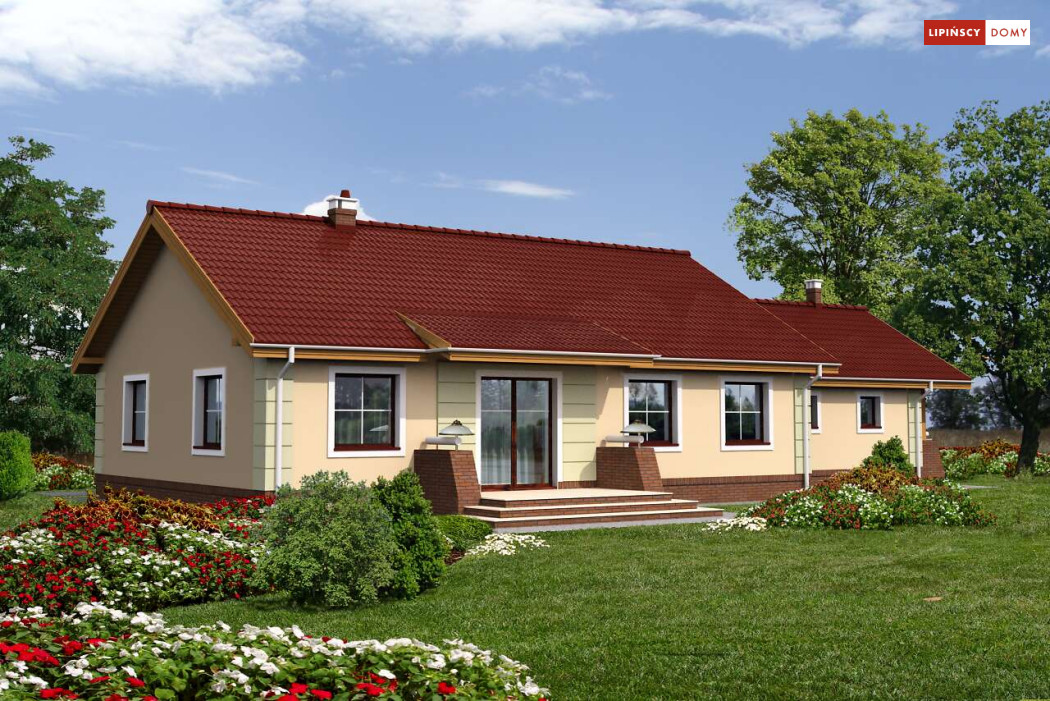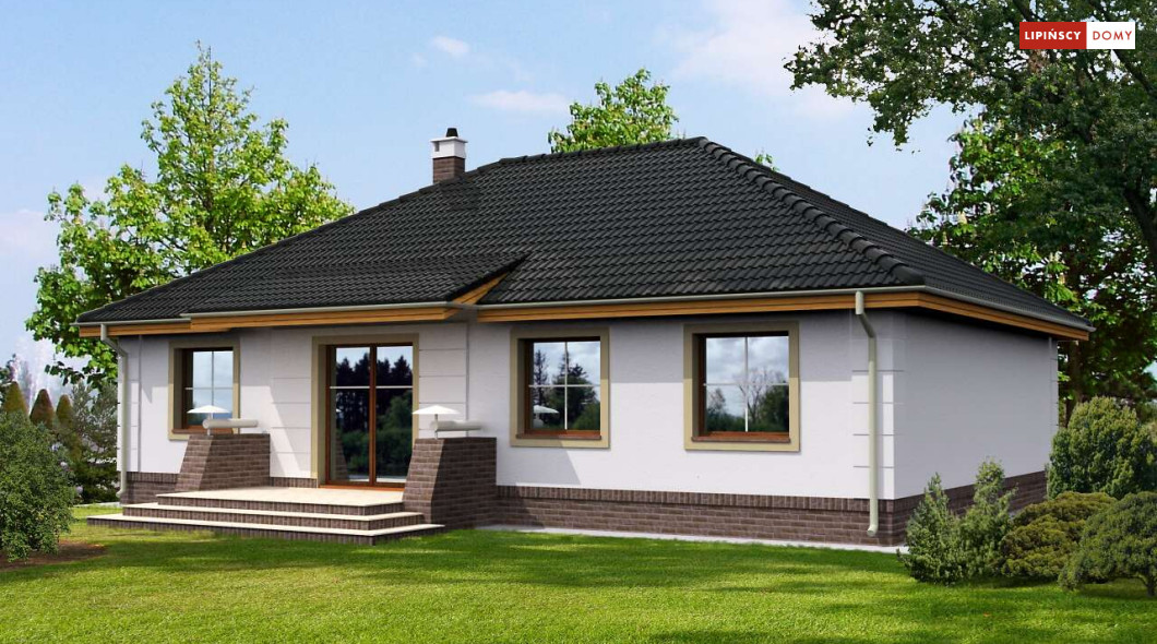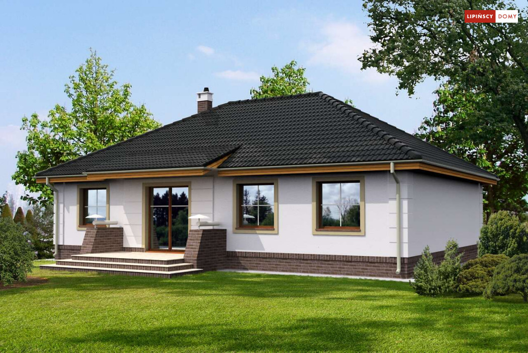 Wygodny dom parterowy, o prostej bryle i funkcjonalnym wnętrzu. Duża kuchnia, w której zmieści się rodzinny stół to spełnienie marzeń niejednej pani domu, a wygodnym salonem z kominkiem i wyjściem na taras zachwyceni będą wszyscy domownicy. Obok kuchni przewidziano podręczną spiżarnię, pomieszczenie gospodarcze z kotłem gazowym, i wc. W części nocnej domu są trzy sypialnie i wygodna, doświetlona łazienka. Do domu przynależy garaż na dwa auta, obok którego wygospodarowano zadaszone miejsce na np. drewno kominkowe. Prosta bryła domu została przekryta dwuspadowym dachem.