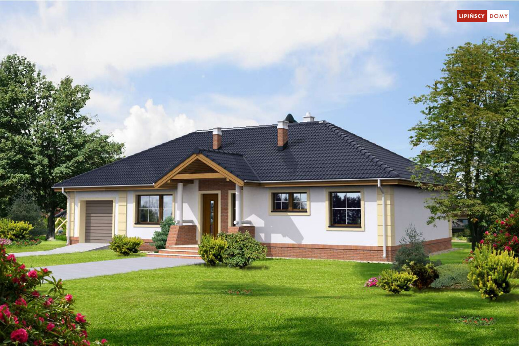 Wersja parterowego domu LMB 81 z wydzieloną kotłownią za garażem. Dzięki takiemu usytuowaniu kotłowni może być ona zaadaptowana jako kotłownia z piecem na paliwo stałe. Wnętrze domu podzielono na obszerny salon z kominkiem, kuchnię ze spiżarnią, pomieszczenie gospodarcze, dużą łazienka, wc i dwie sypialnie. Od strony elewacji ogrodowej zlokalizowano zadaszony taras, który, dzięki dużym przeszkleniom w salonie, stanowi niemal część pokoju.