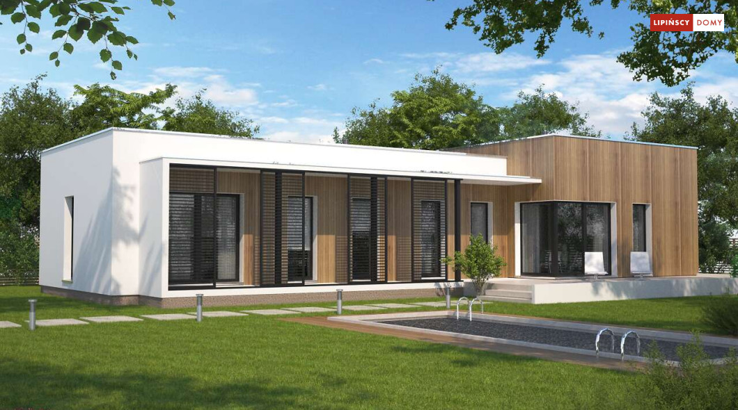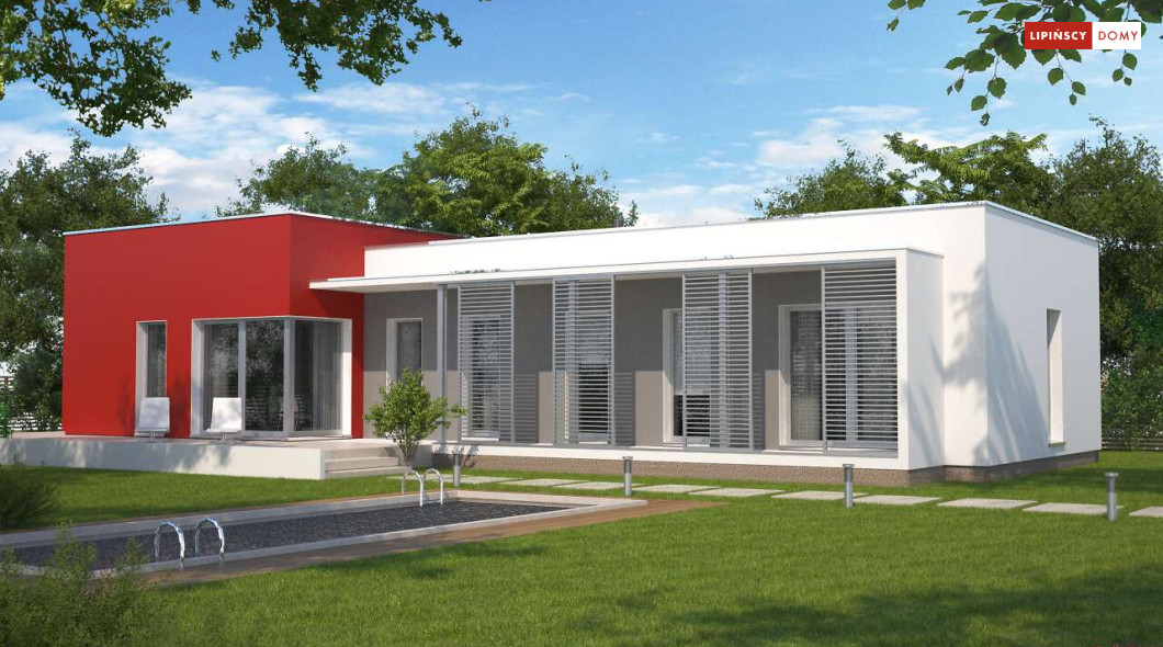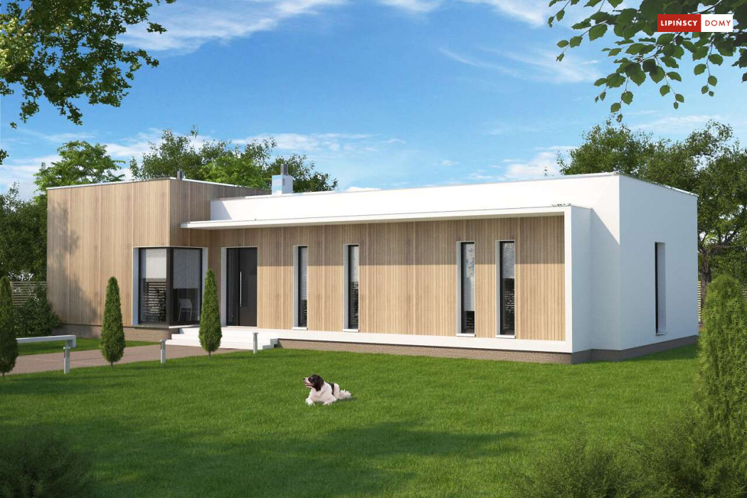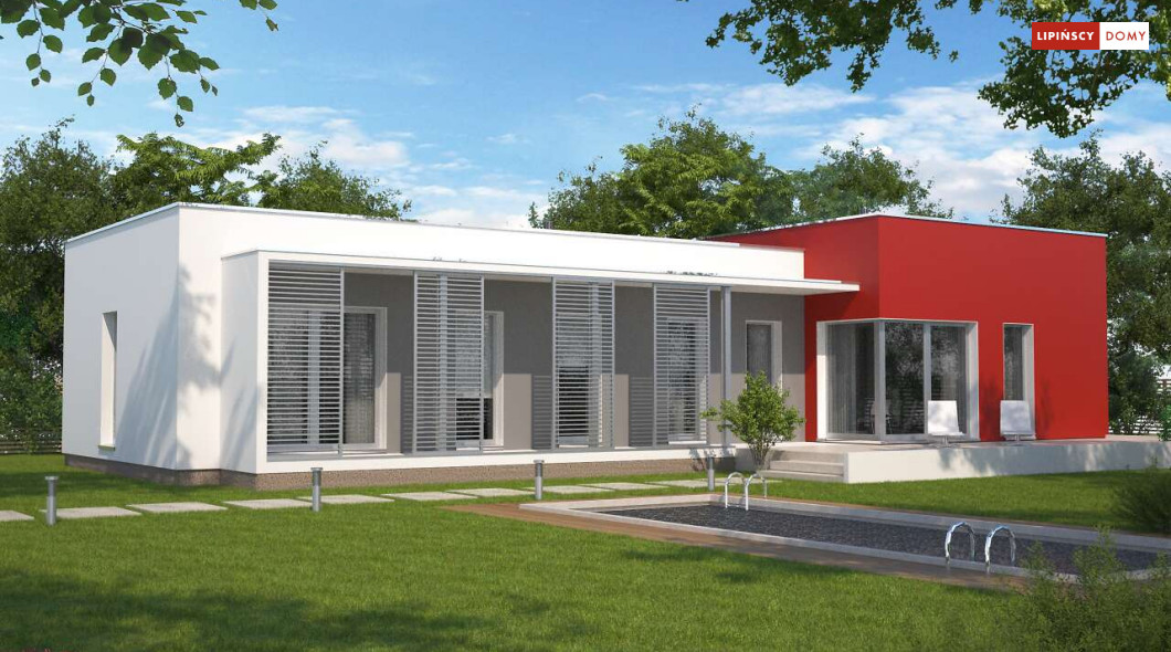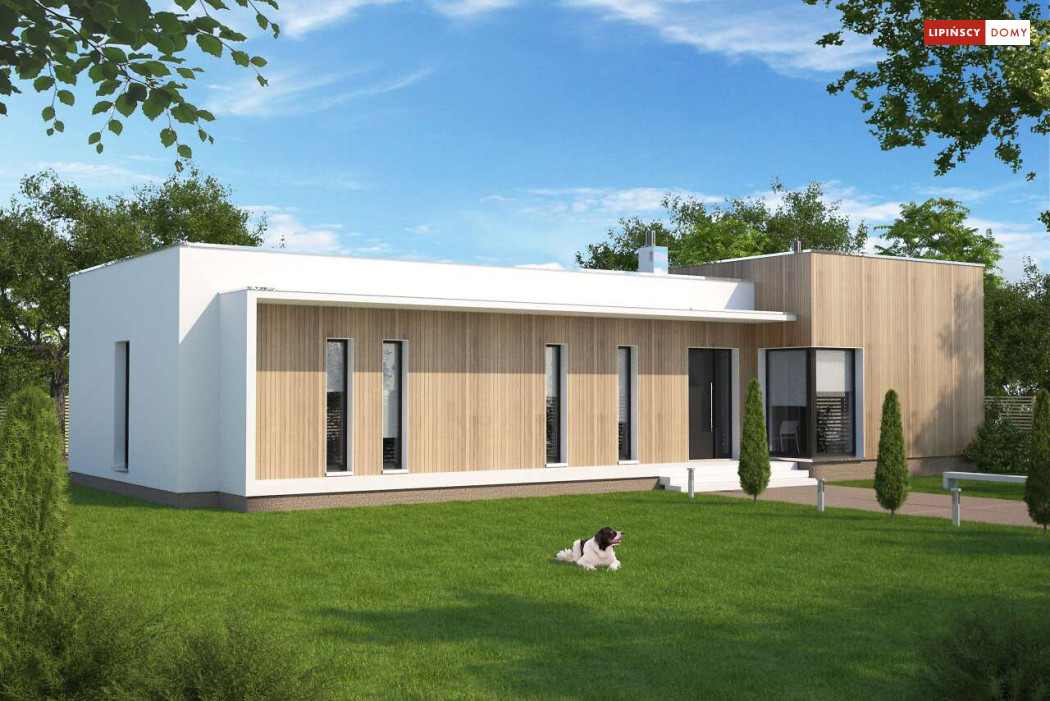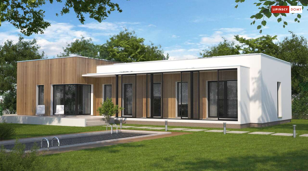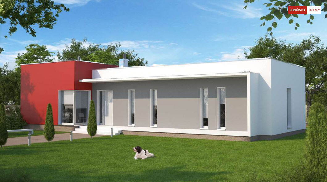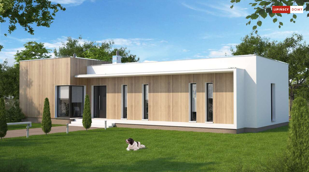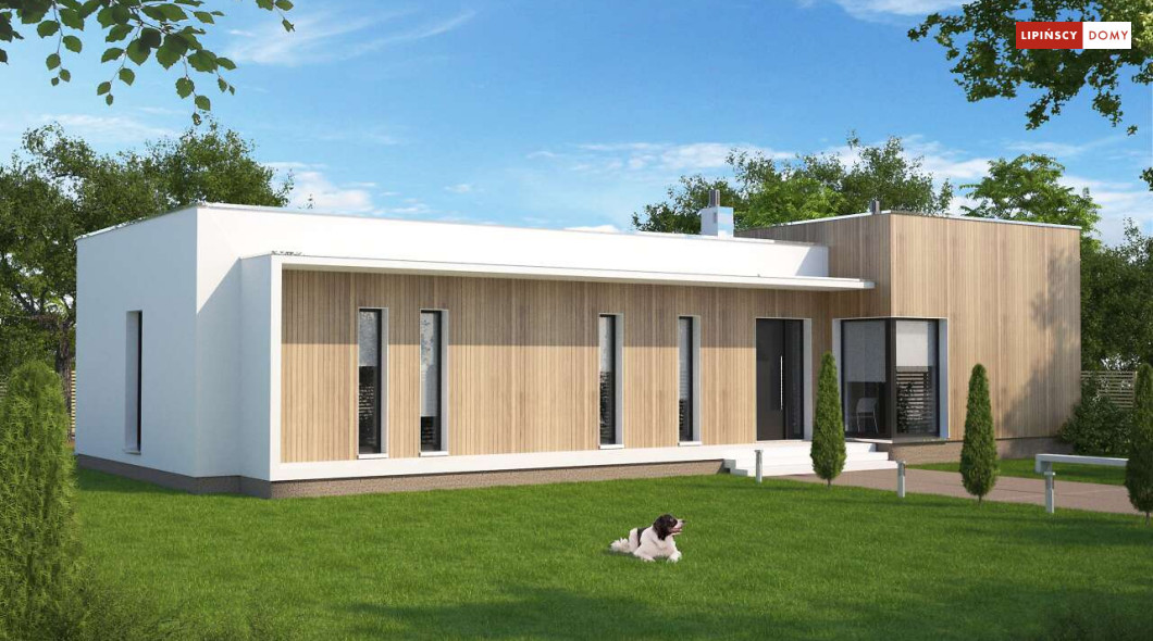 Nowoczesny dom parterowy, warty do rozważenia przez Inwestorów ceniących prostotę i wygodę. Na powierzchni ponad 112m² zaprojektowano duży salon z kominkiem i wyjściem do ogrodu, funkcjonalną kuchnię, obok której mieści się spiżarnia, trzy sypialnie, w tym jedną z niezależną garderobą i łazienką, wspólną łazienkę oraz pralnię. Duże przeszklenia są nie tylko bardzo dekoracyjne, ale przede wszystkim doskonale doświetlają wnętrze. Prostą bryłę domu zdobią drewniane żaluzje i duże okna.
