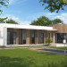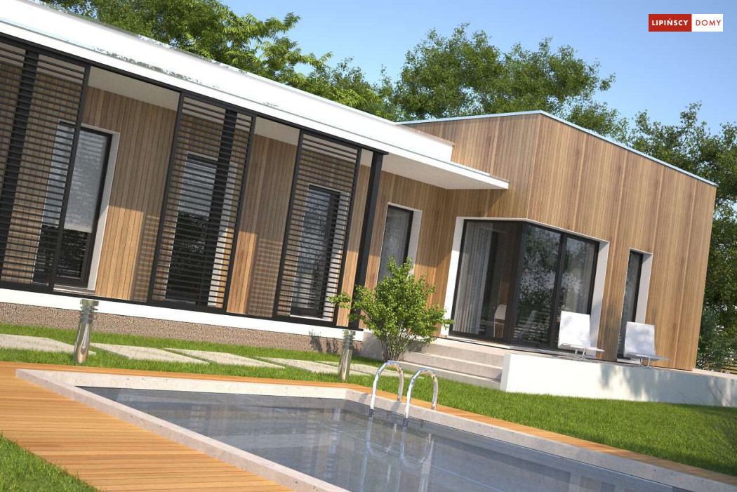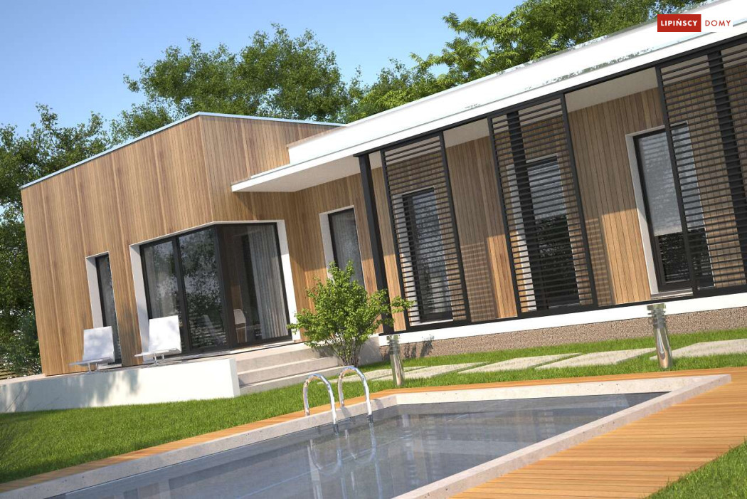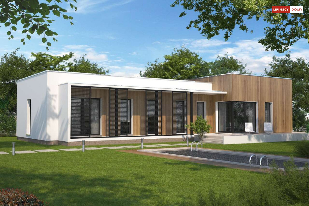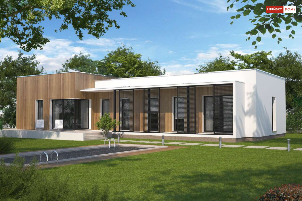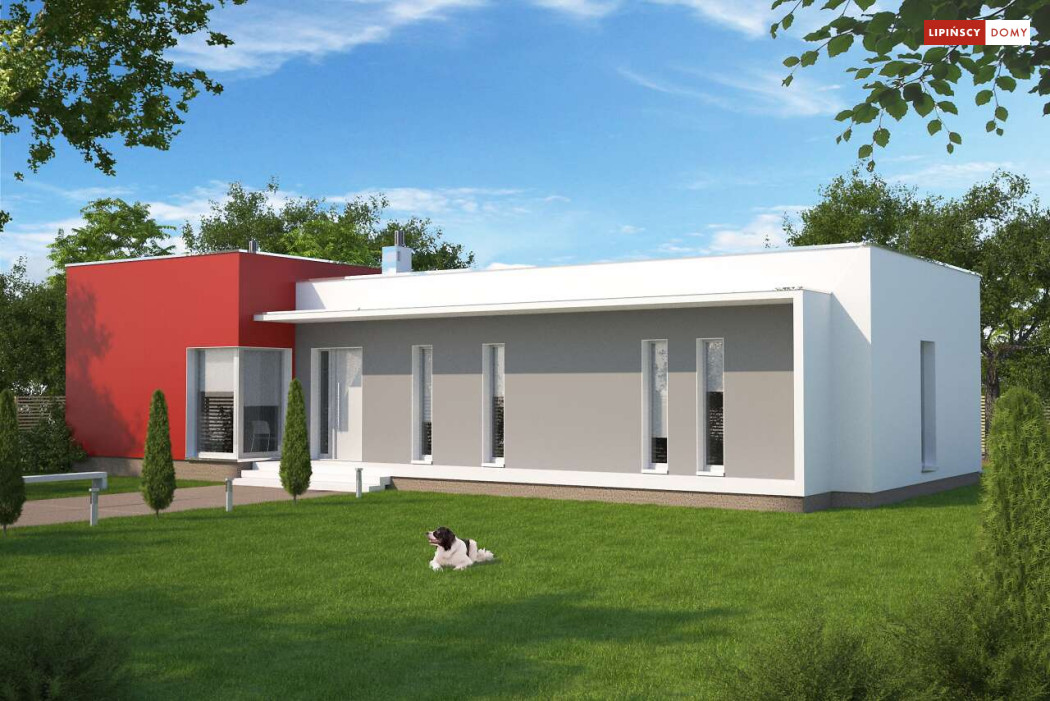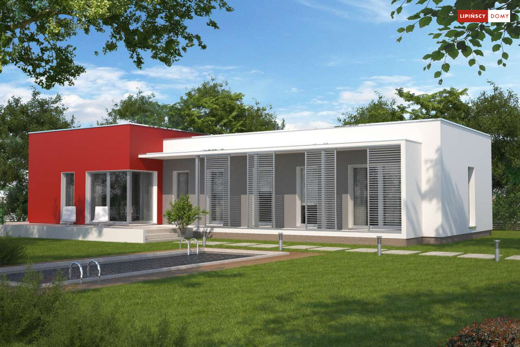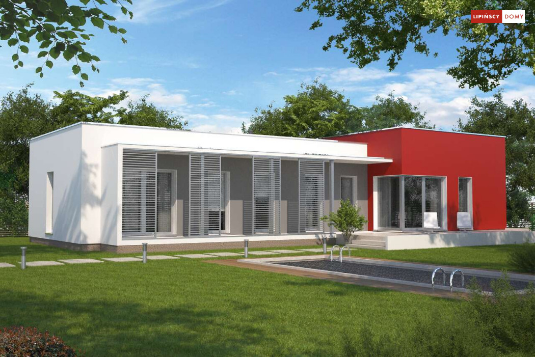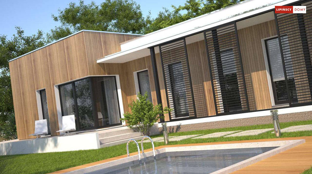 Nowoczesny dom parterowy, warty do rozważenia przez Inwestorów ceniących prostotę i wygodę. Na powierzchni ponad 112m² zaprojektowano duży salon z kominkiem i wyjściem do ogrodu, funkcjonalną kuchnię, obok której mieści się spiżarnia, trzy sypialnie, w tym jedną z niezależną garderobą i łazienką, wspólną łazienkę oraz pralnię. Duże przeszklenia są nie tylko bardzo dekoracyjne, ale przede wszystkim doskonale doświetlają wnętrze. Prostą bryłę domu zdobią drewniane żaluzje i duże okna.