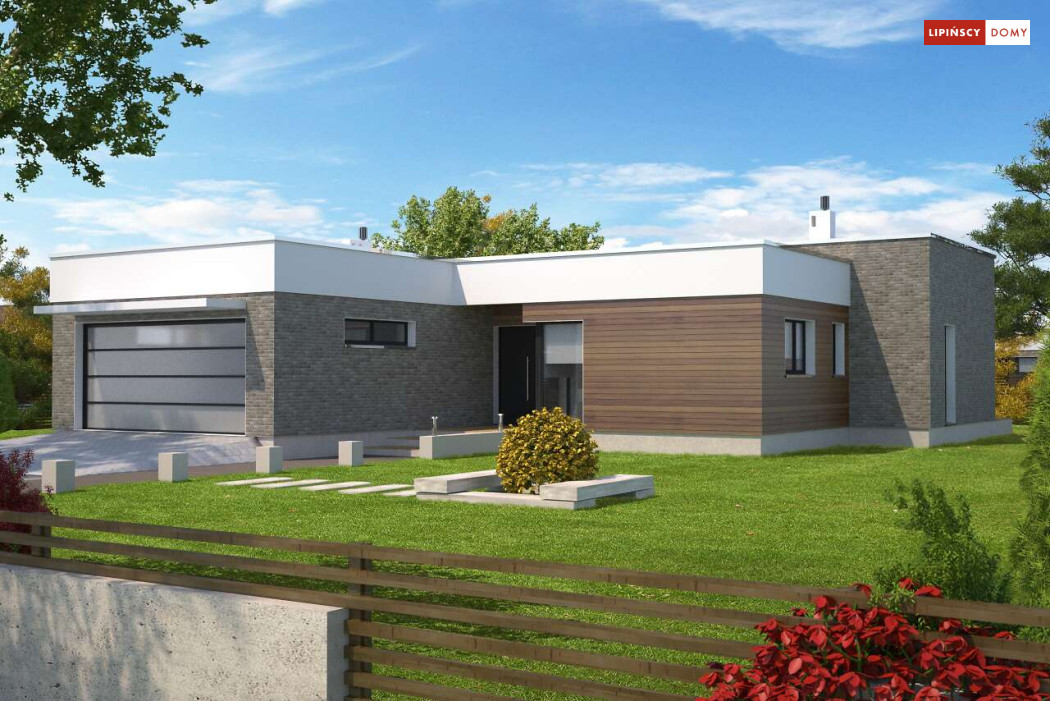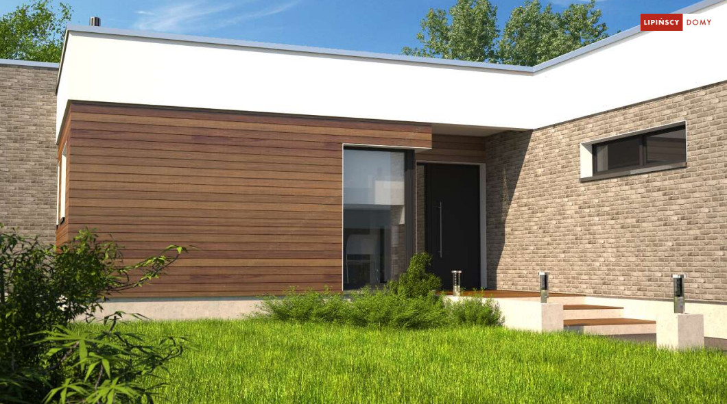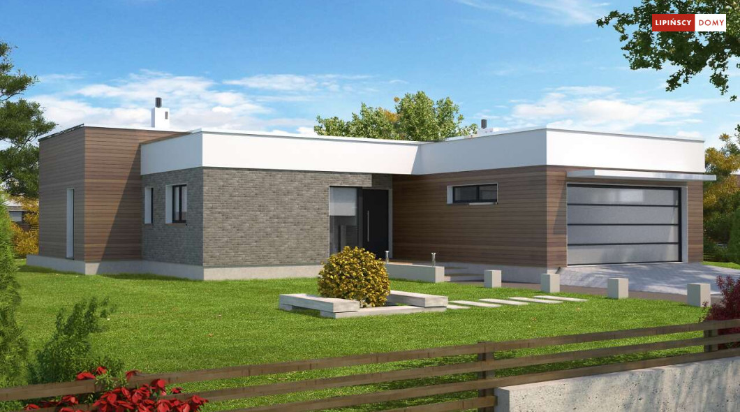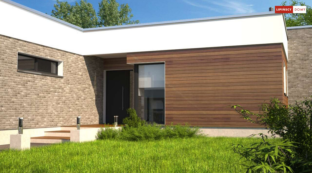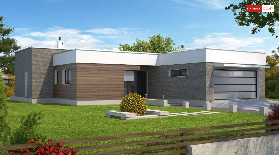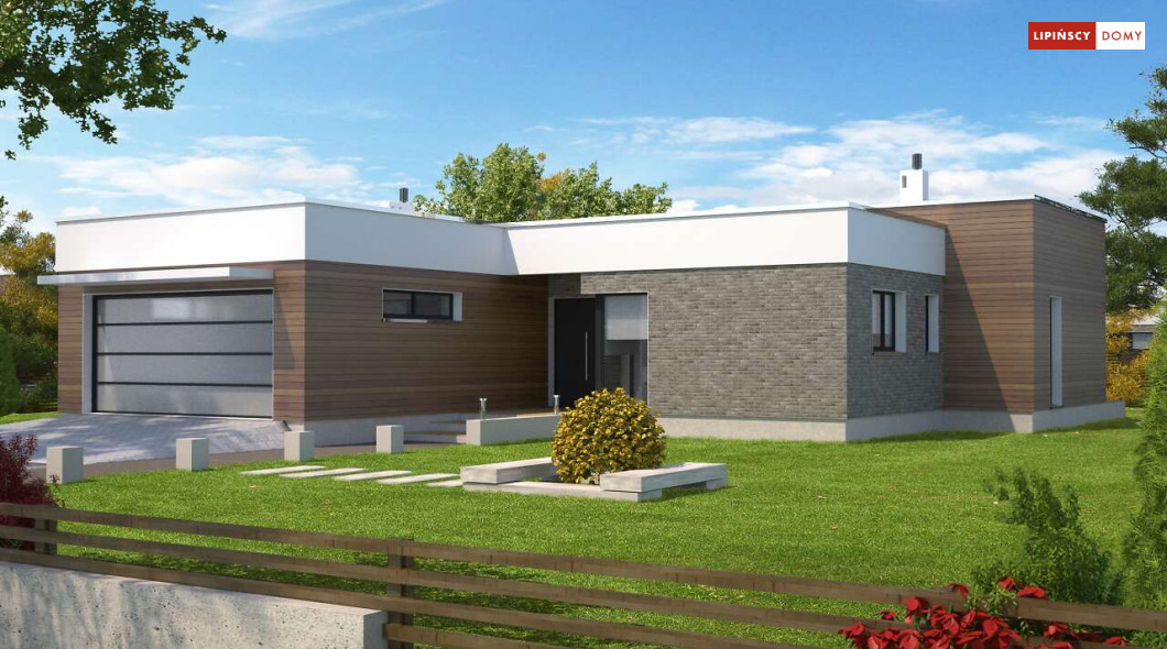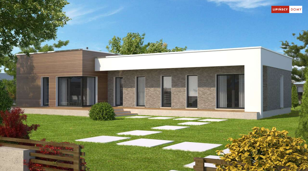 Wygodny, parterowy dom energooszczędny, o prostej, nowoczesnej bryle. Wnętrze kryje funkcjonalną kuchnię z miejscem na stół, obok kuchni zlokalizowano spiżarnię. Zaprojektowano także trzy sypialnie, w tym jedna z własną łazienką i garderobą oraz jedną wspólną, wygodną łazienkę, z wydzielonym miejscem na pralkę. Z przodu domu znajduje się garaż na dwa stanowiska, z pomieszczeniem gospodarczym oraz kotłownią. Dzięki takiej lokalizacji garażu, dom można wybudować na węższej działce, niż gdyby garaż dostawiono przy elewacji bocznej budynku.