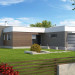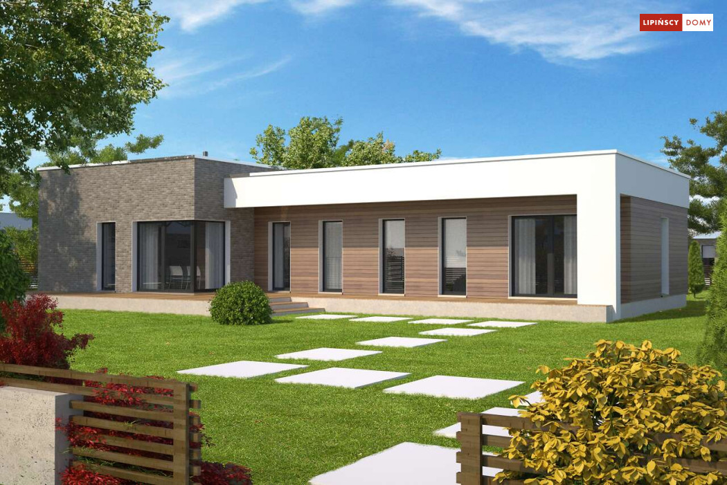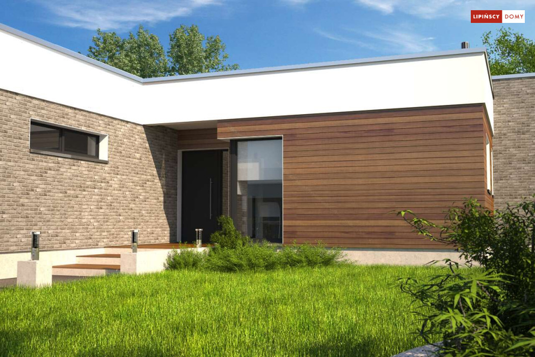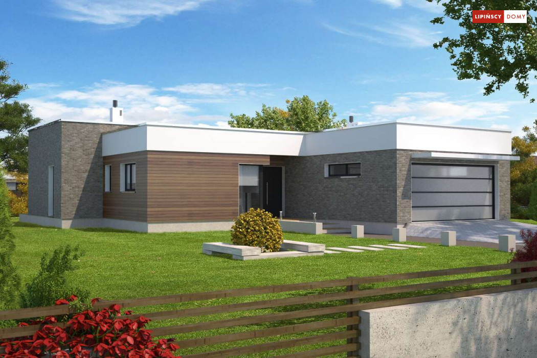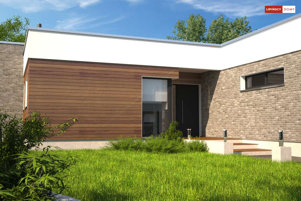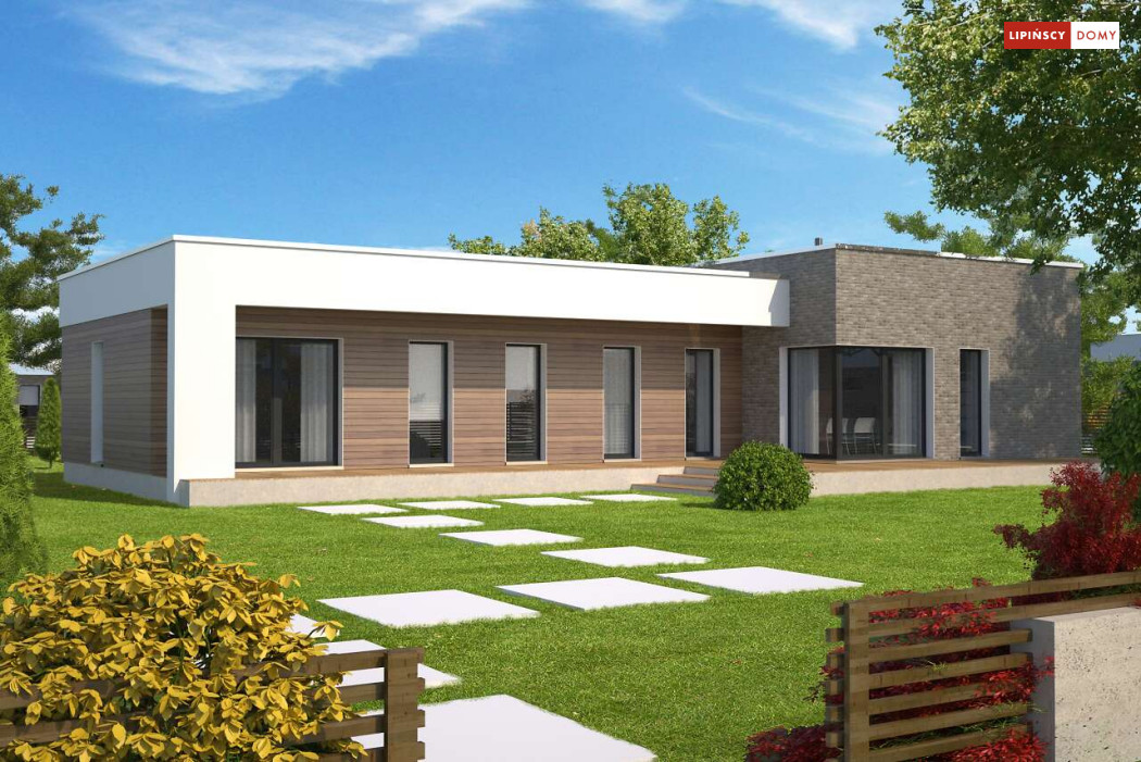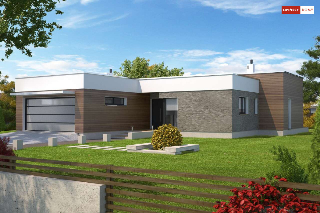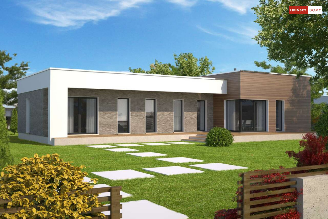 Wygodny, parterowy dom energooszczędny, o prostej, nowoczesnej bryle. Wnętrze kryje funkcjonalną kuchnię z miejscem na stół, obok kuchni zlokalizowano spiżarnię. Zaprojektowano także trzy sypialnie, w tym jedna z własną łazienką i garderobą oraz jedną wspólną, wygodną łazienkę, z wydzielonym miejscem na pralkę. Z przodu domu znajduje się garaż na dwa stanowiska, z pomieszczeniem gospodarczym oraz kotłownią. Dzięki takiej lokalizacji garażu, dom można wybudować na węższej działce, niż gdyby garaż dostawiono przy elewacji bocznej budynku.
