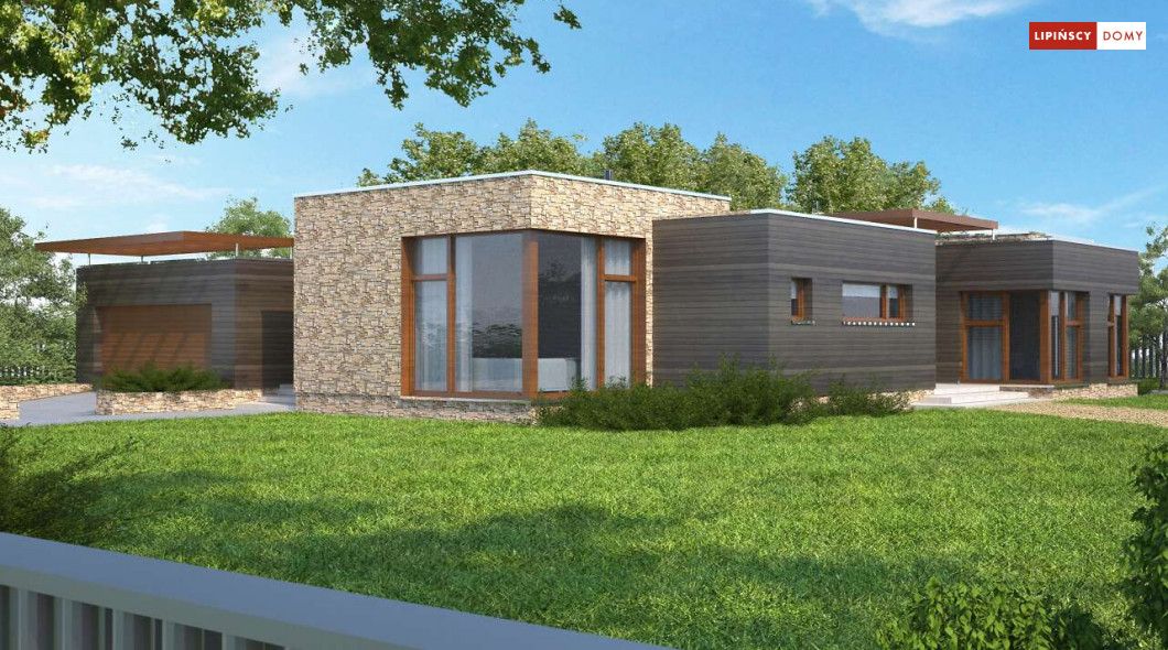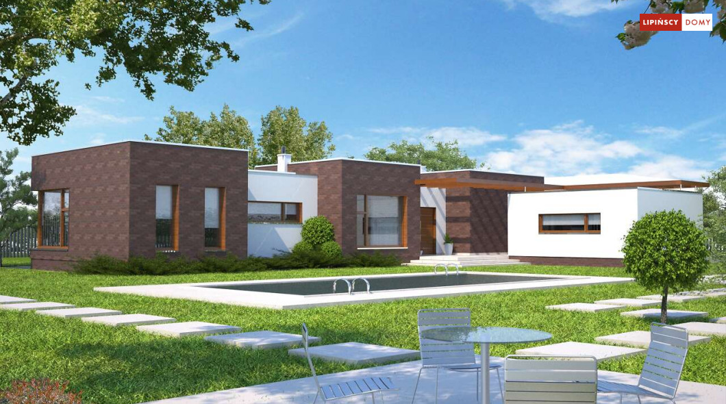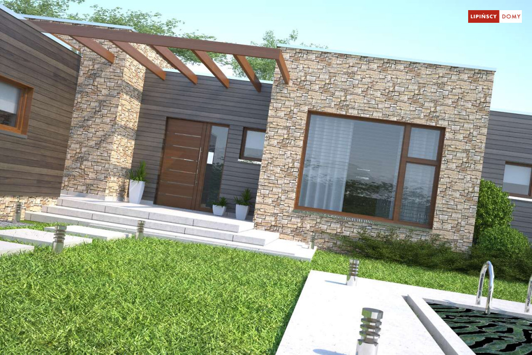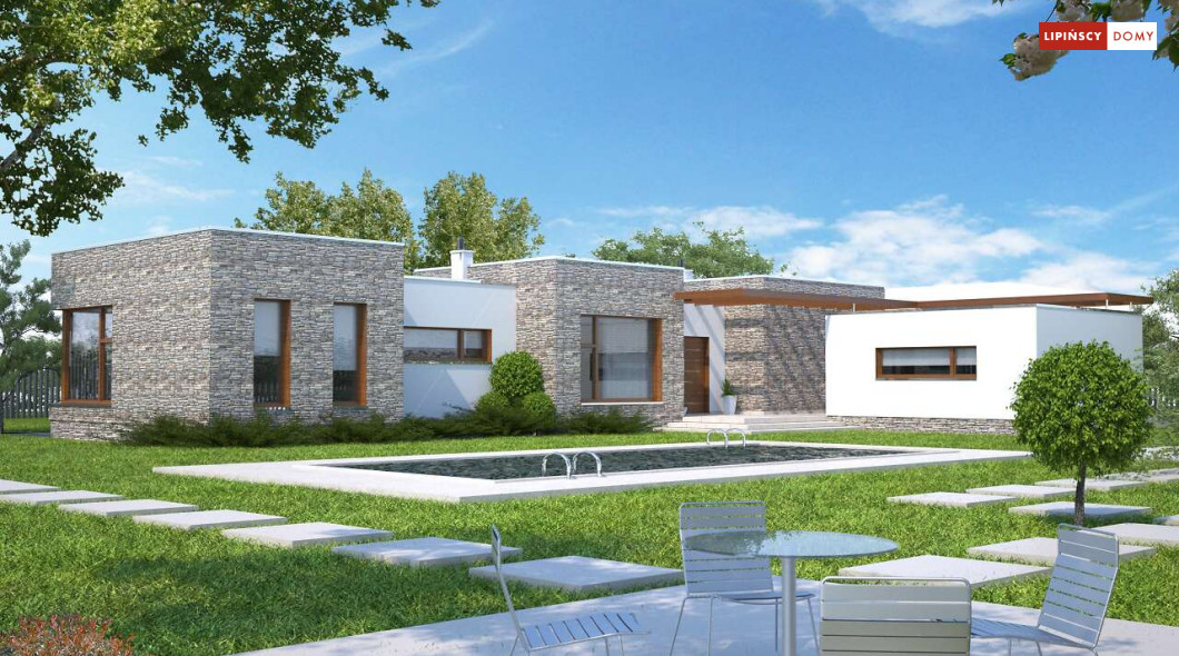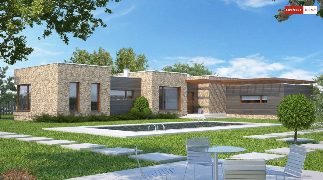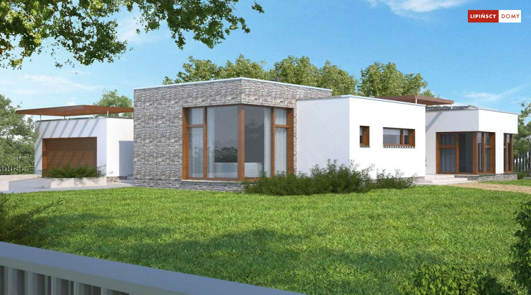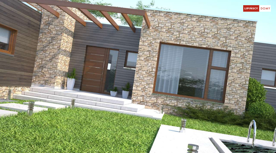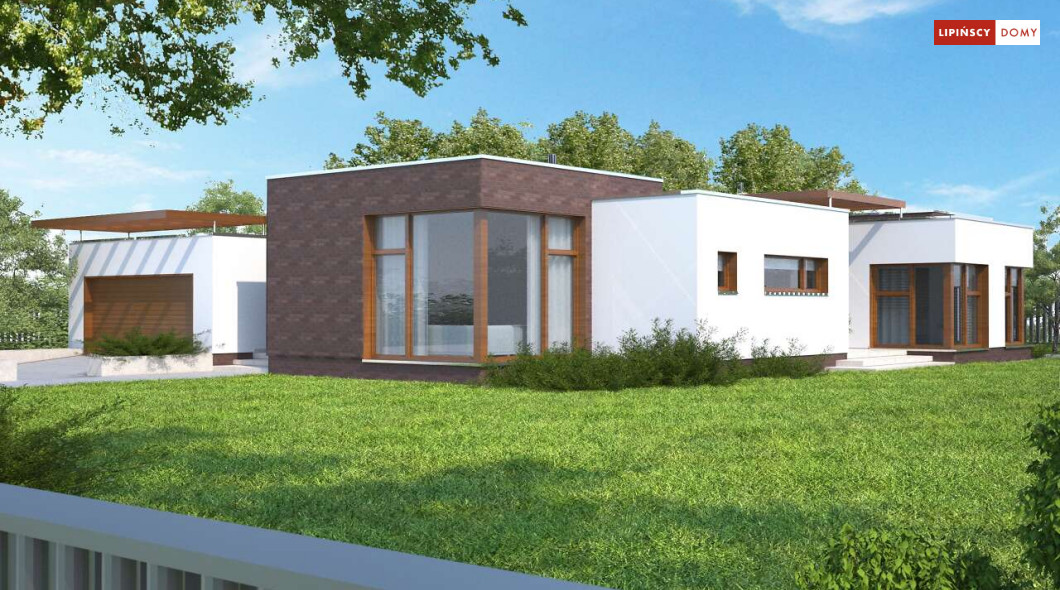 Piękny dom parterowy, który jest tak naprawdę komfortową willą o pięknie skomponowanej bryle, harmonijnych elewacjach i nowocześnie zaprojektowanym wnętrzu. Duże przeszklenia przenikają przestrzeń i sprawiają, że dom będzie wypełniony światłem za dnia, a wieczorem będzie pięknie wyglądał z ogrodu. Dodatkowo sprzyjają przenikaniu ciepła do wnętrza, co w tym energooszczędnym domu ma ogromne znaczenie. Ażurowe zadaszenia nad wejściem i tarasem potęgują efekt trójwymiarowości domu.