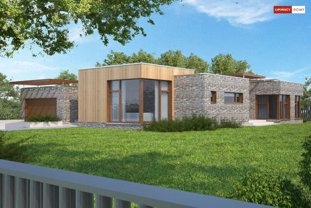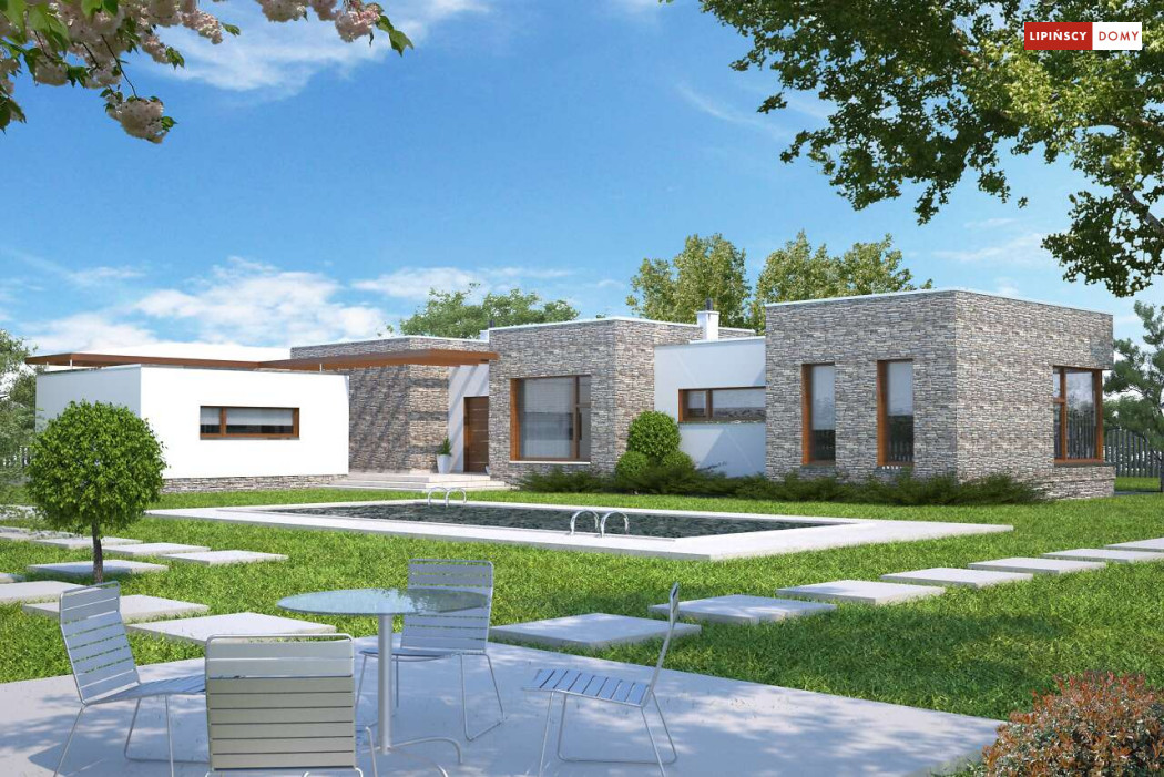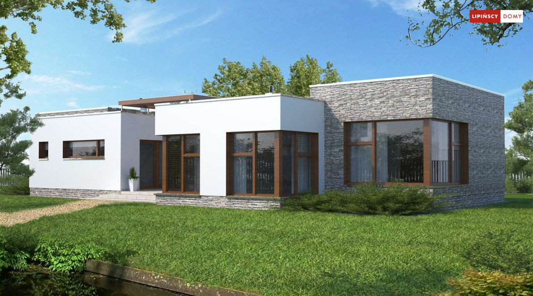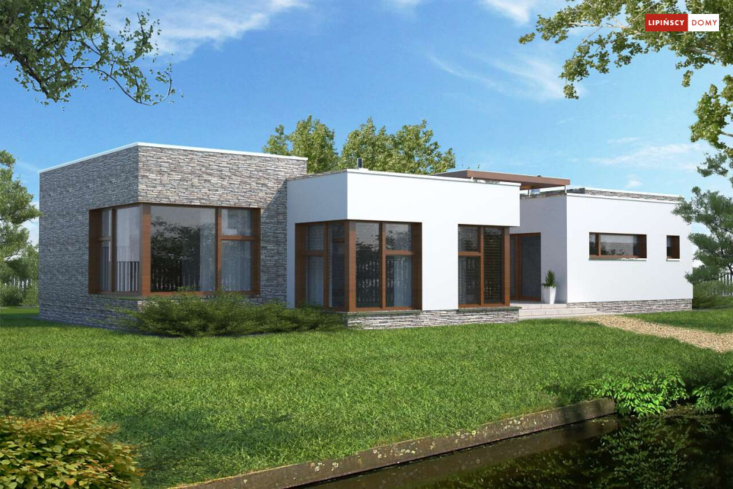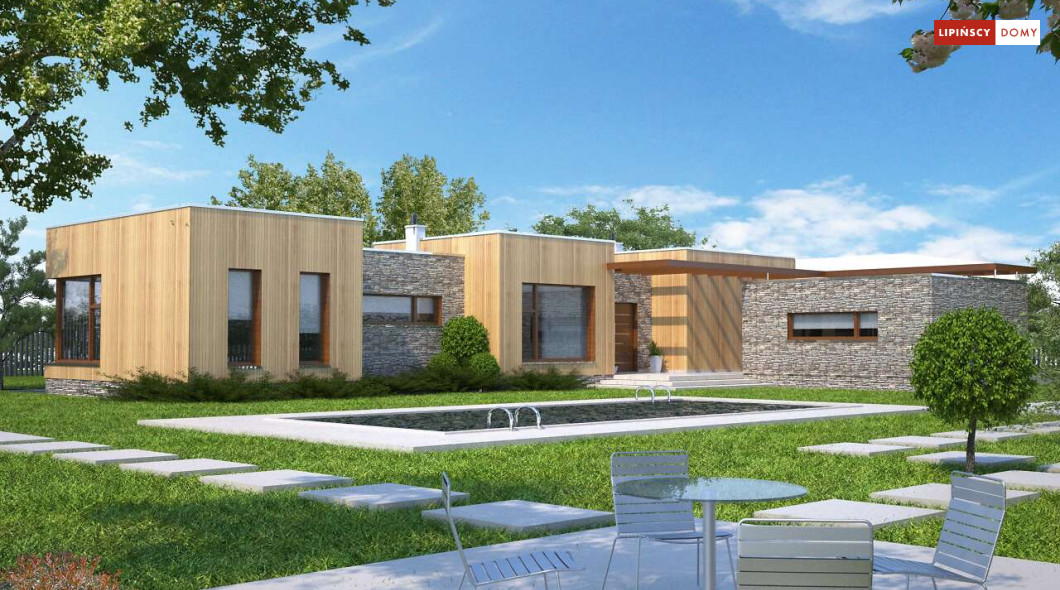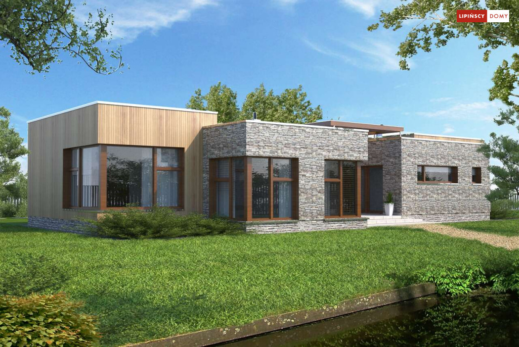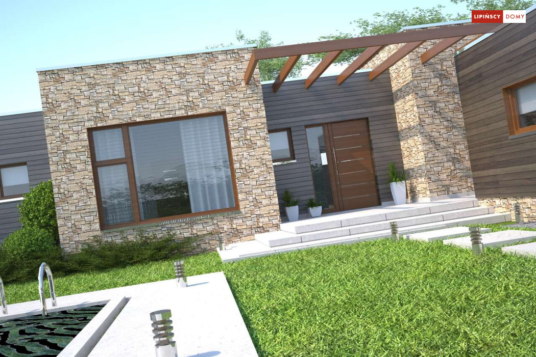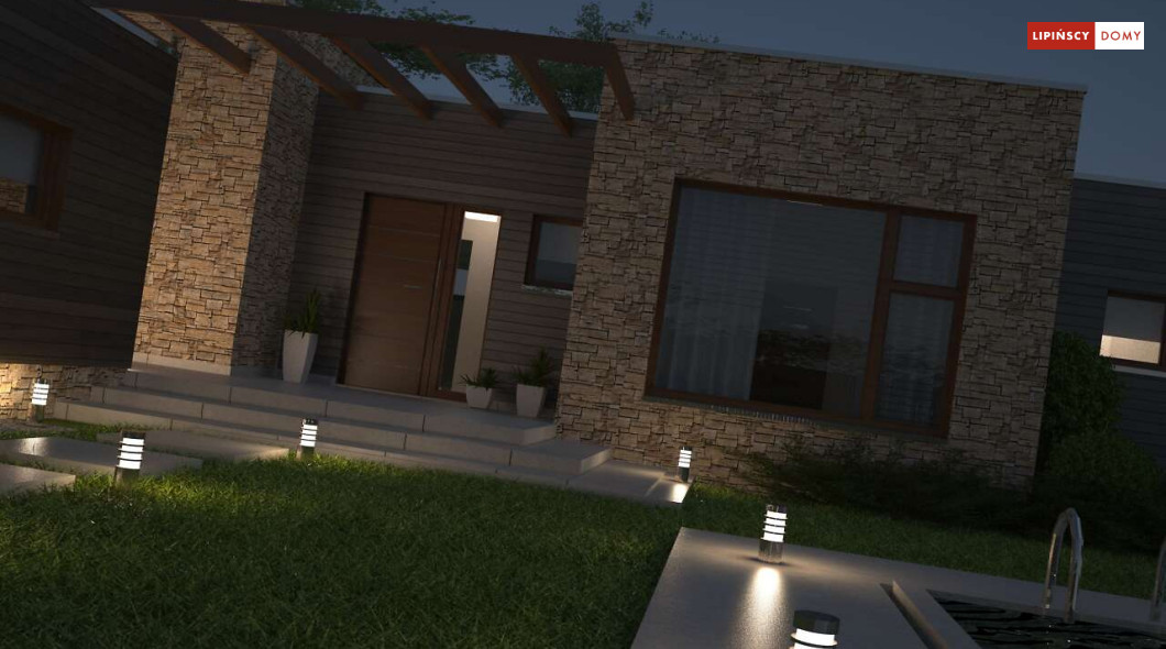 Piękny dom parterowy, który jest tak naprawdę komfortową willą o pięknie skomponowanej bryle, harmonijnych elewacjach i nowocześnie zaprojektowanym wnętrzu. Duże przeszklenia przenikają przestrzeń i sprawiają, że dom będzie wypełniony światłem za dnia, a wieczorem będzie pięknie wyglądał z ogrodu. Dodatkowo sprzyjają przenikaniu ciepła do wnętrza, co w tym energooszczędnym domu ma ogromne znaczenie. Ażurowe zadaszenia nad wejściem i tarasem potęgują efekt trójwymiarowości domu.