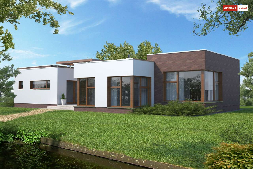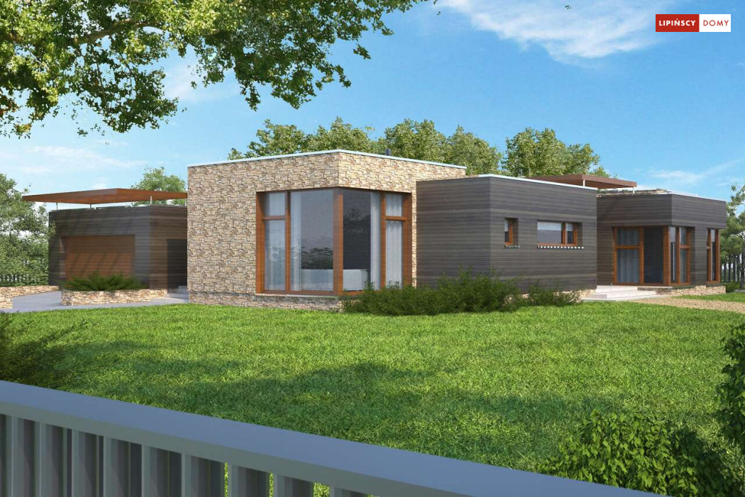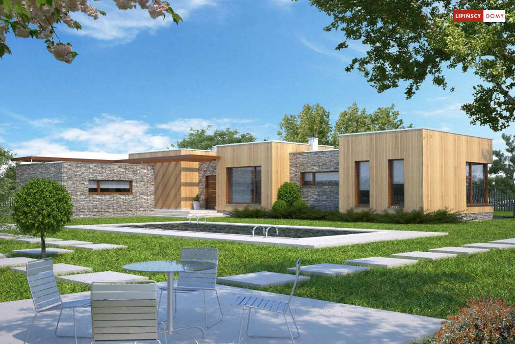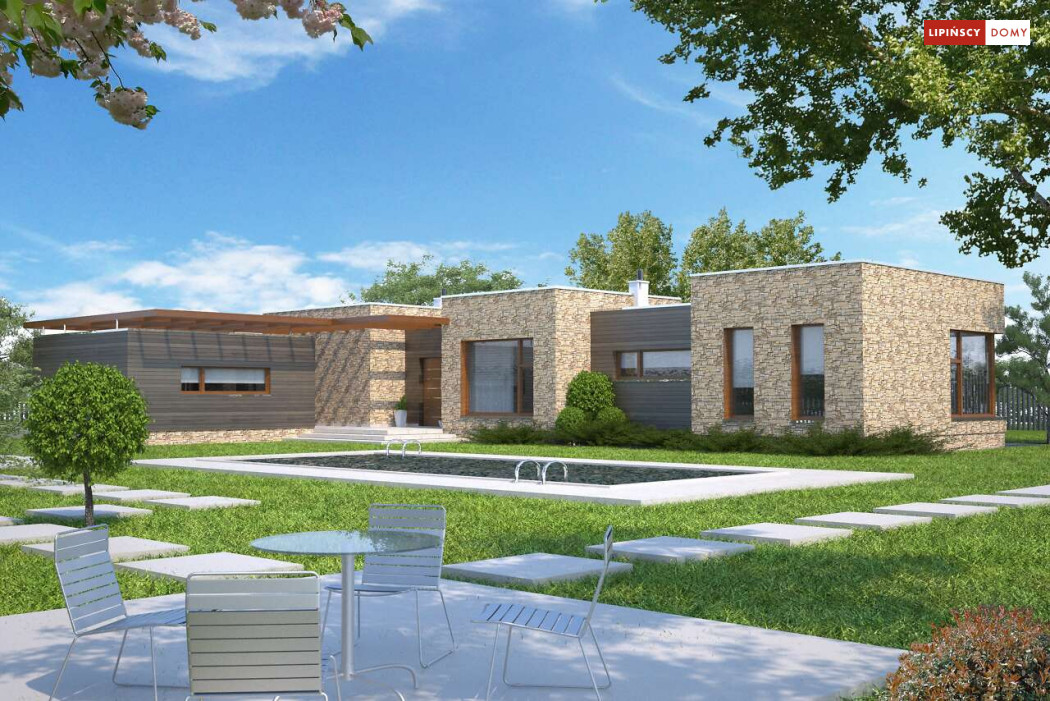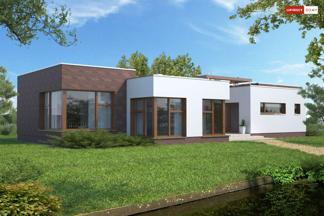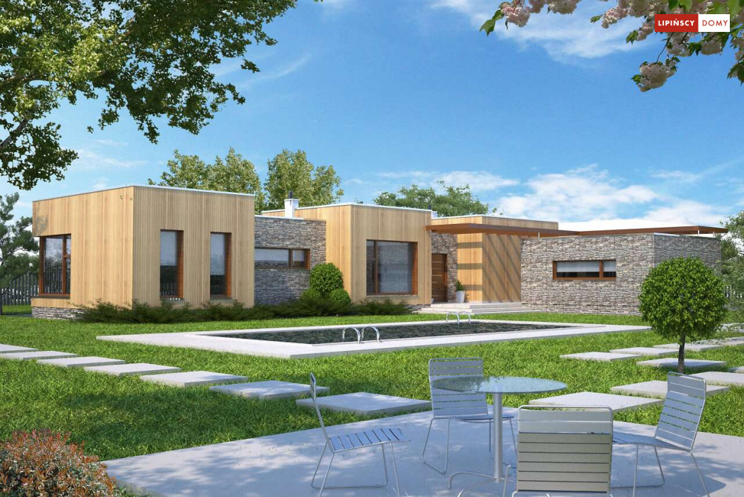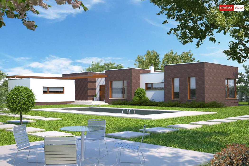 Piękny dom parterowy, który jest tak naprawdę komfortową willą o pięknie skomponowanej bryle, harmonijnych elewacjach i nowocześnie zaprojektowanym wnętrzu. Duże przeszklenia przenikają przestrzeń i sprawiają, że dom będzie wypełniony światłem za dnia, a wieczorem będzie pięknie wyglądał z ogrodu. Dodatkowo sprzyjają przenikaniu ciepła do wnętrza, co w tym energooszczędnym domu ma ogromne znaczenie. Ażurowe zadaszenia nad wejściem i tarasem potęgują efekt trójwymiarowości domu.