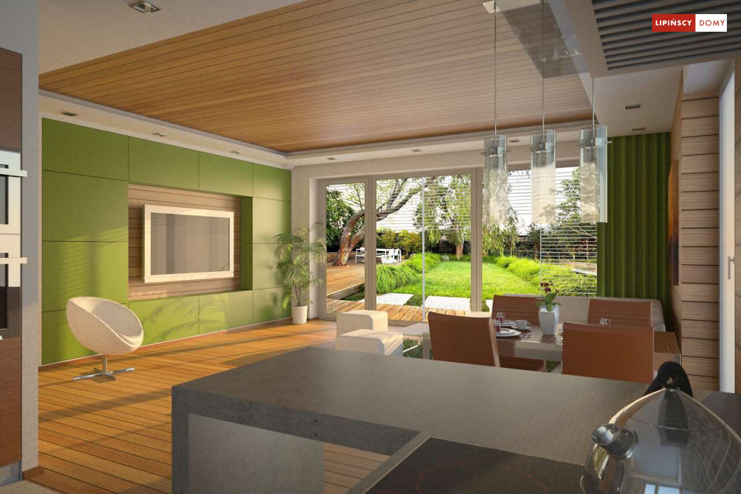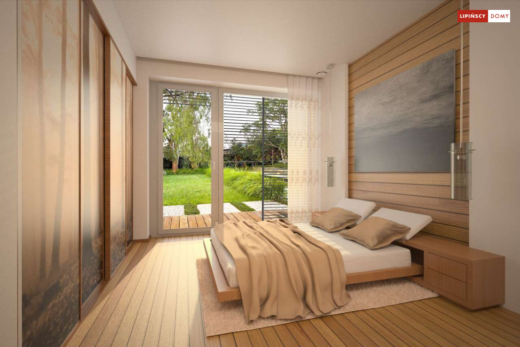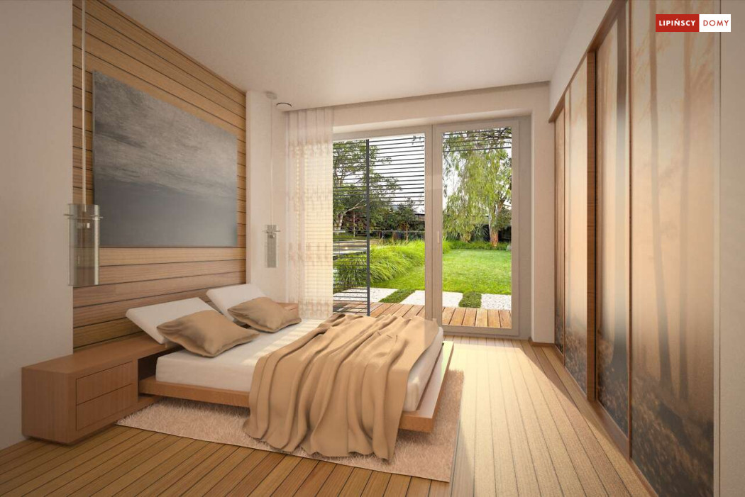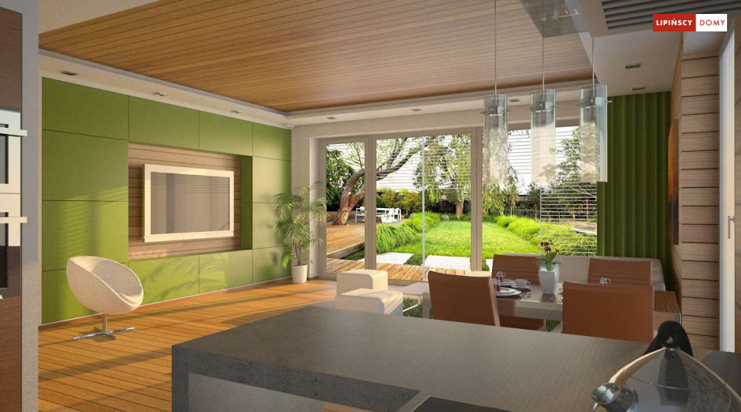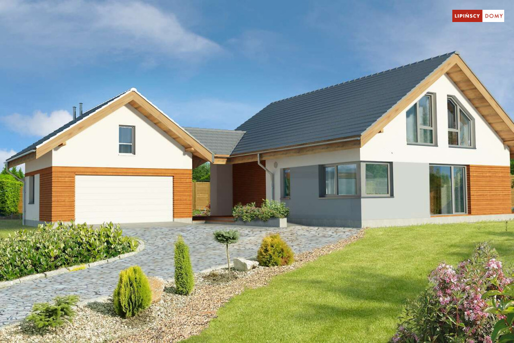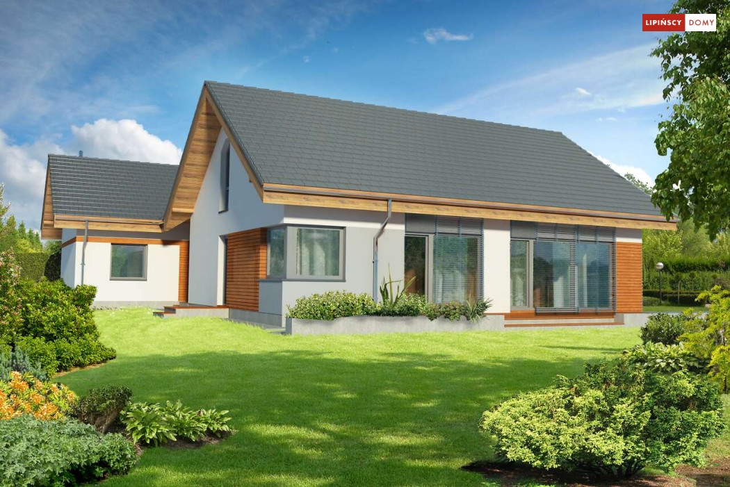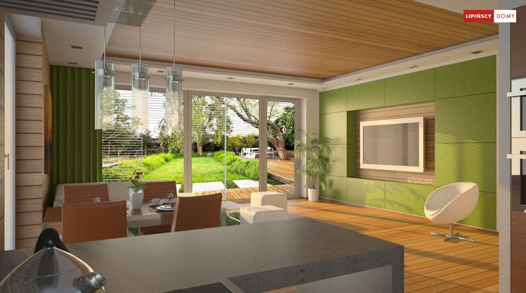Ten dom ma w sobie lekkość. Nie tylko wiąże się to z miłą dla oka architekturą, ale głównie jest spowodowane tym, że jako dom pasywny, dom ten jest czysty ekologicznie. Oferuje zatem czyste ciepło, przyjazne dla środowiska i wielokrotnie tańsze. Dom jest jasny i przestronny dzięki dużym przeszkleniom, otwierającym dom na otoczenie, a funkcja domu dostosowuje się do zmieniających się potrzeb mieszkańców. Dwie sypialnie na poddaszu to znakomite miejsce dla dzieci, które mają swoją prywatną, odizolowaną akustycznie strefę. Sypialnia dla rodziców znajduje się na parterze, w sąsiedztwie sporej łazienki. Z czasem, gdy dorastające dzieci wyprowadzą się z domu, poddasze może być doskonałą przestrzenią rodziców z garderobą i np.: pokojem do ćwiczeń. Wówczas w pokoju na parterze może zamieszkać osoba starsza. Miejsce pod schodami idealnie nadaje się na kącik komputerowy, wygodnie wydzielony ze strefy dziennej, a z czasem można tam zamontować, w razie potrzeby, podnośnik. Ciekawie także zostało zaprojektowane przejście z domu do garażu – całkowicie zadaszone. Przestrzeń nad garażem może nadawać się na pokój hobby – nawet bardzo głośne. Projekt spełnia określone w programie dopłat NFOŚIGW warunki standardu NF15. Uzyskaliśmy to dzięki zastosowanym izolacjom wszystkich przegród zewnętrznych, wybitnej szczelności i wyeliminowaniu mostków termicznych. W przypadku tego projektu równie ważna była ekonomia takiego rozwiązania, aby koszt realizacji był możliwie mały.
