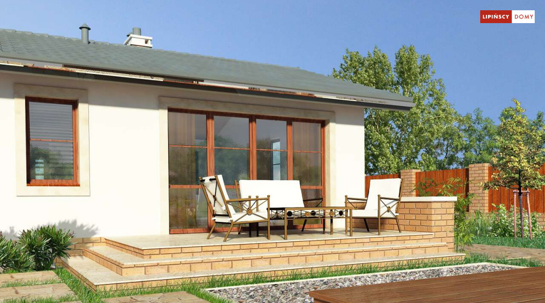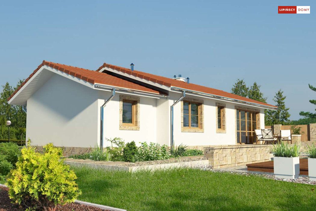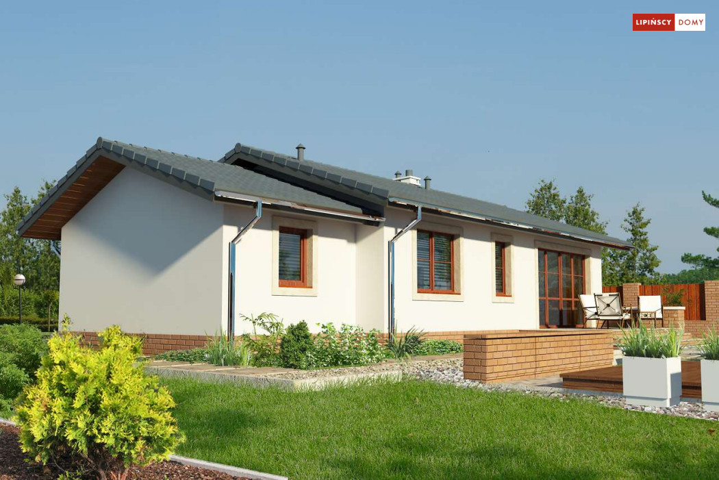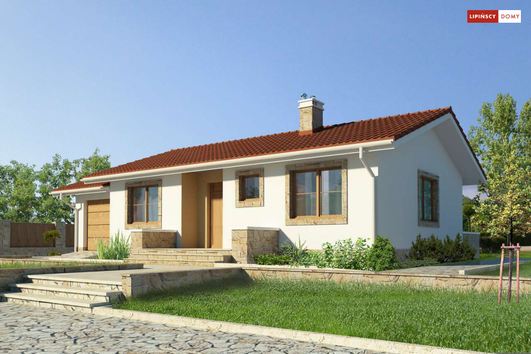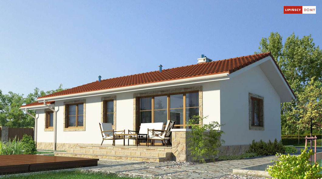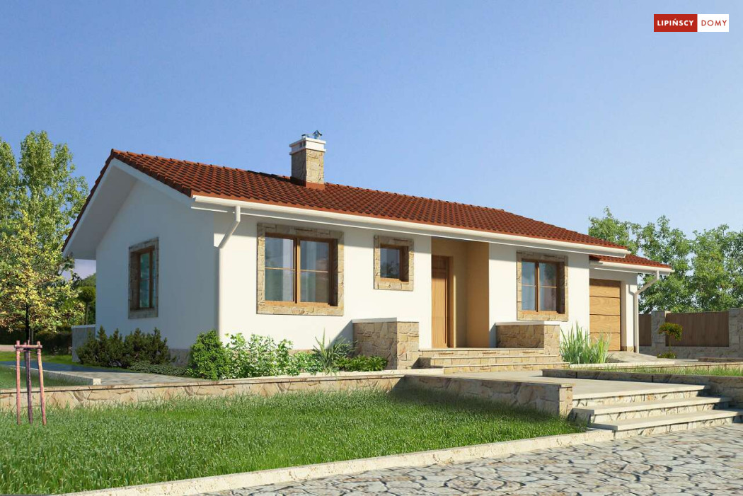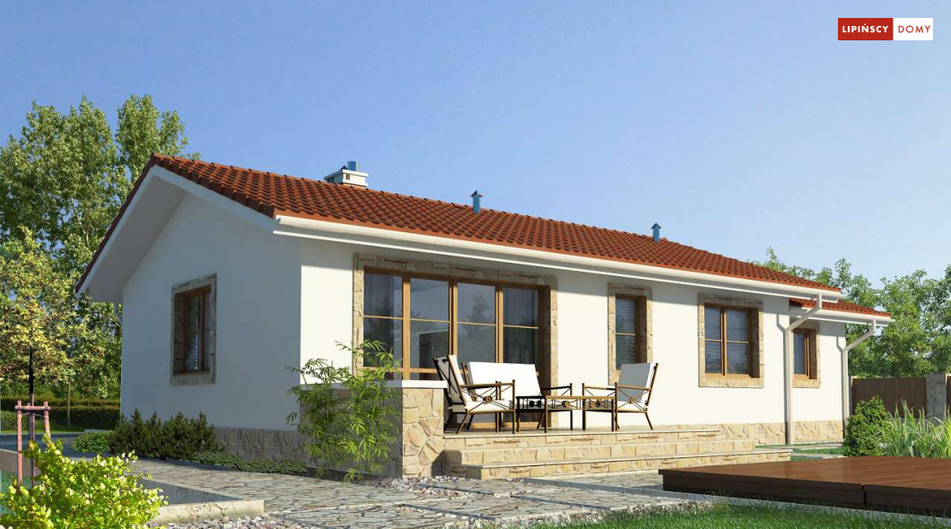 Oban II to wersja z garażem popularnego projektu Oban (LMB96). Niewielki, prosty i tani w budowie dom parterowy, o bardzo funkcjonalnie rozplanowanej przestrzeni. Do dyspozycji mieszkańców jest część wspólna, czyli salon z częścią wypoczynkową i jadalną, otwarta kuchnia i doświetlona oknem łazienka. W strefie wspólnej znajdują się dwie sypialnie. Z domu można przejść bezpośrednio do garażu, co jest niewątpliwie bardzo wygodne. Ozdobą prostej bryły, przekrytej dwuspadowym dachem jest podmurówka z kamienia oraz takie same akcenty przy wejściu.