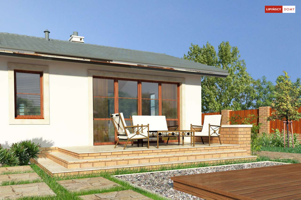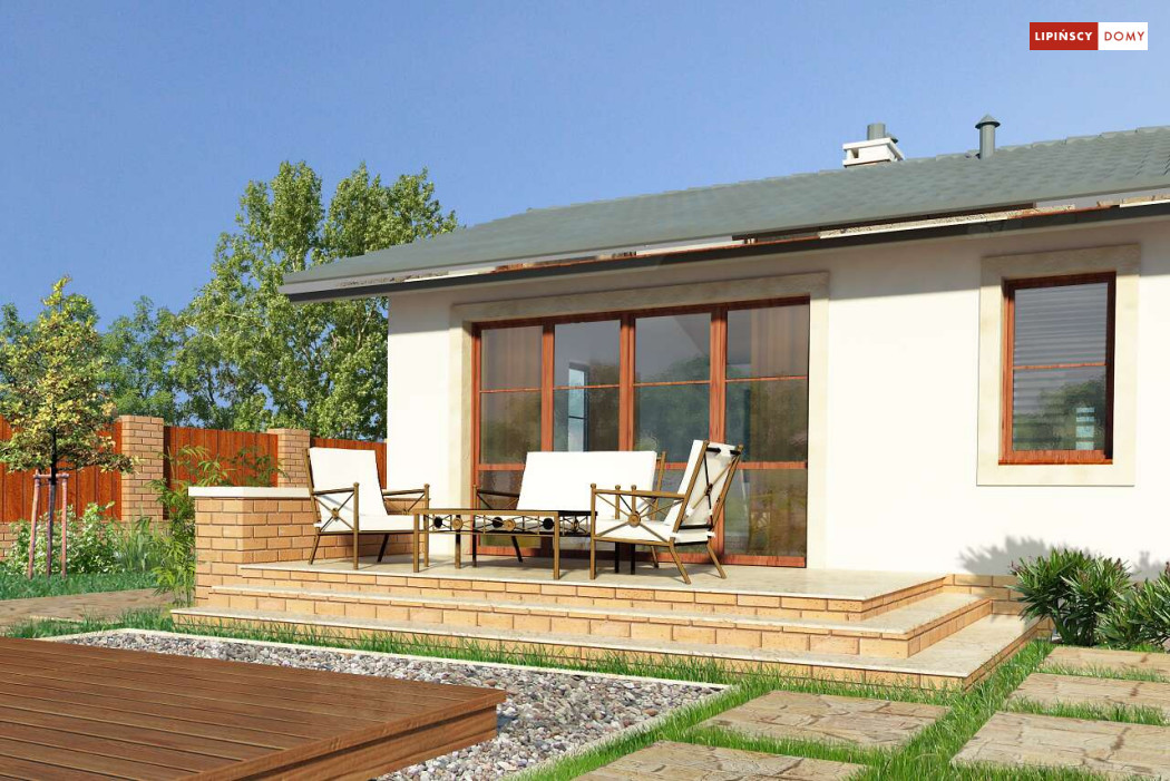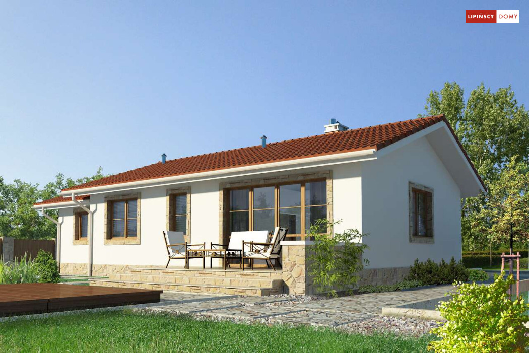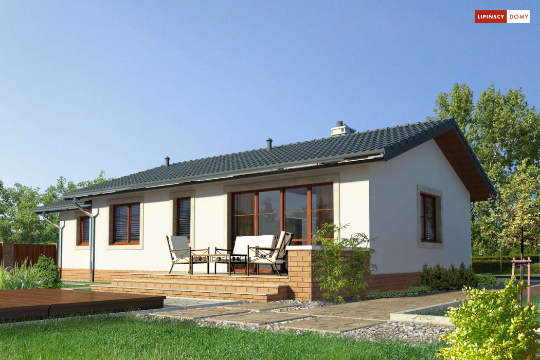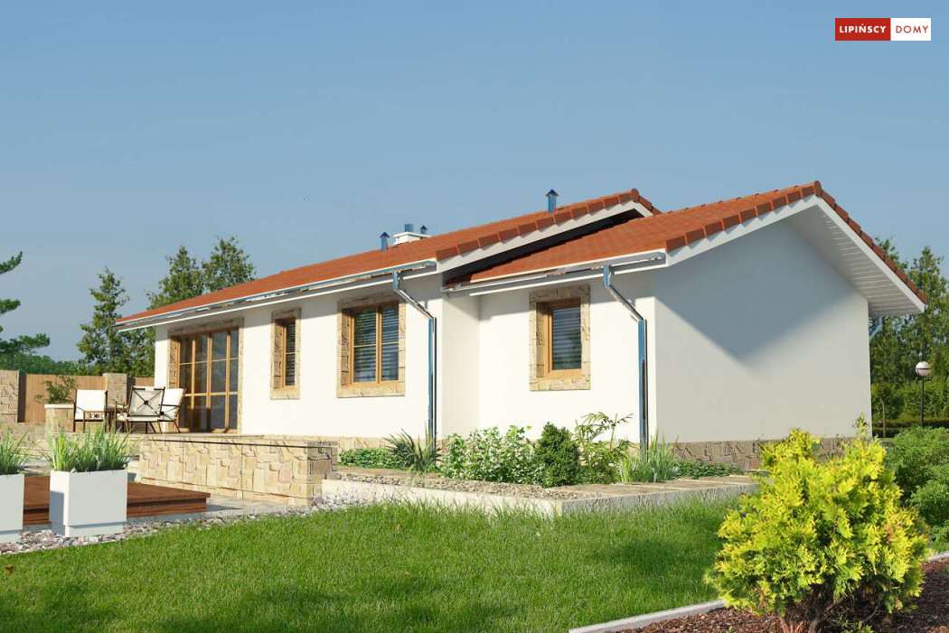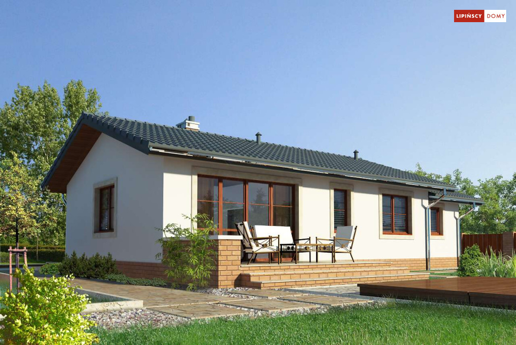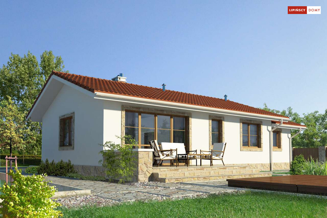 Oban II to wersja z garażem popularnego projektu Oban (LMB96). Niewielki, prosty i tani w budowie dom parterowy, o bardzo funkcjonalnie rozplanowanej przestrzeni. Do dyspozycji mieszkańców jest część wspólna, czyli salon z częścią wypoczynkową i jadalną, otwarta kuchnia i doświetlona oknem łazienka. W strefie wspólnej znajdują się dwie sypialnie. Z domu można przejść bezpośrednio do garażu, co jest niewątpliwie bardzo wygodne. Ozdobą prostej bryły, przekrytej dwuspadowym dachem jest podmurówka z kamienia oraz takie same akcenty przy wejściu.