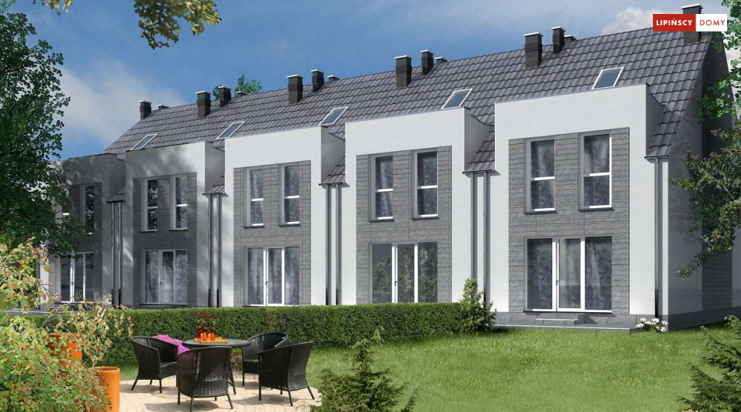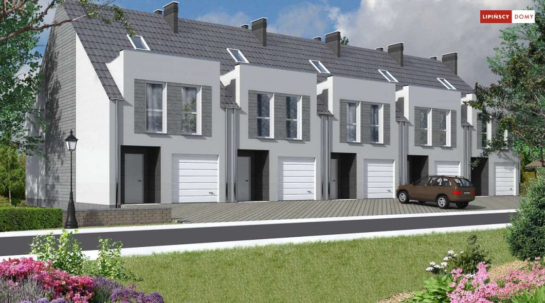 Projekt wąskiego domu do zabudowy szeregowej z dużym poddaszem oraz studiem na trzeciej kondygnacji. Szerokie lukarny na poddaszu powiększaja przestrzeń użytkową, także do dyspozycji jest niemal pełna kondygnacja z trzema sypialniami i dużą łazienką. Na parterze znajduje się salon z aneksem kuchennym, wc z piecem c.o. oraz garaż. Przestrzeń na trzeciej kondygnacji można dowolnie zagospodarować, bo do dyspozycji jest prawie 30 m kw. Projekt przewiduje dużą powierzchnię szaf w zabudowie.