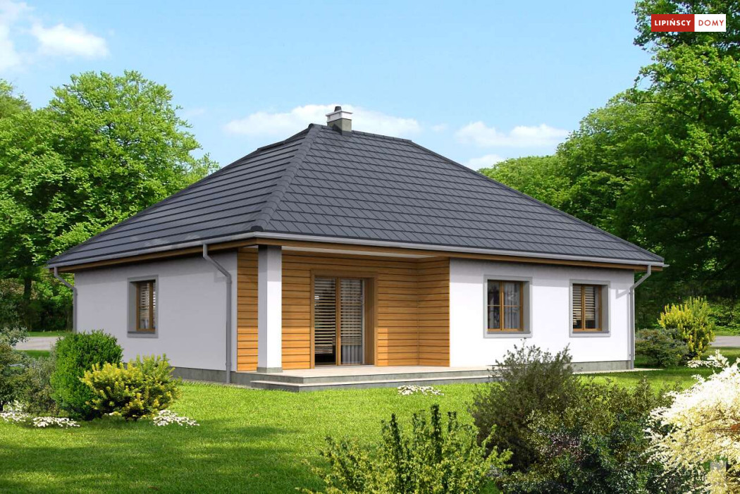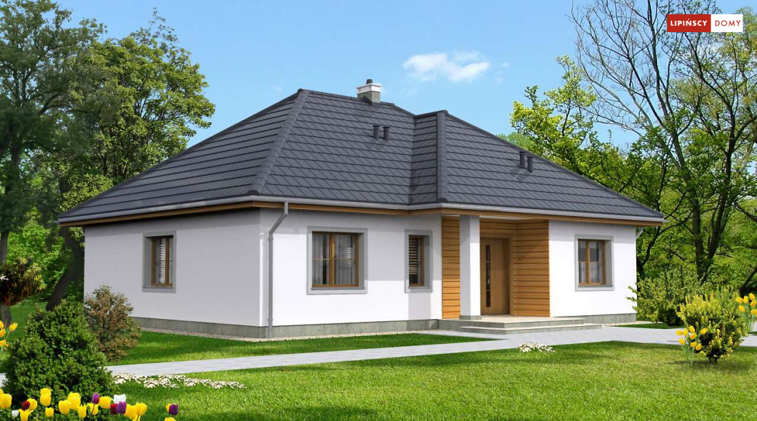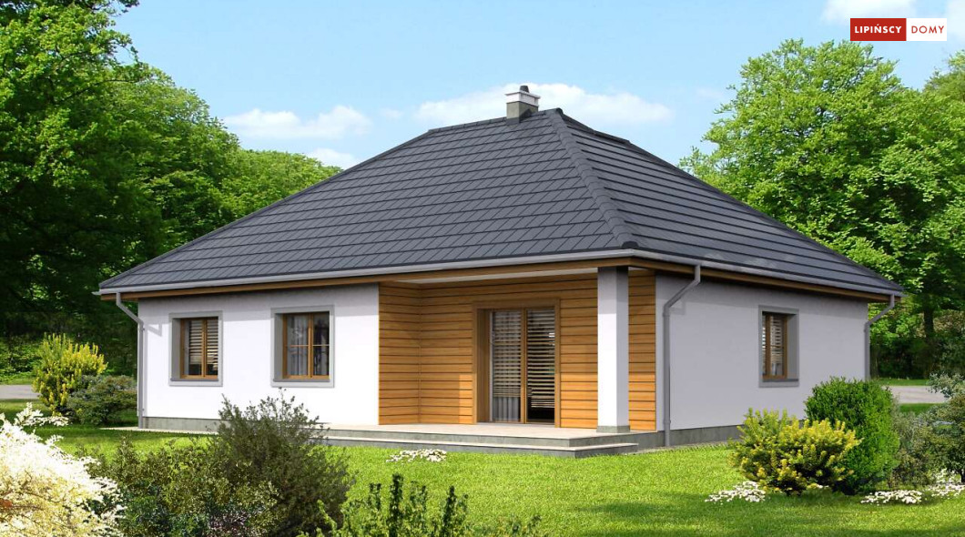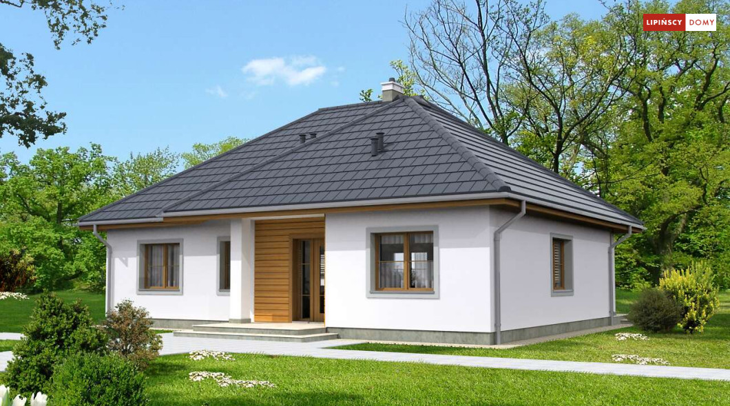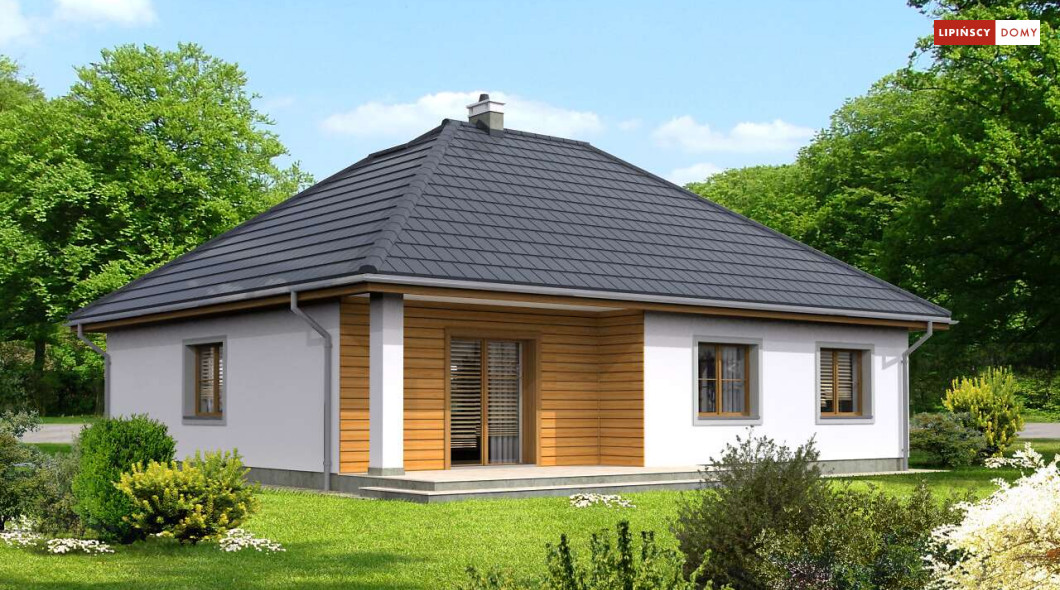 Kolejna wersja niedużego, wygodnego domu parterowego, tym razem z 35 stopniowym kątem nachylenia dachu, co pozwoliło wygospodarować nieco miejsca na stryszek na poddaszu. Funkcjonalnie dom się nie zmienił - wnętrze kryje obszerny salon z kominkiem, połączony z kuchnią, cztery sypialnie, łazienkę, wc i pomieszczenie gospodarcze. Ozdobą domu jest częściowo zadaszony taras, na który można wyjść z salonu przez duże, oszklone drzwi. Prosta bryła i konstrukcja gwarantują niewysokie koszty budowy. W projekcie przewidziano ogrzewanie kotłem na gaz. Możliwa jest zmiana ogrzewania na pompę ciepła.